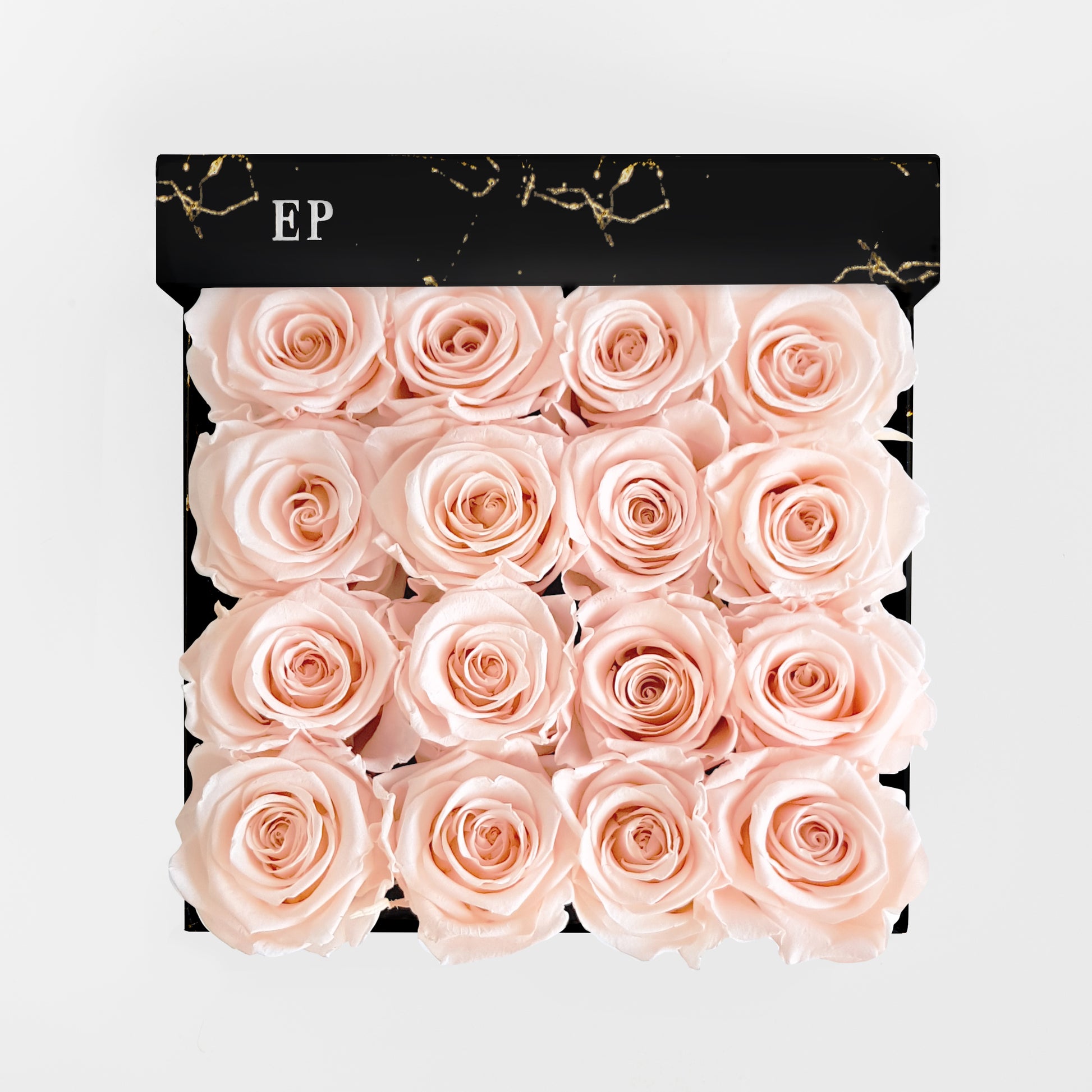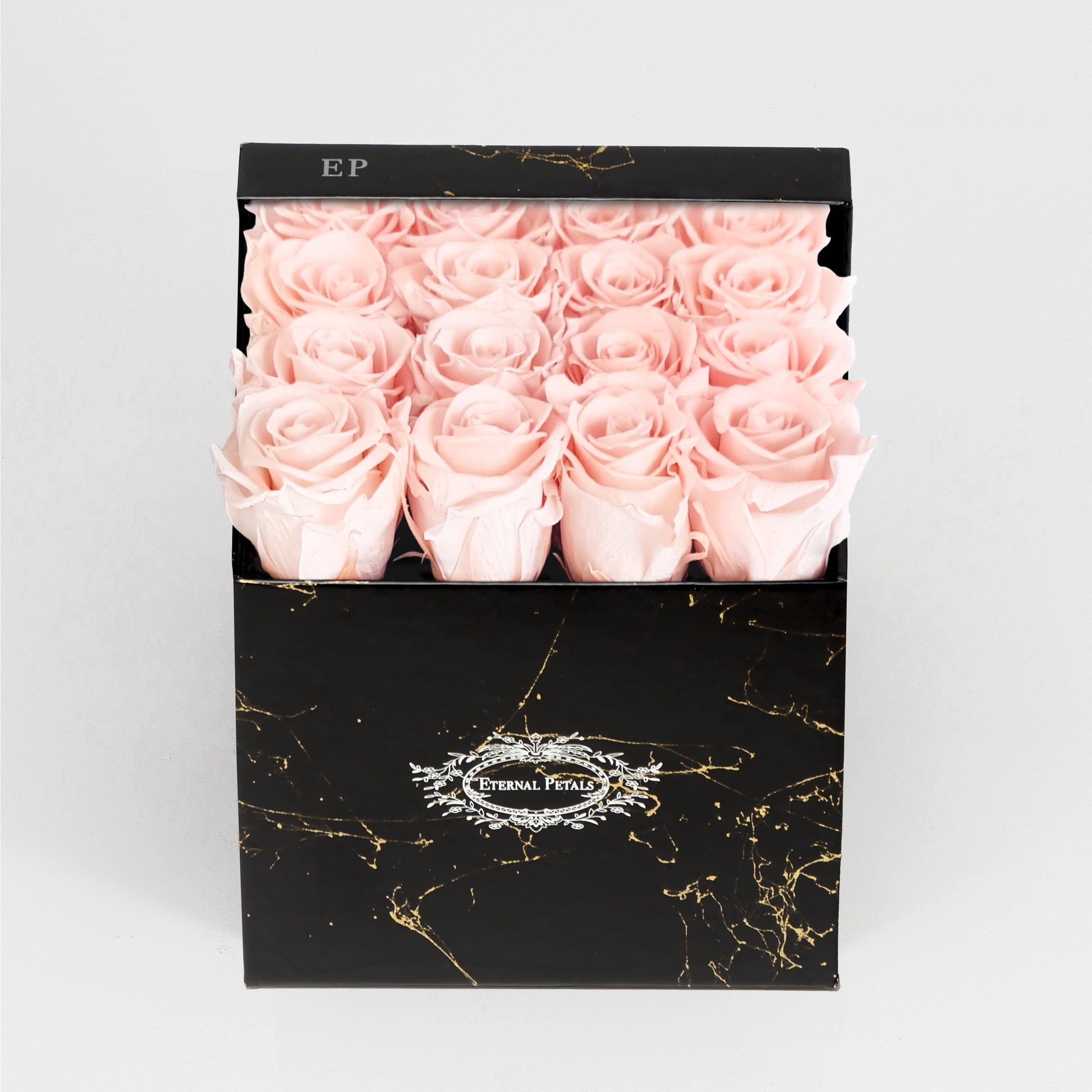 In the pictures you can see blush colour roses inside our luxury marble box.
