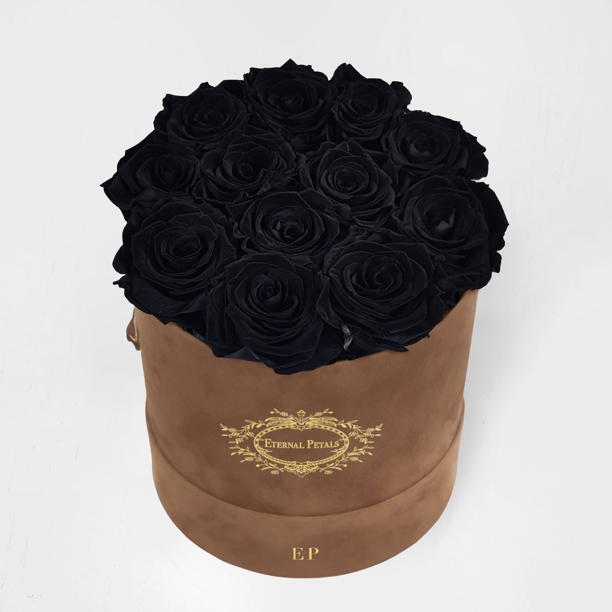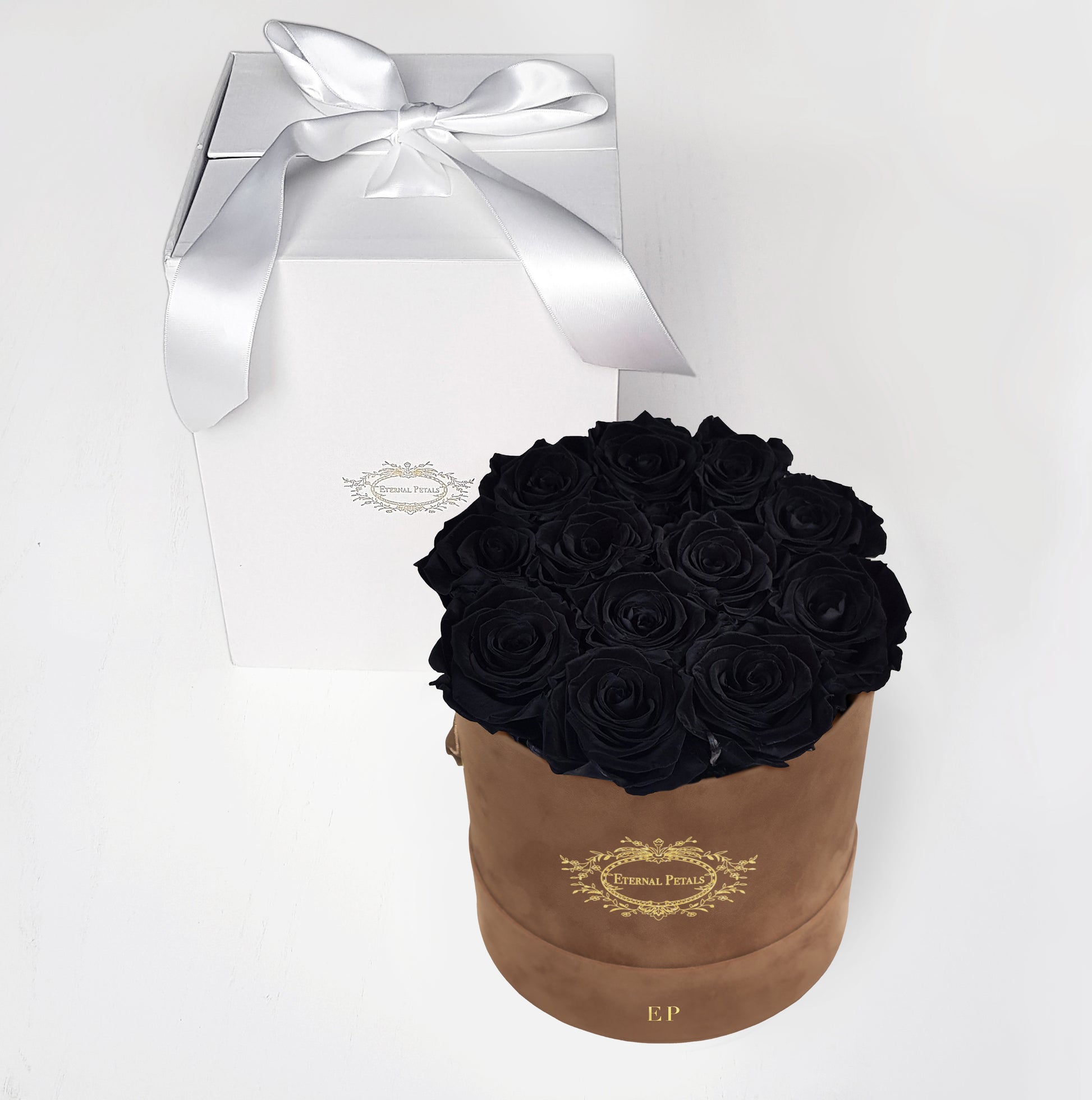 Arriving in this stunning brown gift box, you’ll find 11-14 perfectly bloomed, real roses in authentically beautiful black colour. The ultimate in classic romance, which you can enjoy and admire for a whole year.