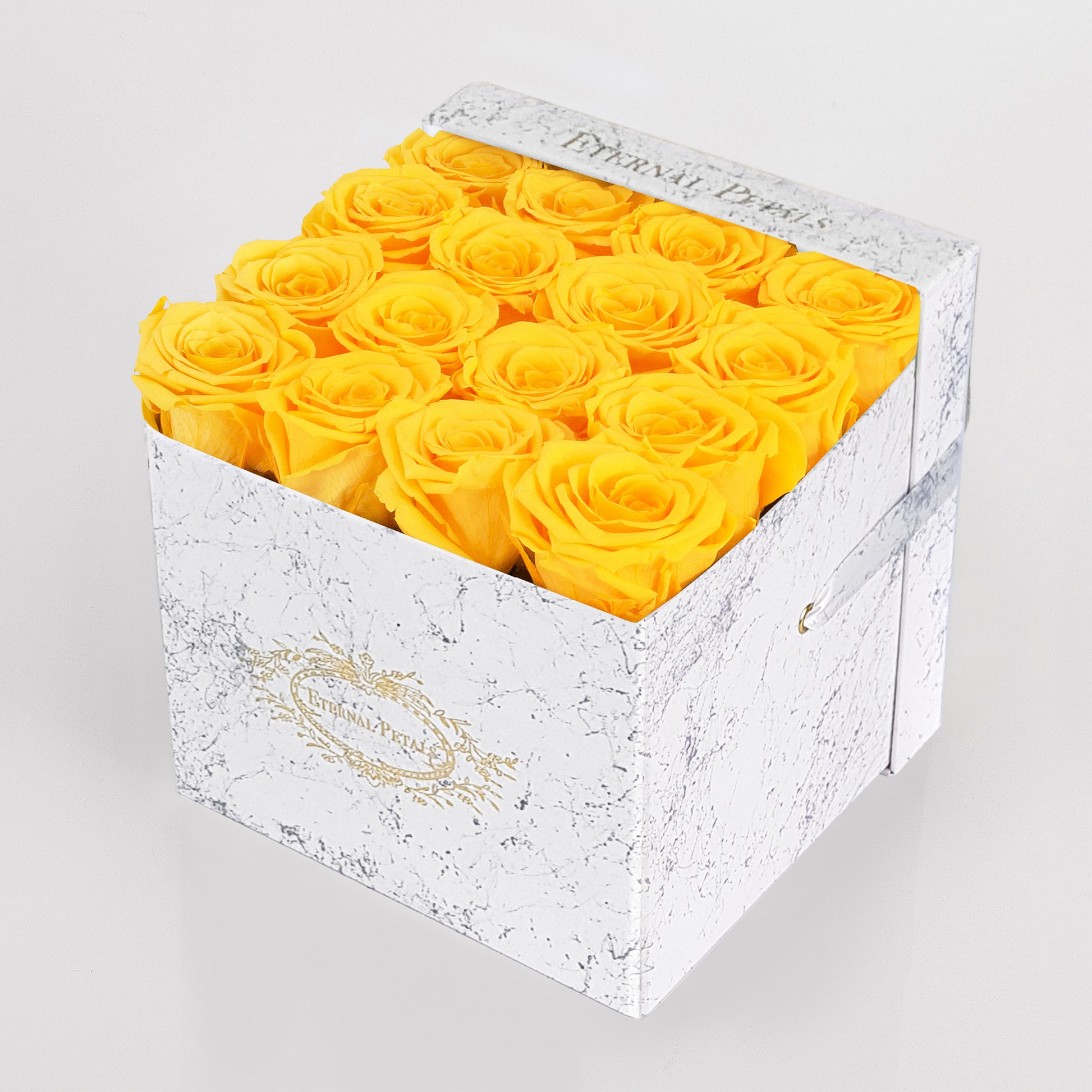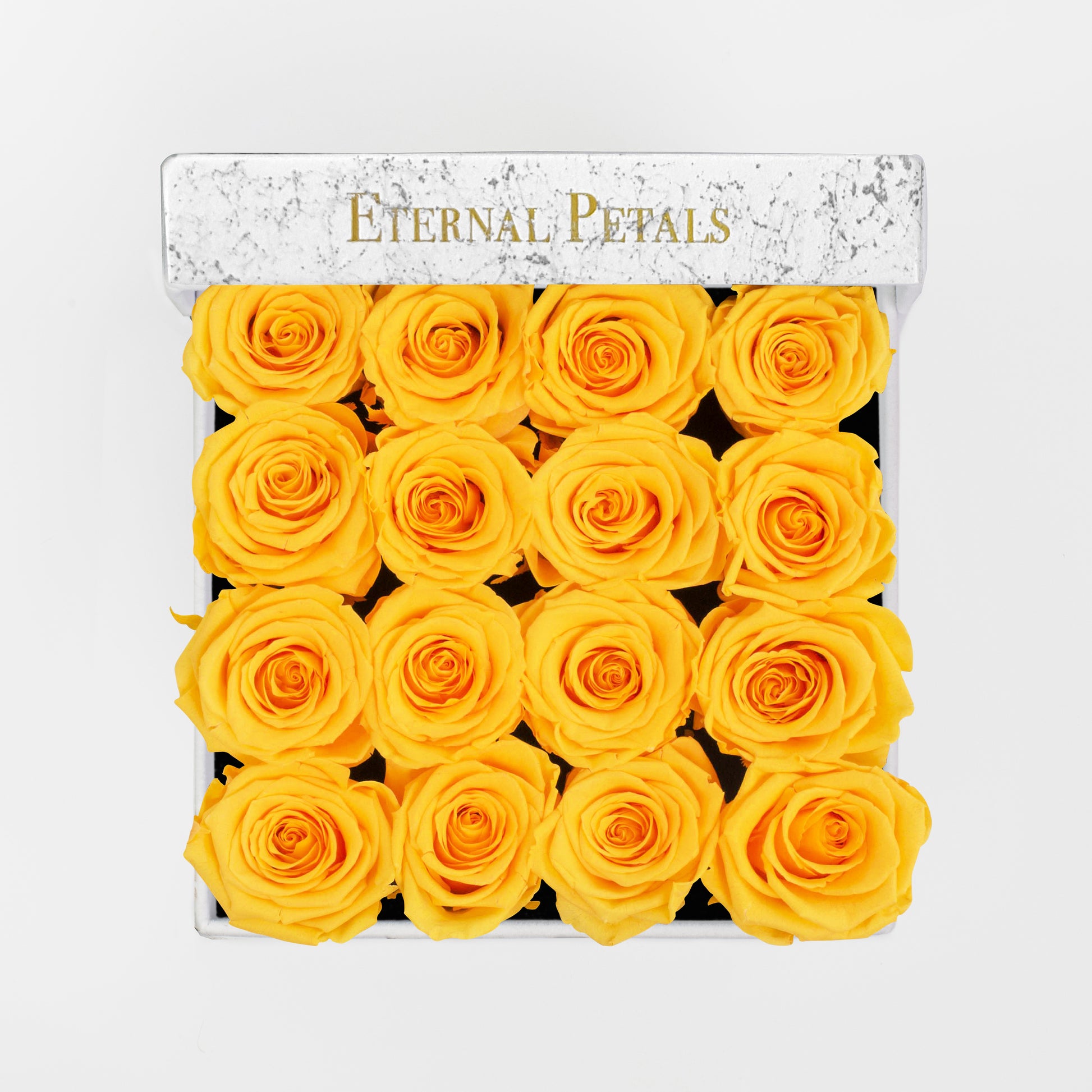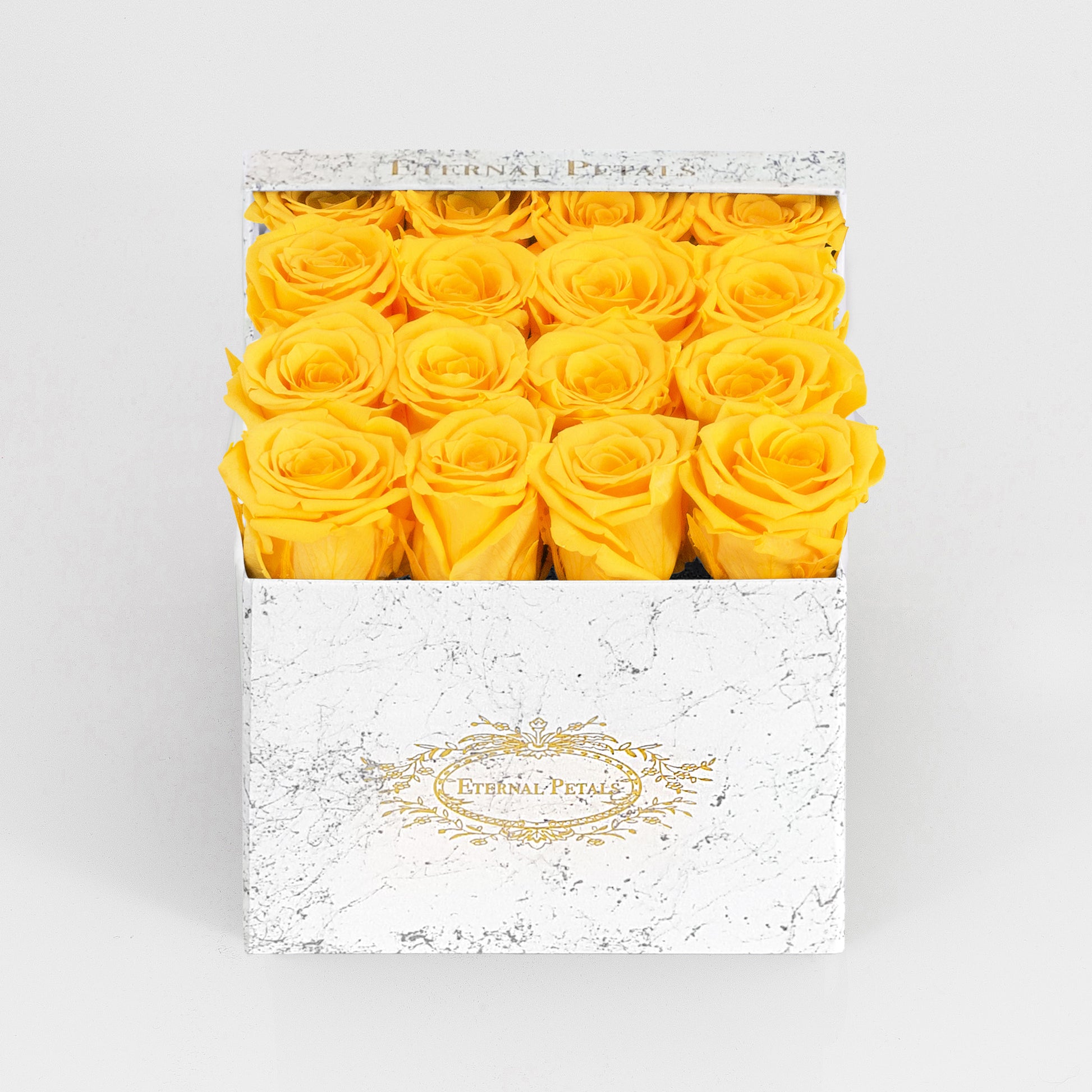 In the pictures you can see "Bumblebee"yellow colour roses inside our luxury marble box.