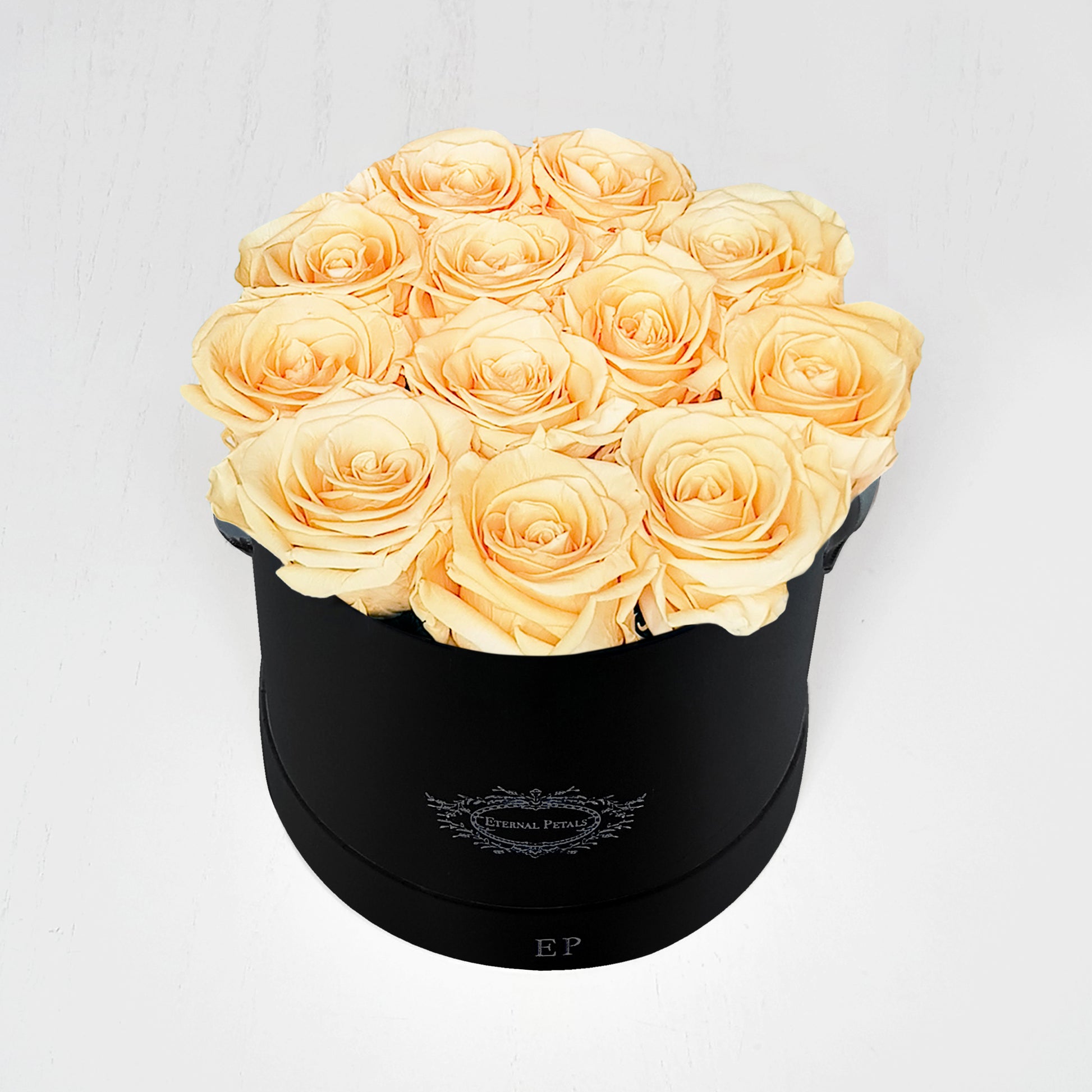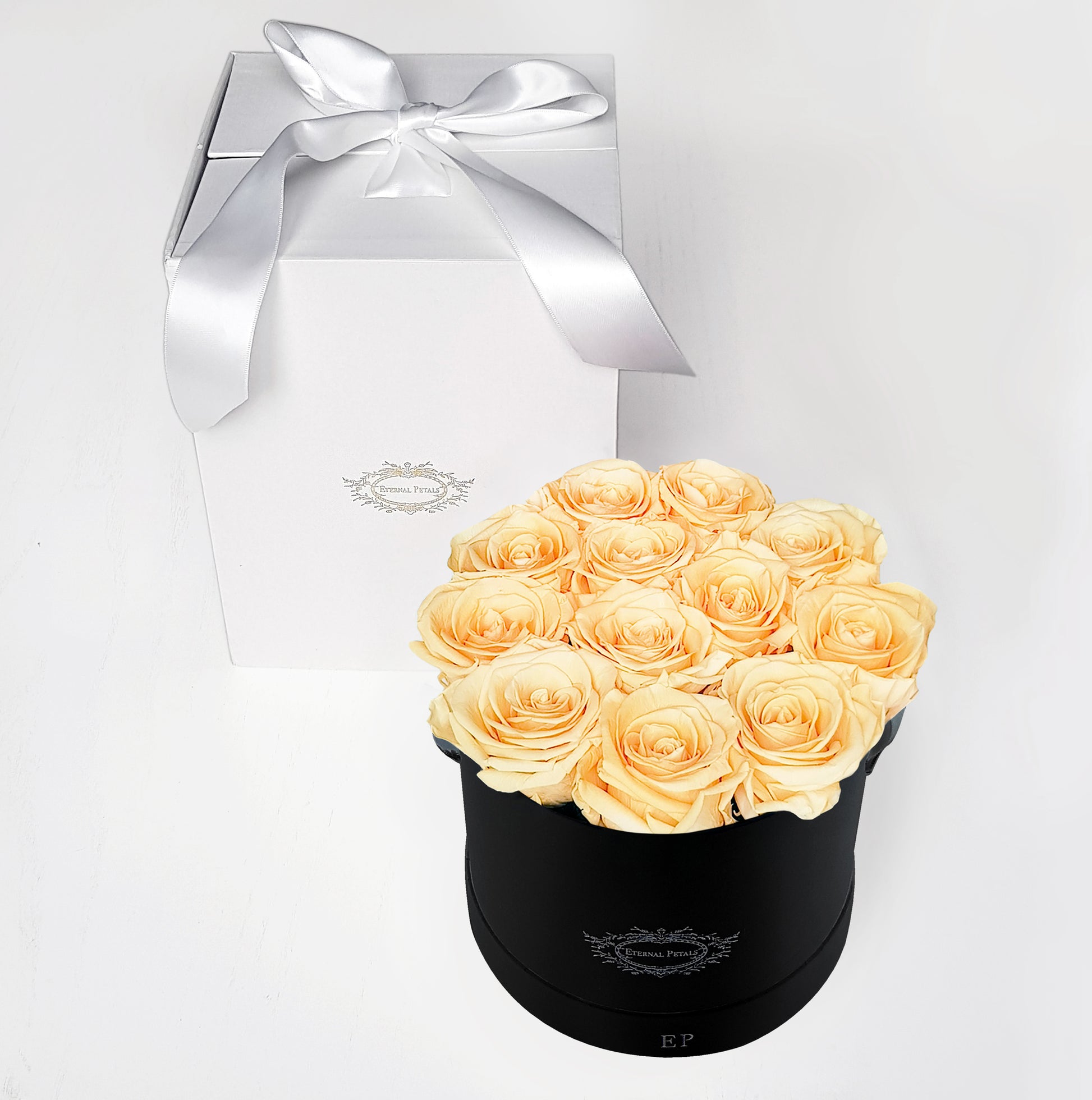 Arriving in this stunning gift box, you’ll find 11-14 perfectly bloomed, real roses in authentically beautiful Champagne colour. The ultimate in classic romance, which you can enjoy and admire for a whole year.