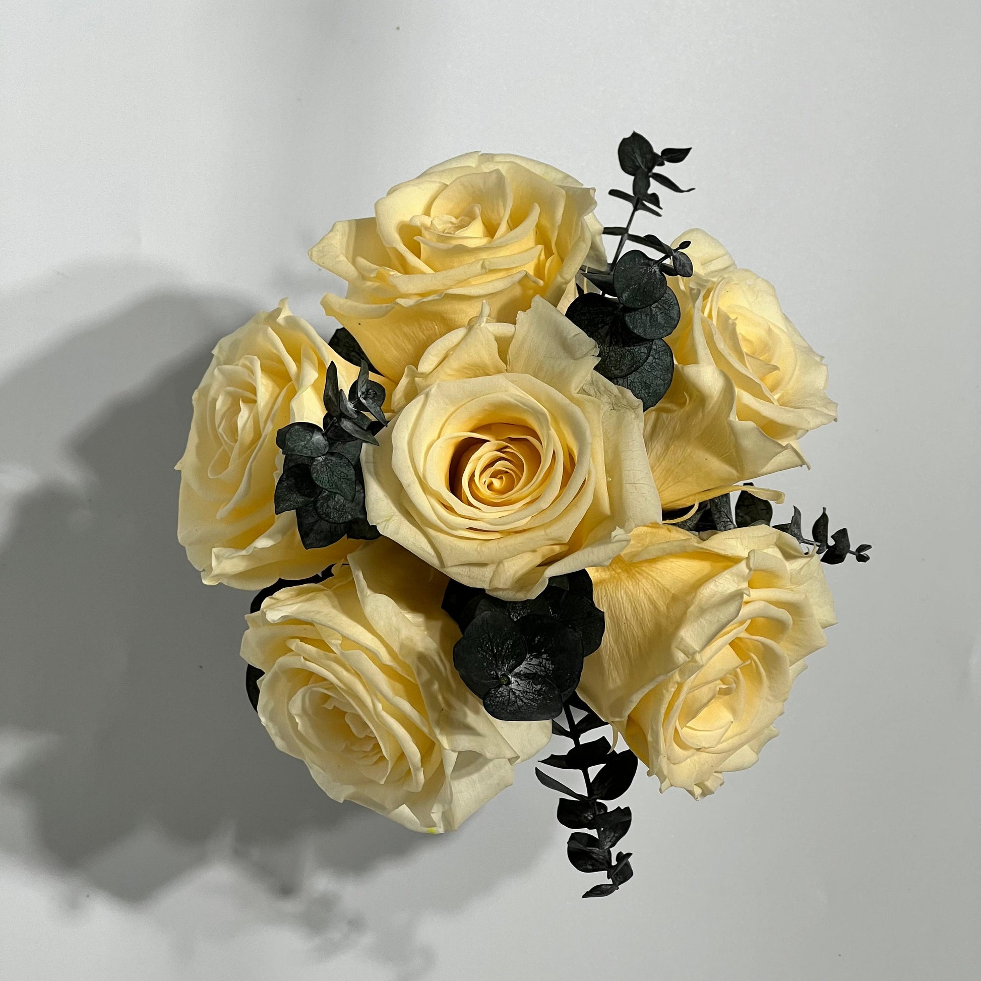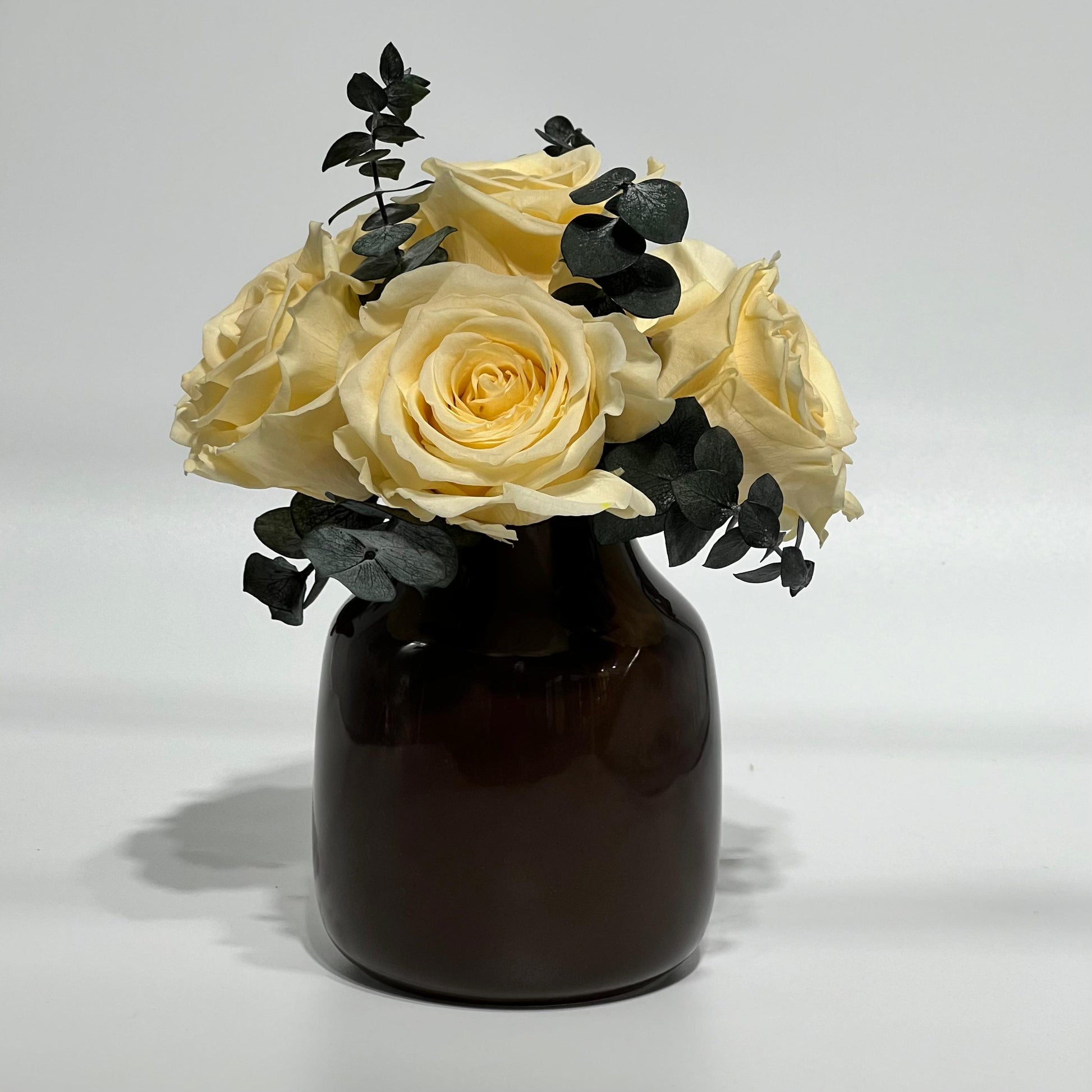 Arriving in this stunning white vase, you’ll find 5 perfectly bloomed, real roses in authentically beautiful, Champagne. The ultimate in classic romance, the mint rose defies nature with its strikingly magical mint pigment, which you can enjoy and admire for a whole year.