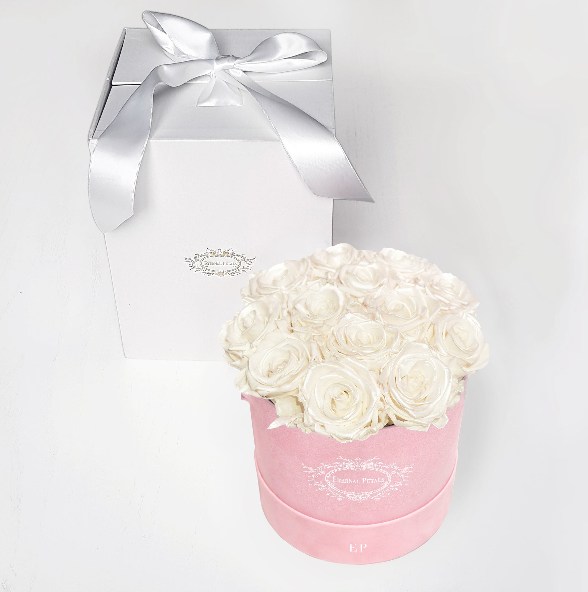 Arriving in this stunning gift box, you’ll find 11-14 perfectly bloomed, real roses in authentically beautiful champagne satin colour. The ultimate in classic romance, which you can enjoy and admire for a whole year.