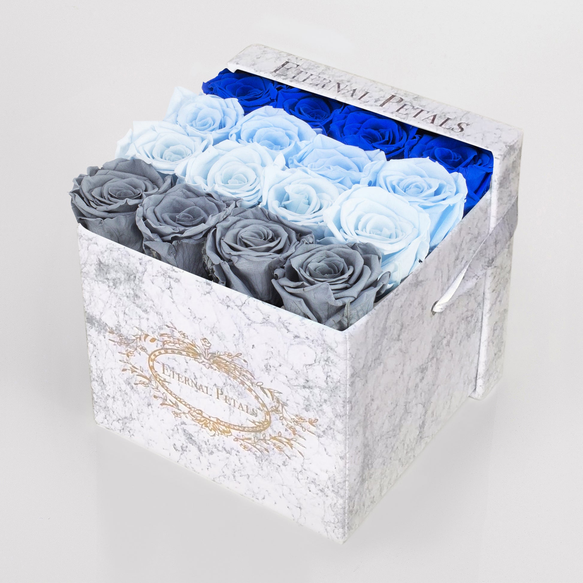 NO WATER or MAINTENANCE NEEDED! The roses are cut when they have perfectly bloomed, and when treated with a new cutting-edge method, their look, feel and smell become long lasting.