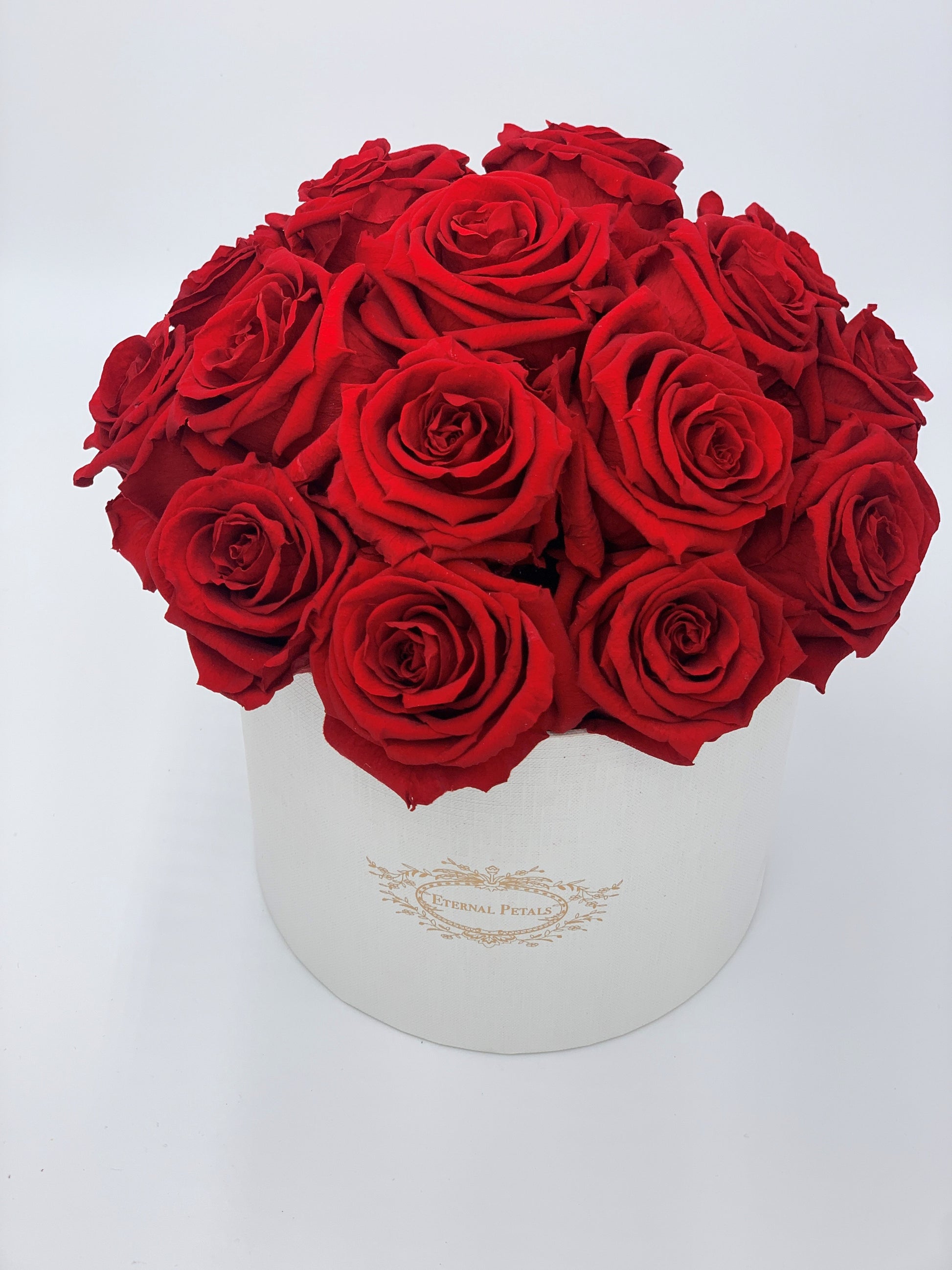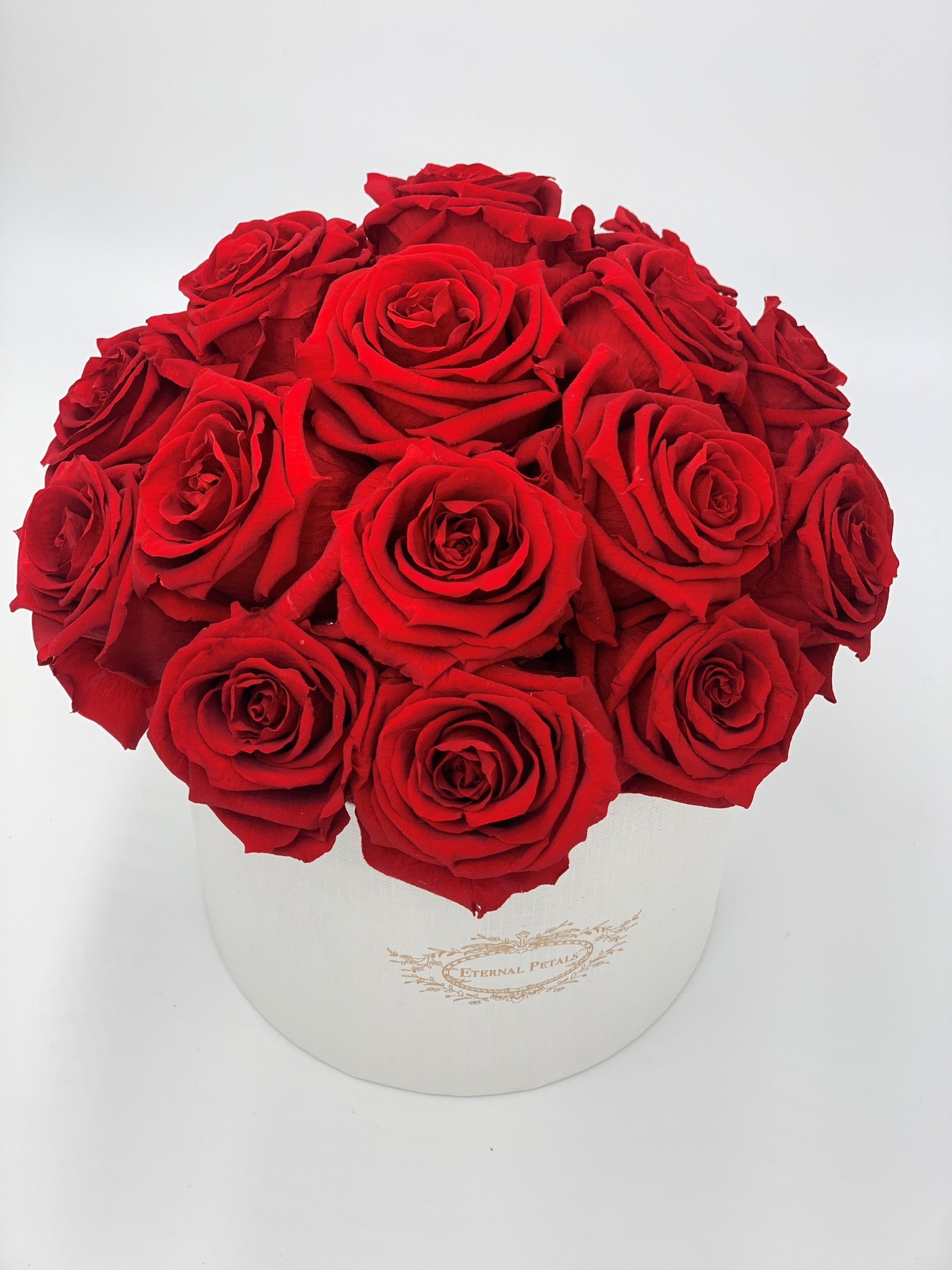 Arriving in this stunning gift box, you’ll find 17 perfectly bloomed, real roses in authentically beautiful deep red colour. The ultimate in classic romance, which you can enjoy and admire for a whole year.