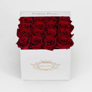 These stunning deep red roses peek romantically out of their beautiful white flower box, creating a luxurious bold finish. A warm and rich alternative to a red rose, the deep red tones are sumptuous and unique, perfect to pair in an elegant and contemporary home or for a sweet token of love. The Perfect Gift!