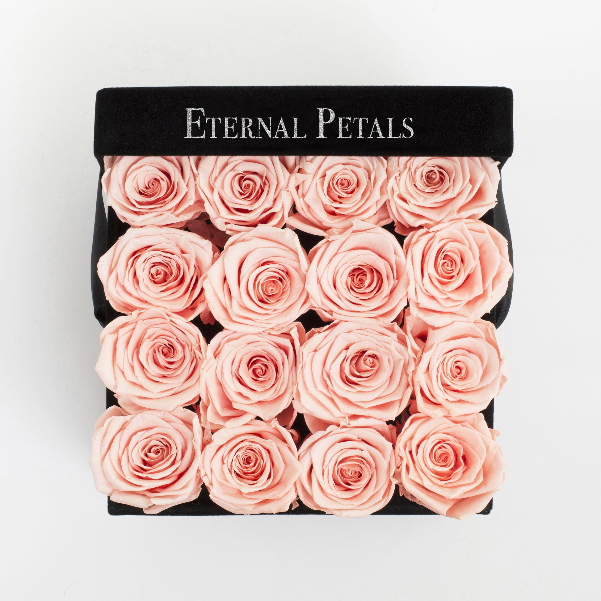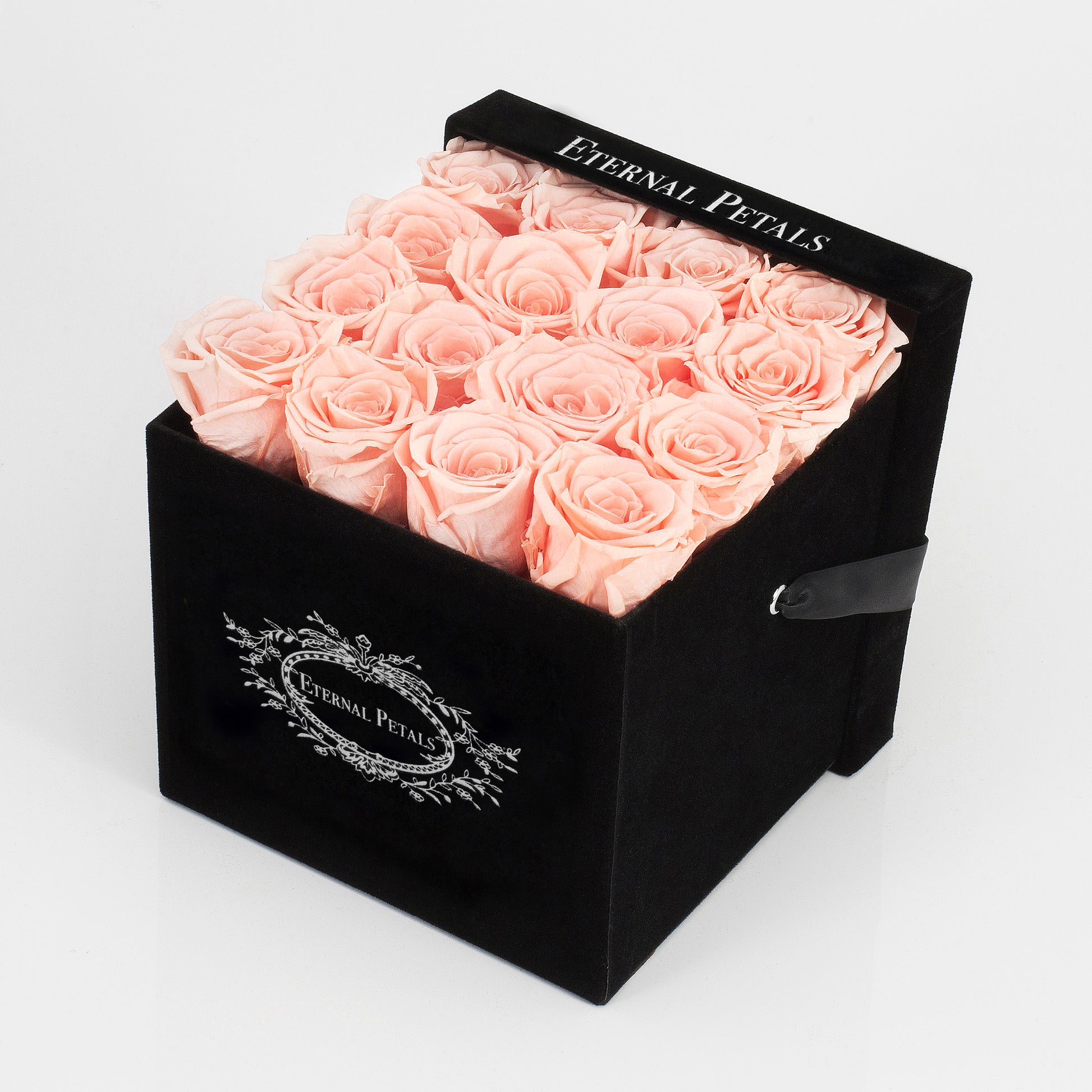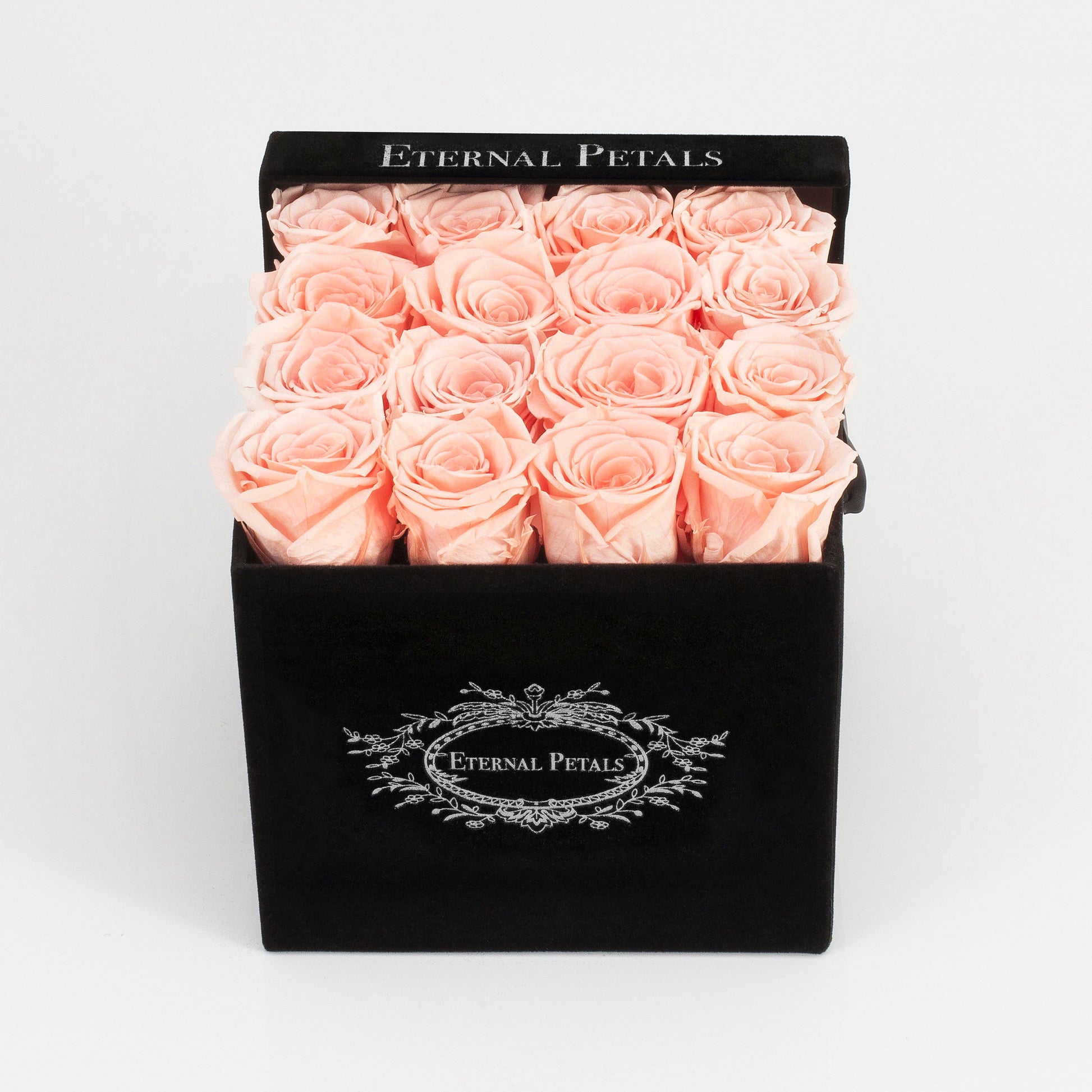 Peeking out from its luxurious black flower box, these “delicious” peach palette roses really do stand out from the crowd. Their vintage-inspired colouring is the perfect pastel addition to a stunning, contemporarily designed modern home. Feminine, beautiful and striking; it’s a deluxe way to indulge in a special floral treat this year.