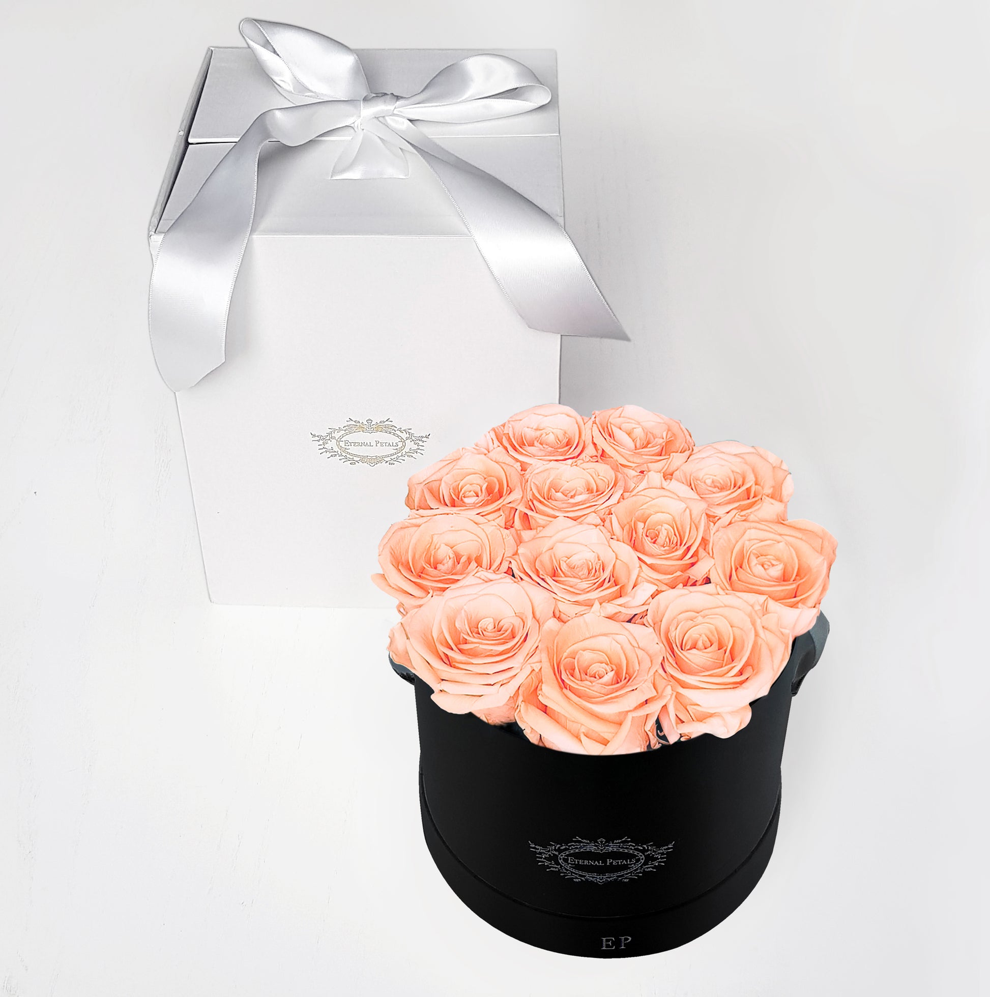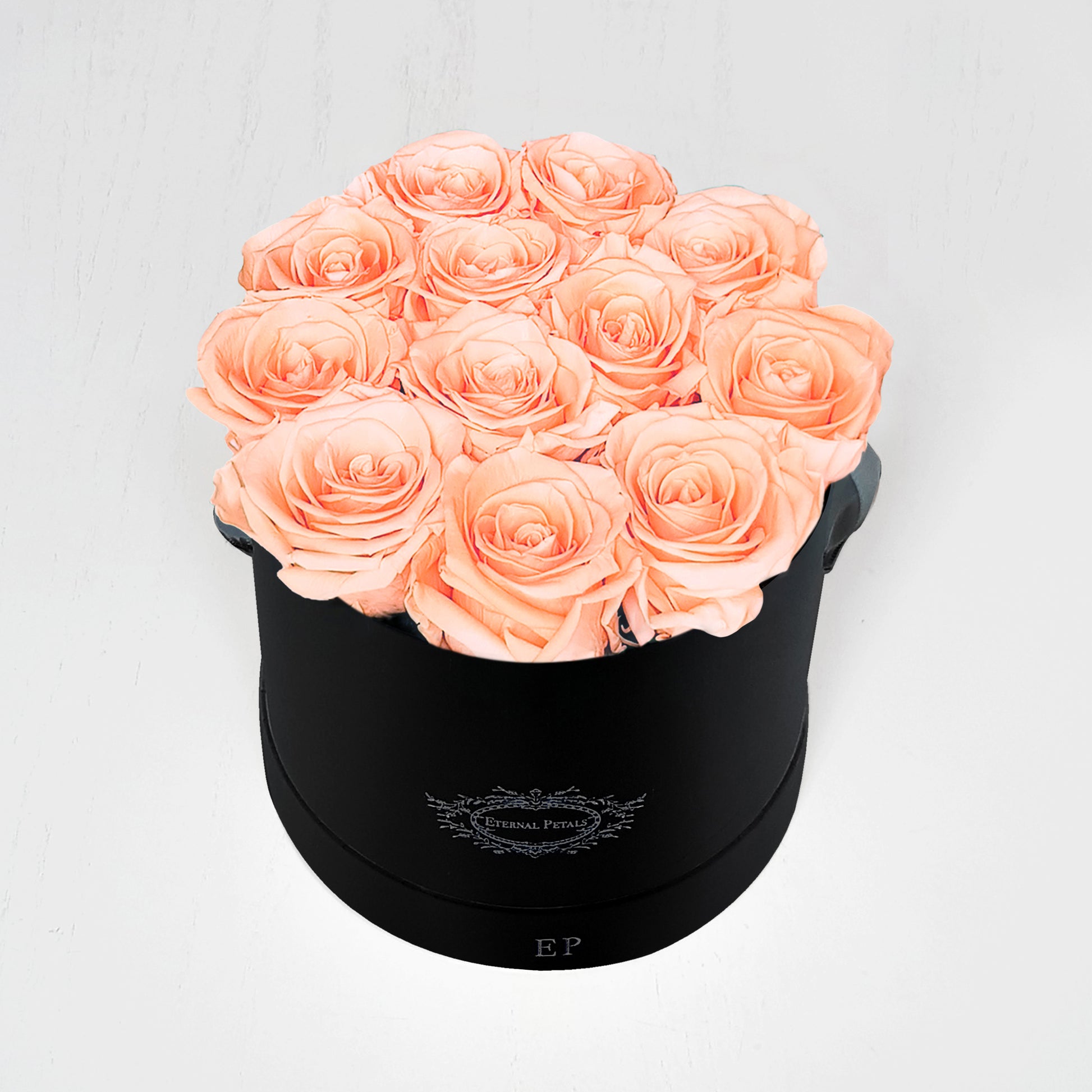 Arriving in this stunning gift box, you’ll find 11-14 perfectly bloomed, real roses in authentically beautiful delicious peach colour. The ultimate in classic romance, which you can enjoy and admire for a whole year.