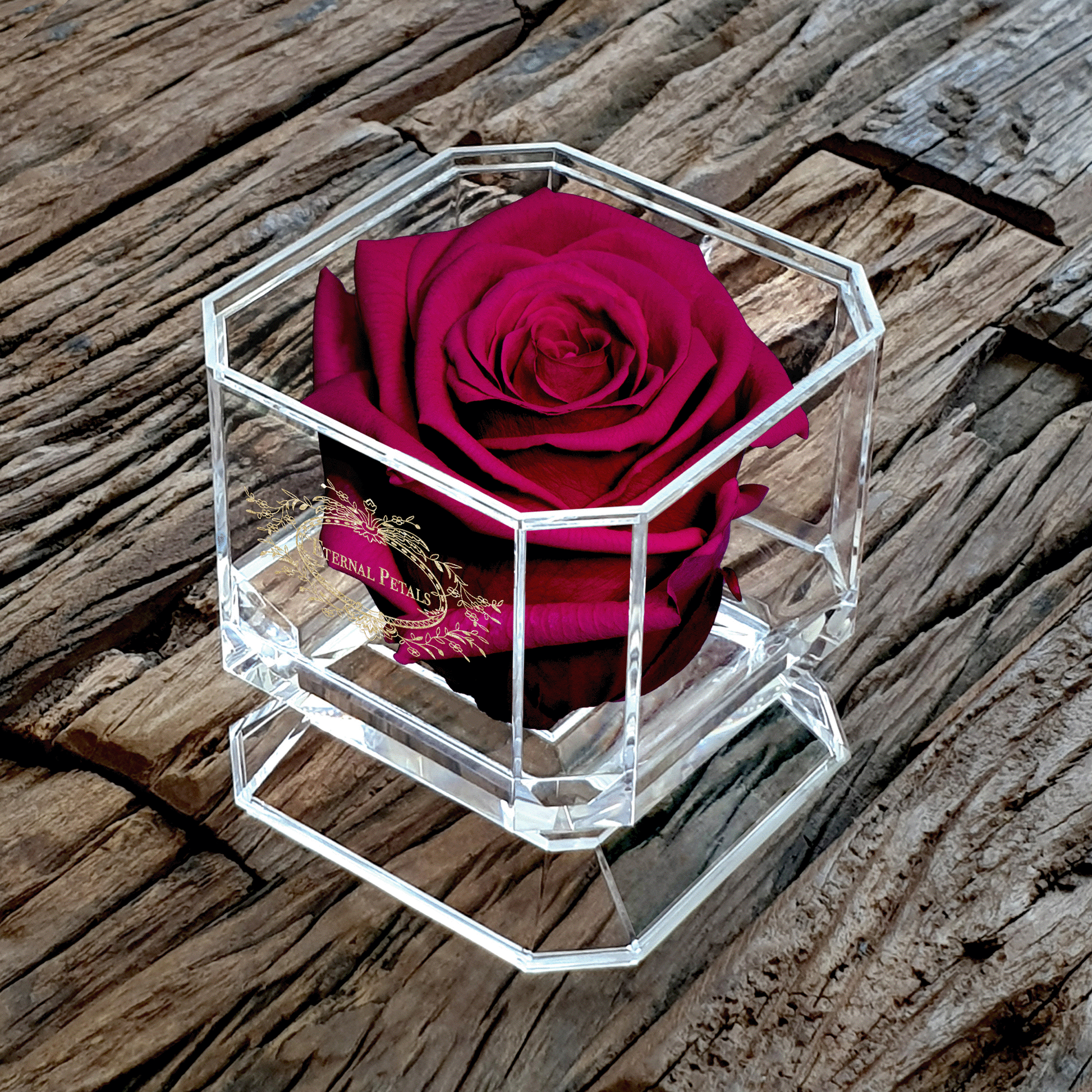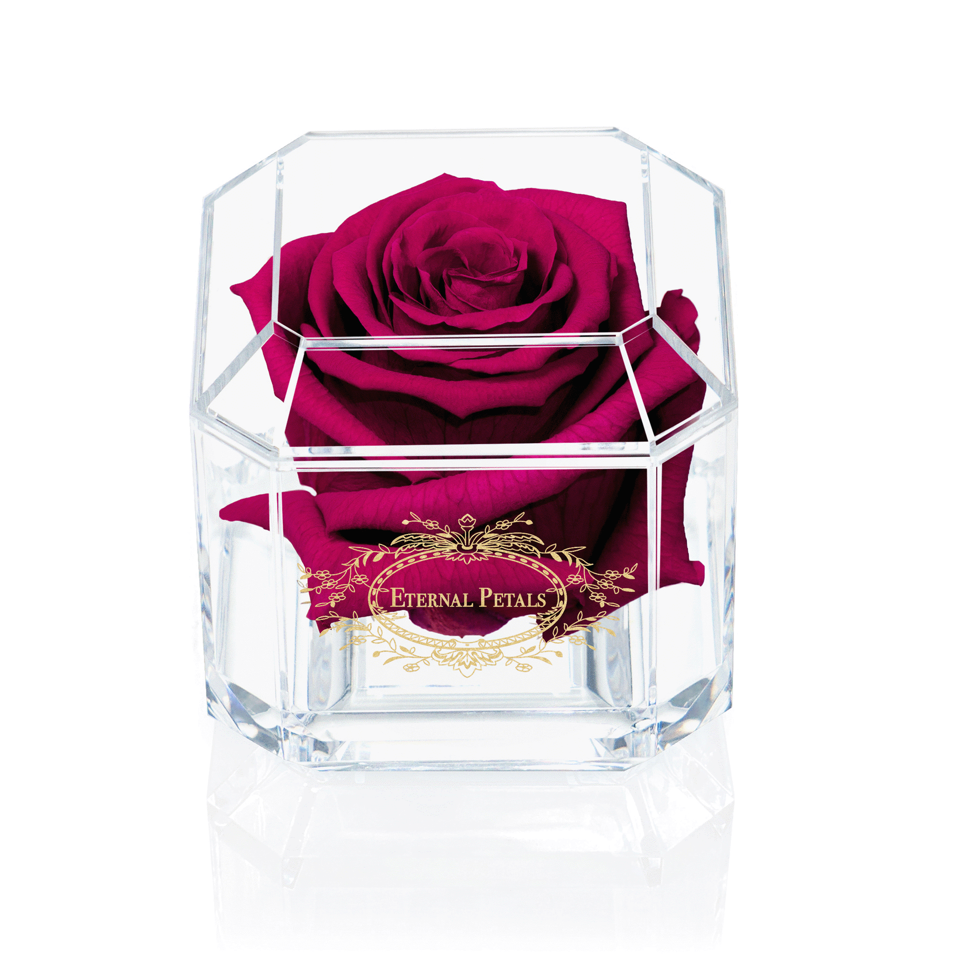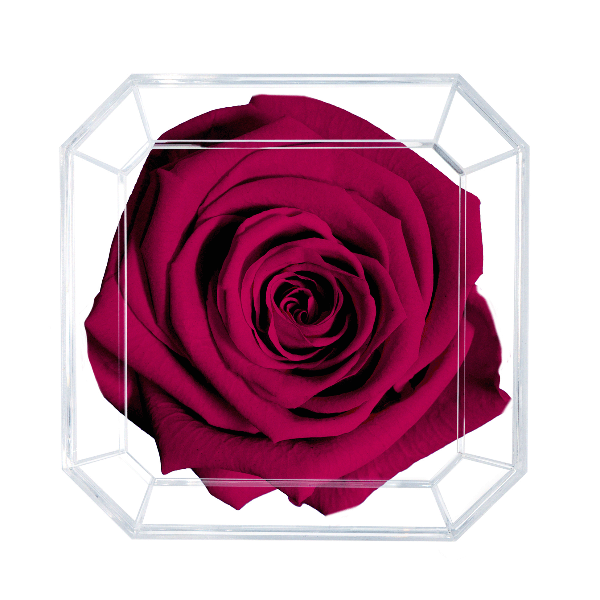 In the pictures you can see a deep pink colour rose inside our trendy Diamond box.