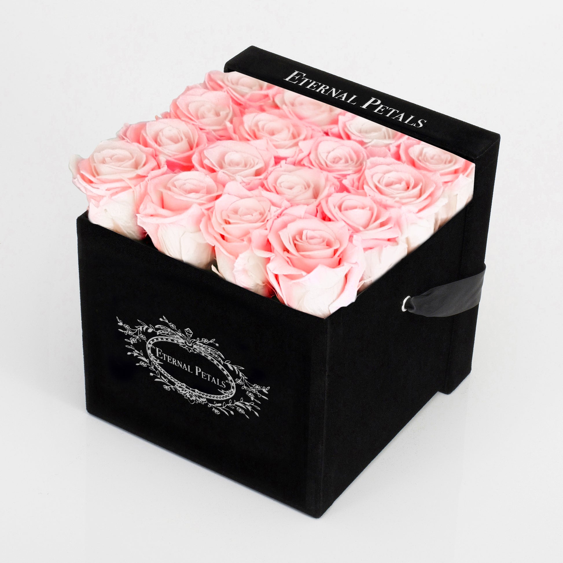 In the pictures you can see Double Pink colour roses inside our luxury black flower box.