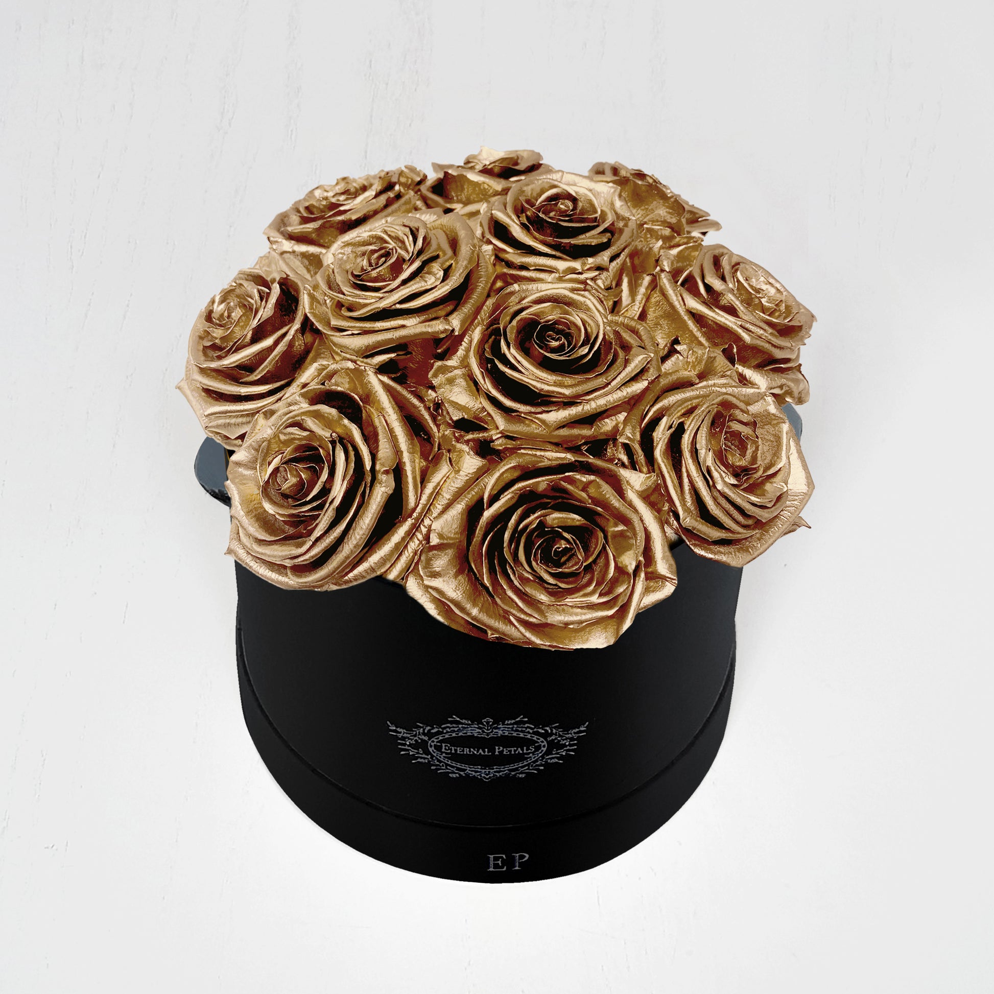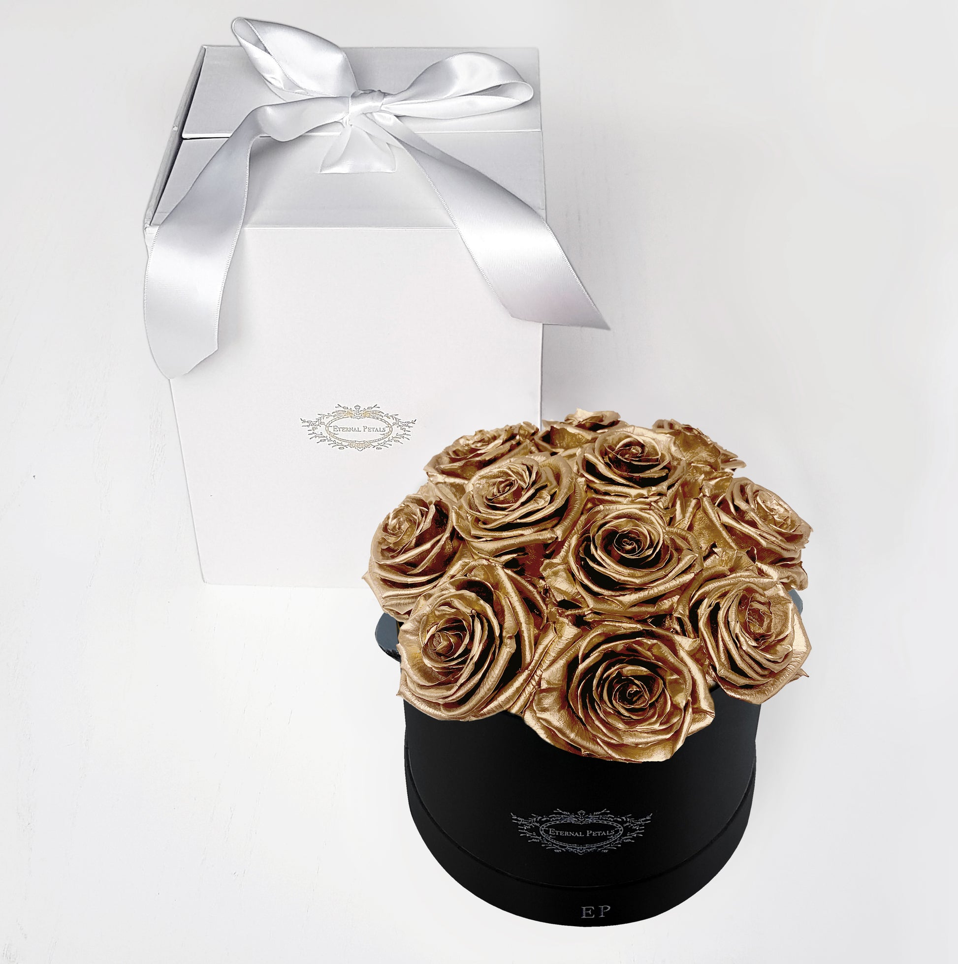 Arriving in this stunning gift box, you’ll find 11-14 perfectly bloomed, real roses in authentically beautiful gold colour. The ultimate in classic romance, which you can enjoy and admire for a whole year.