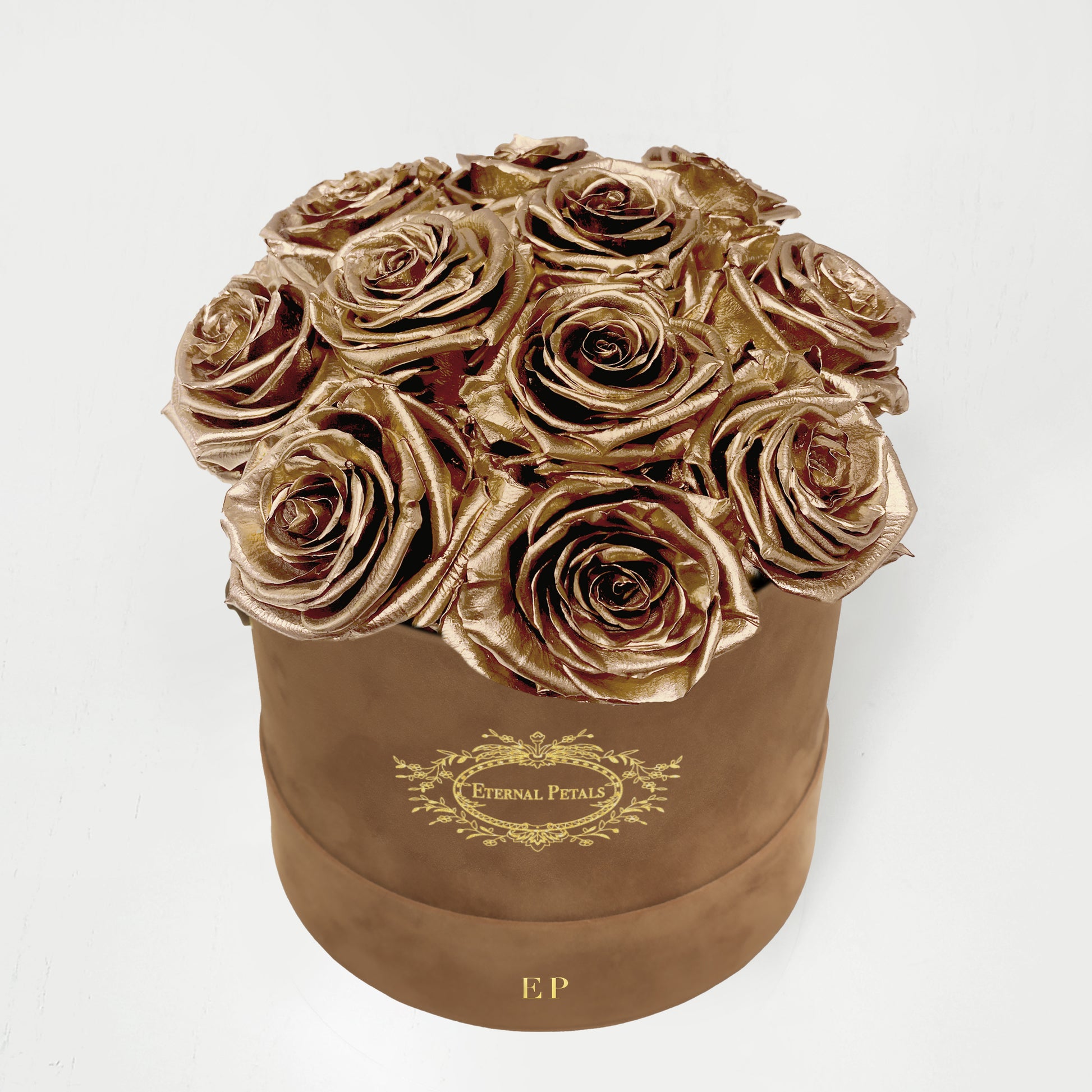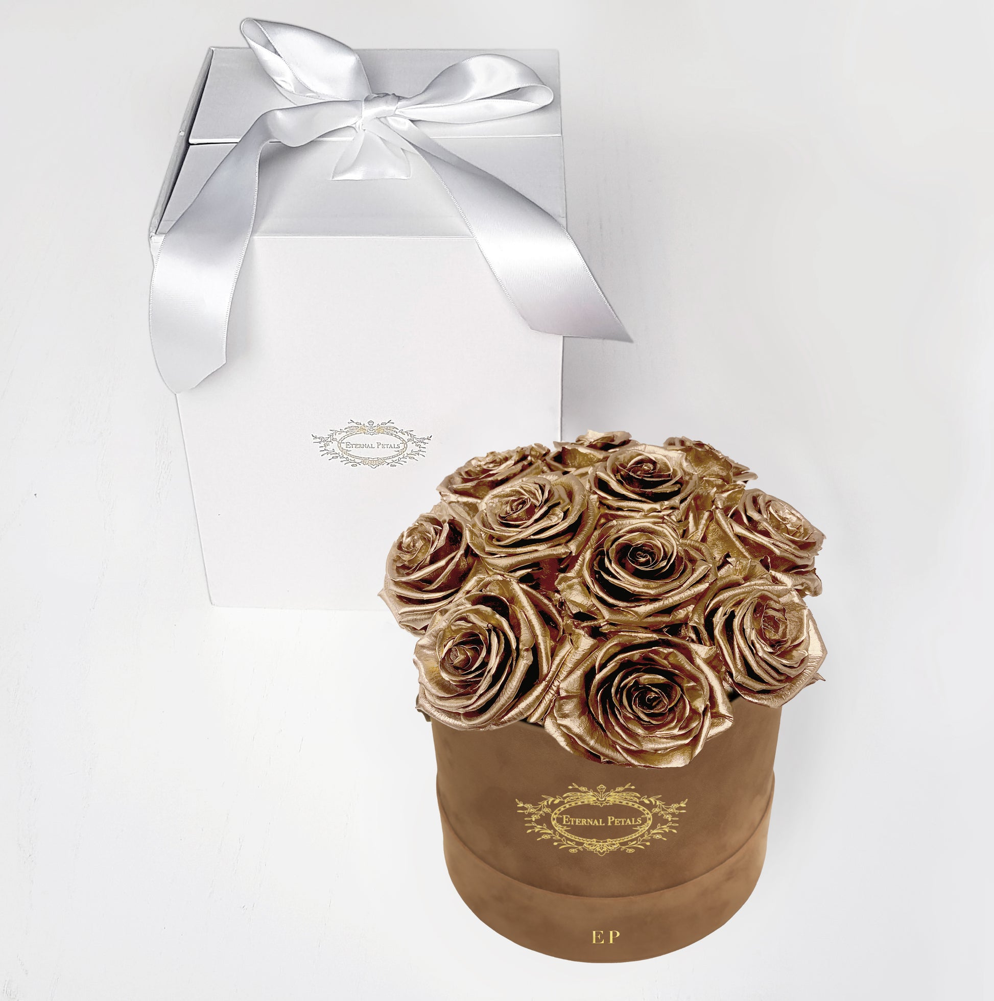 Arriving in this stunning brown gift box, you’ll find 11-14 perfectly bloomed, real roses in authentically beautiful golden colour. The ultimate in classic romance, which you can enjoy and admire for a whole year.