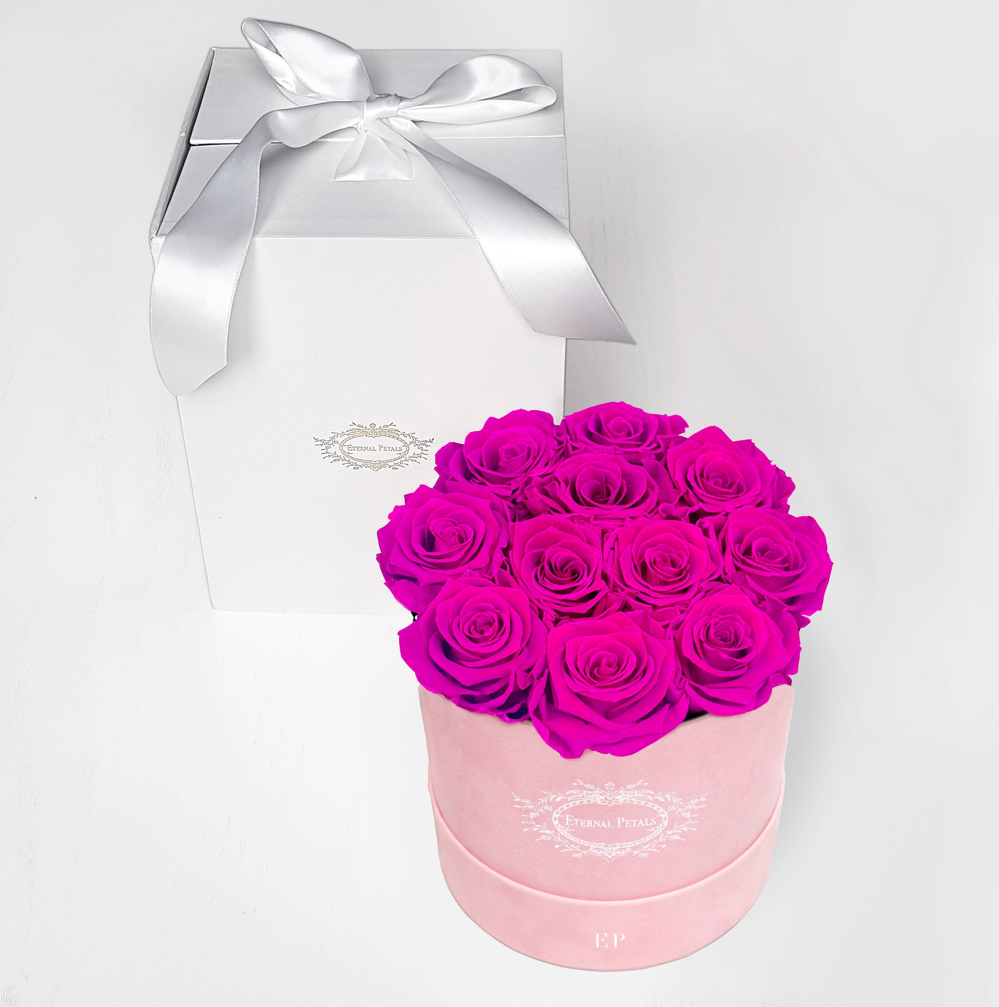 Arriving in this stunning gift box, you’ll find 11-14 perfectly bloomed, real roses in authentically beautiful hot pink colour. The ultimate in classic romance, which you can enjoy and admire for a whole year.