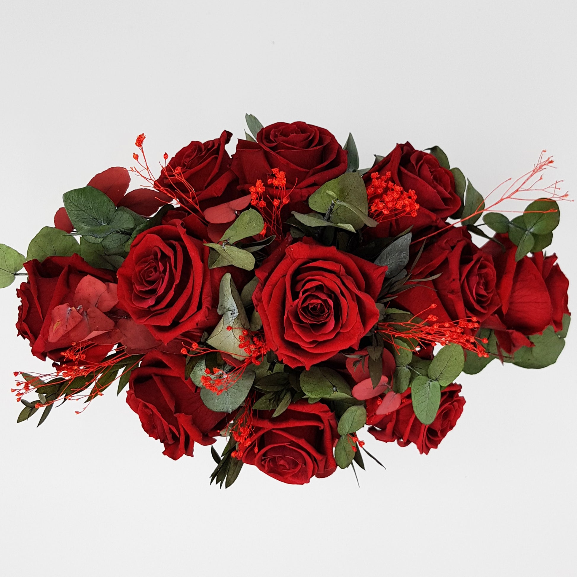 This arrangement of gorgeous real roses and foliage requires no water or maintenance at all, enabling it to last at least one year. Due to our expert preparation and treatment method, your roses will last and last, meaning you can enjoy them for longer than ever before.