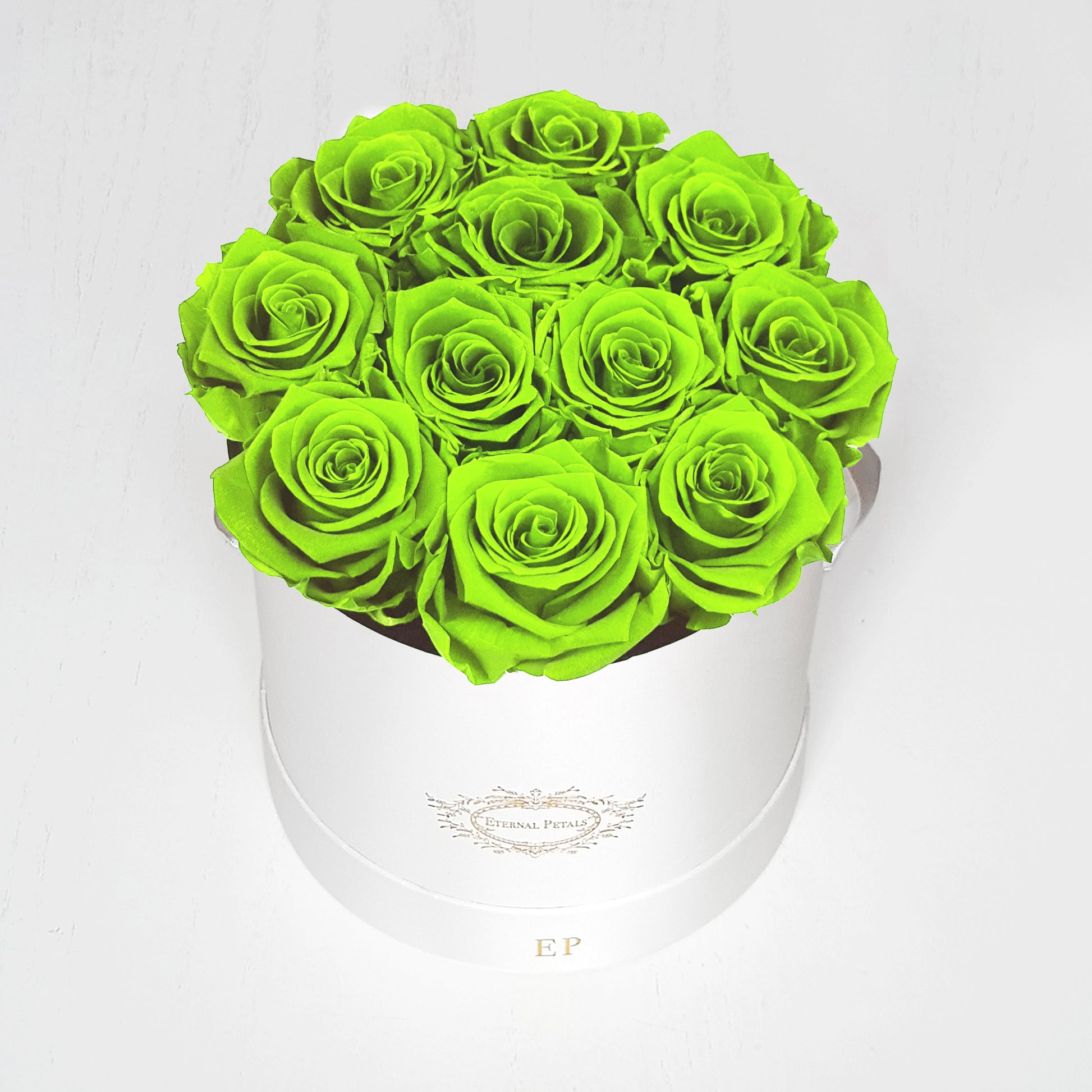 Arriving in this stunning gift box, you’ll find 11-14 perfectly bloomed, real roses in authentically beautiful "Johnny Cash" vivid green colour. The ultimate in classic romance, which you can enjoy and admire for a whole year.