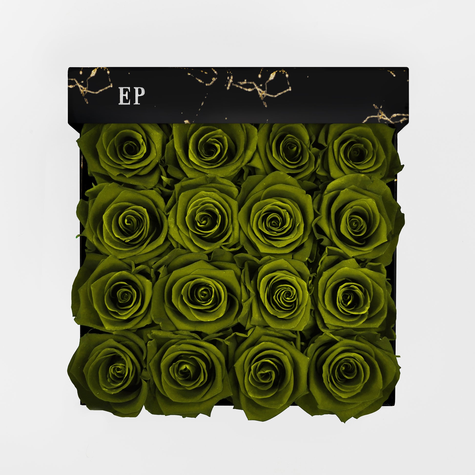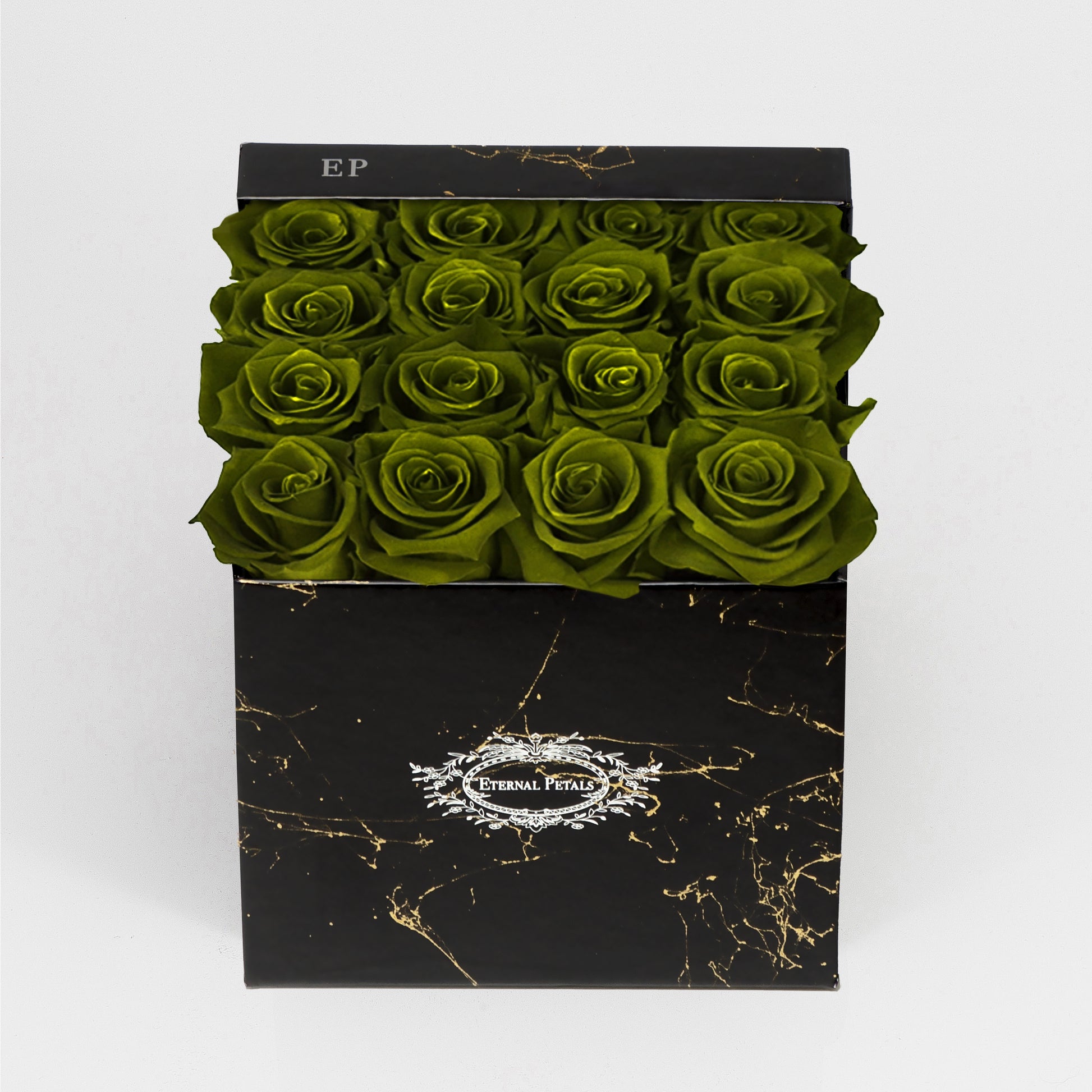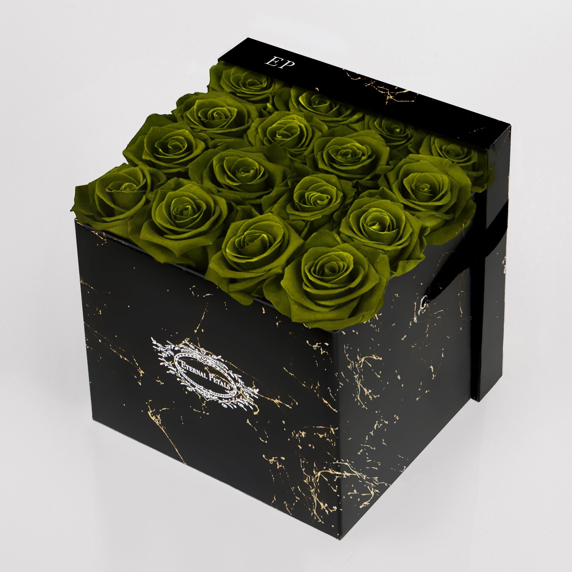 In the pictures you can see Khaki colour roses inside our luxury marble box.
