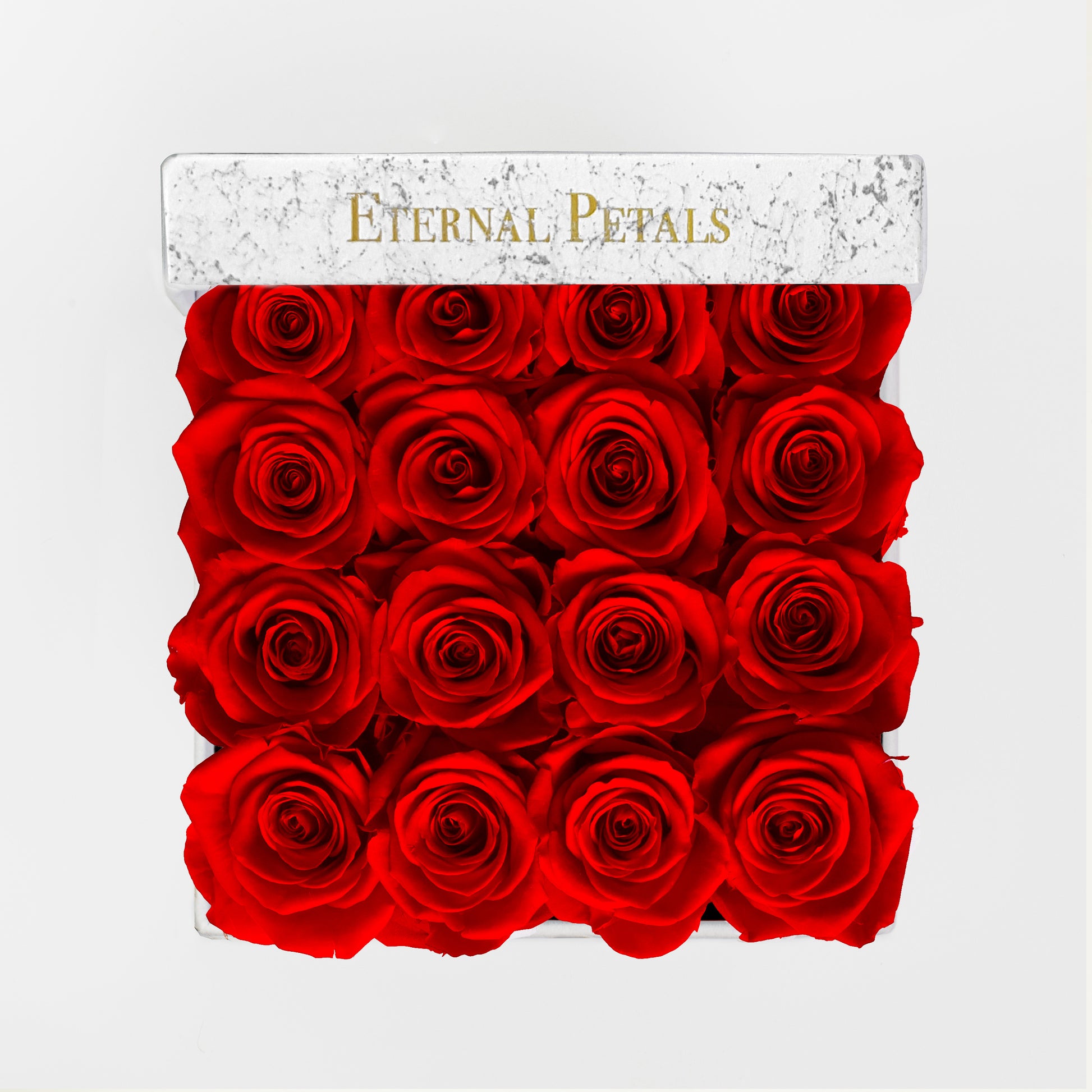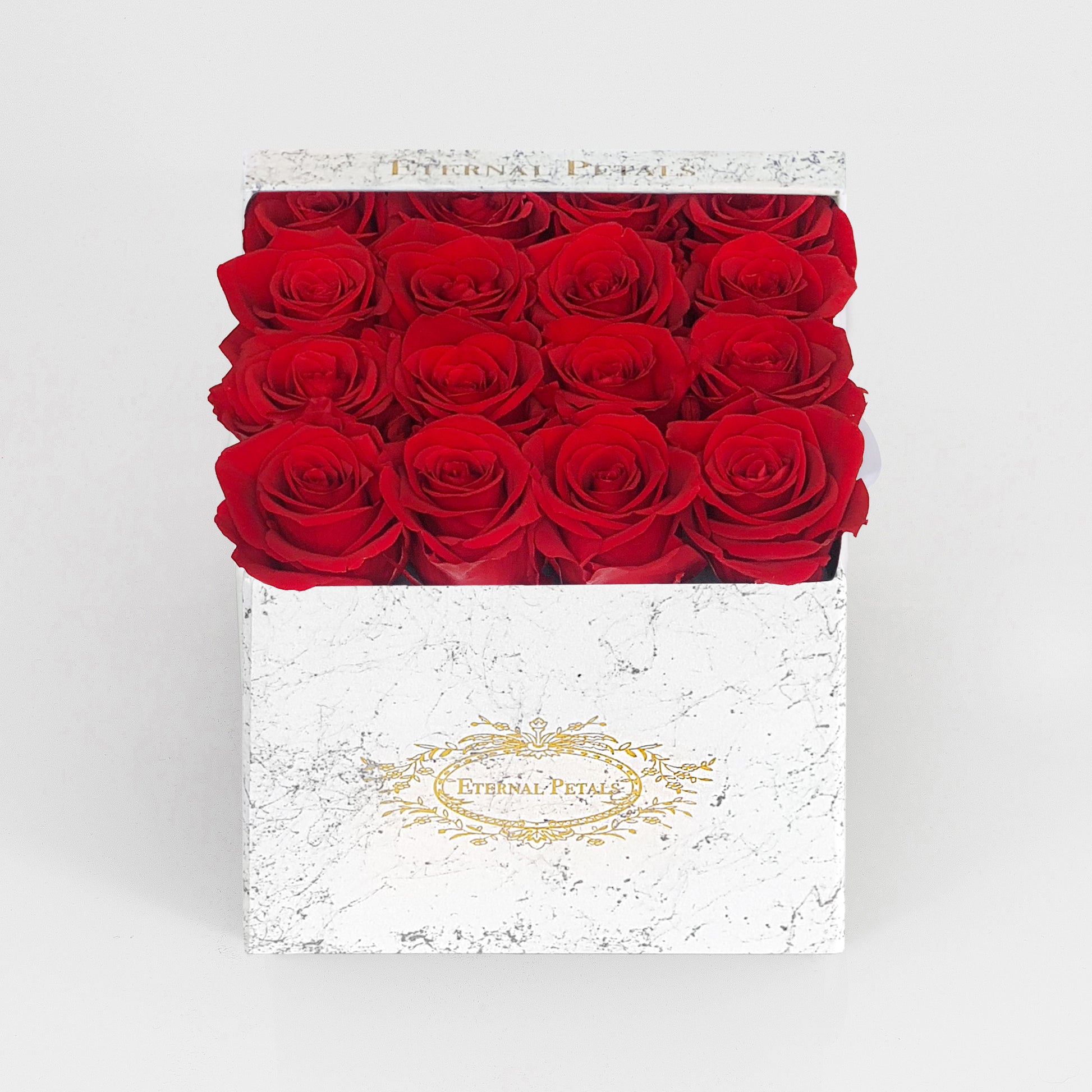 In the pictures you can see "Love" red colour roses inside our luxury marble box.
