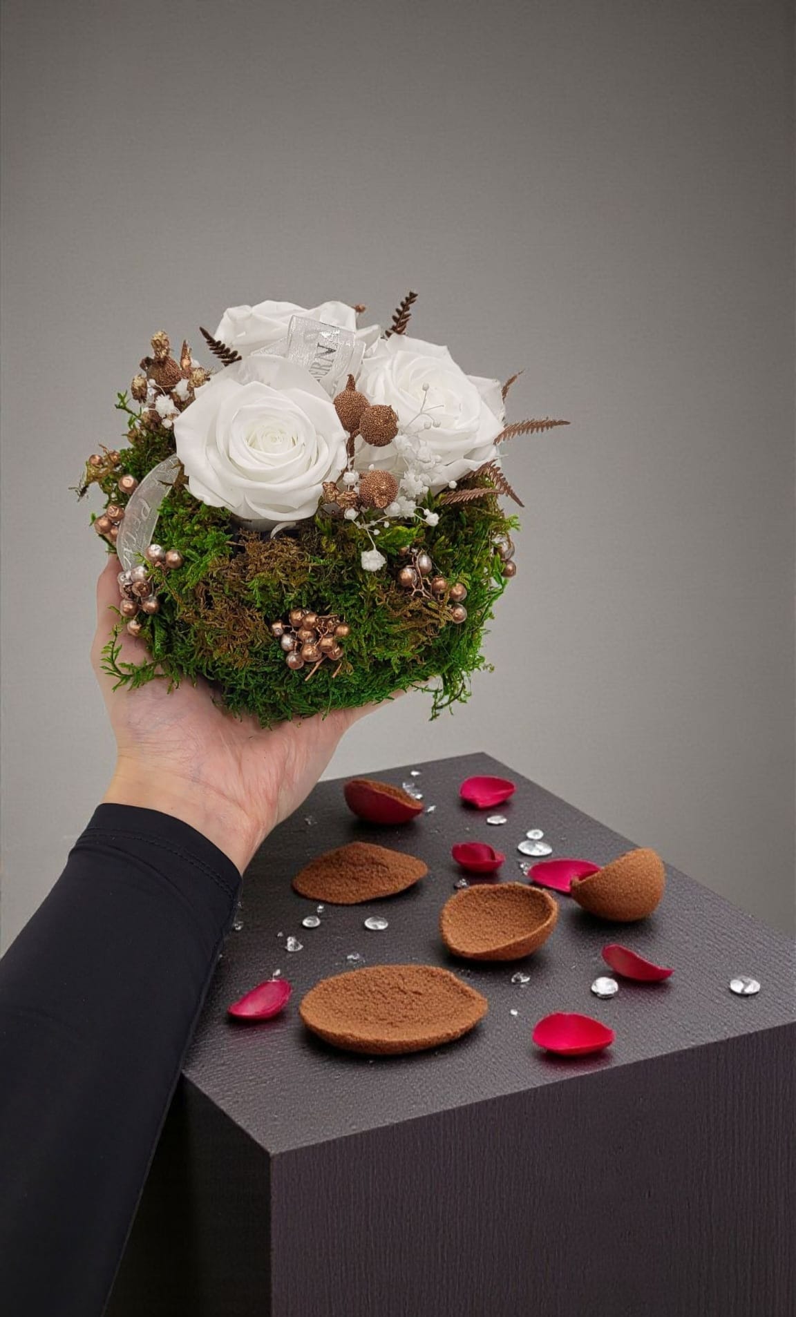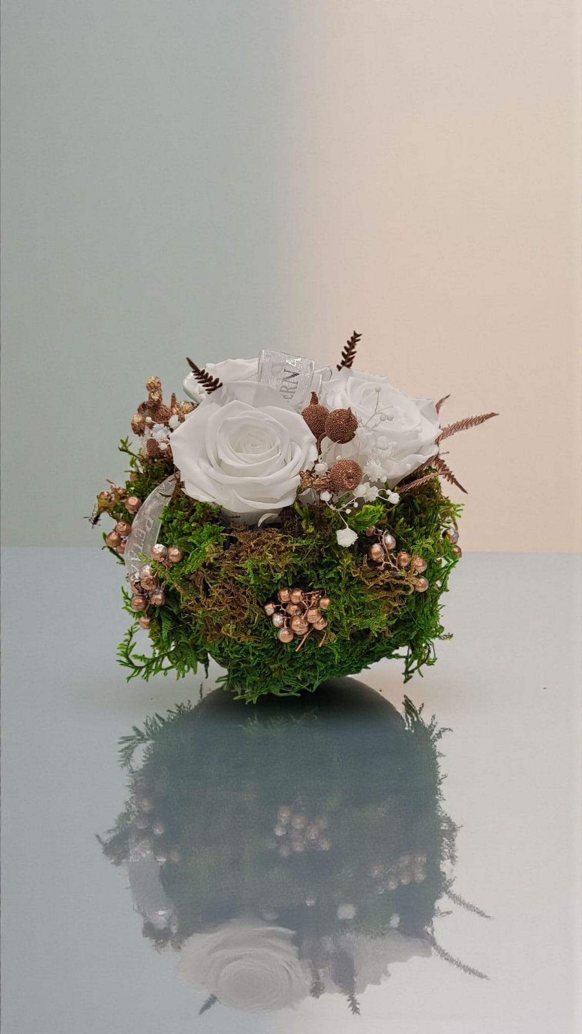 Arriving in this stunning crystal vase with moss touch, you’ll find 3 perfectly bloomed, Blush roses in authentically beautiful blush colour. Light roses are the symbol of innocence and purity, which you can enjoy and admire for a whole year.