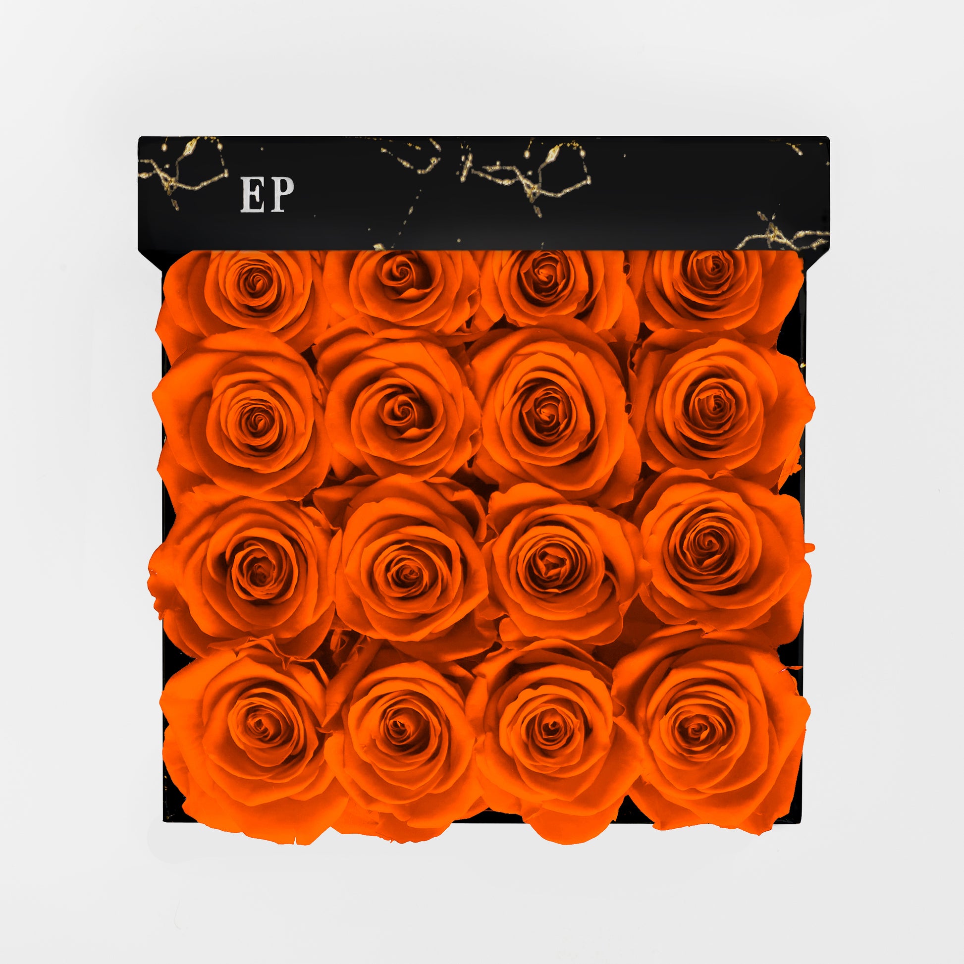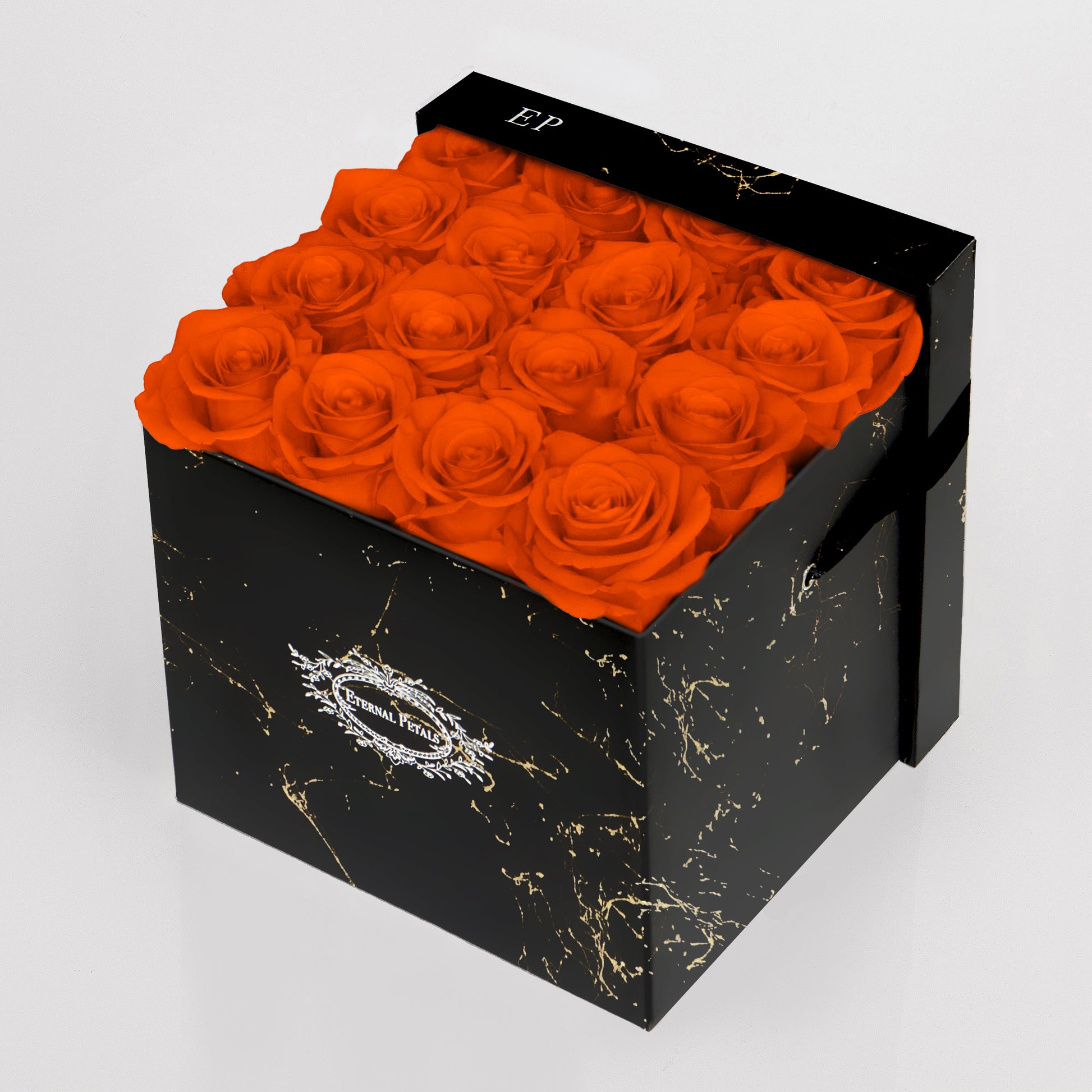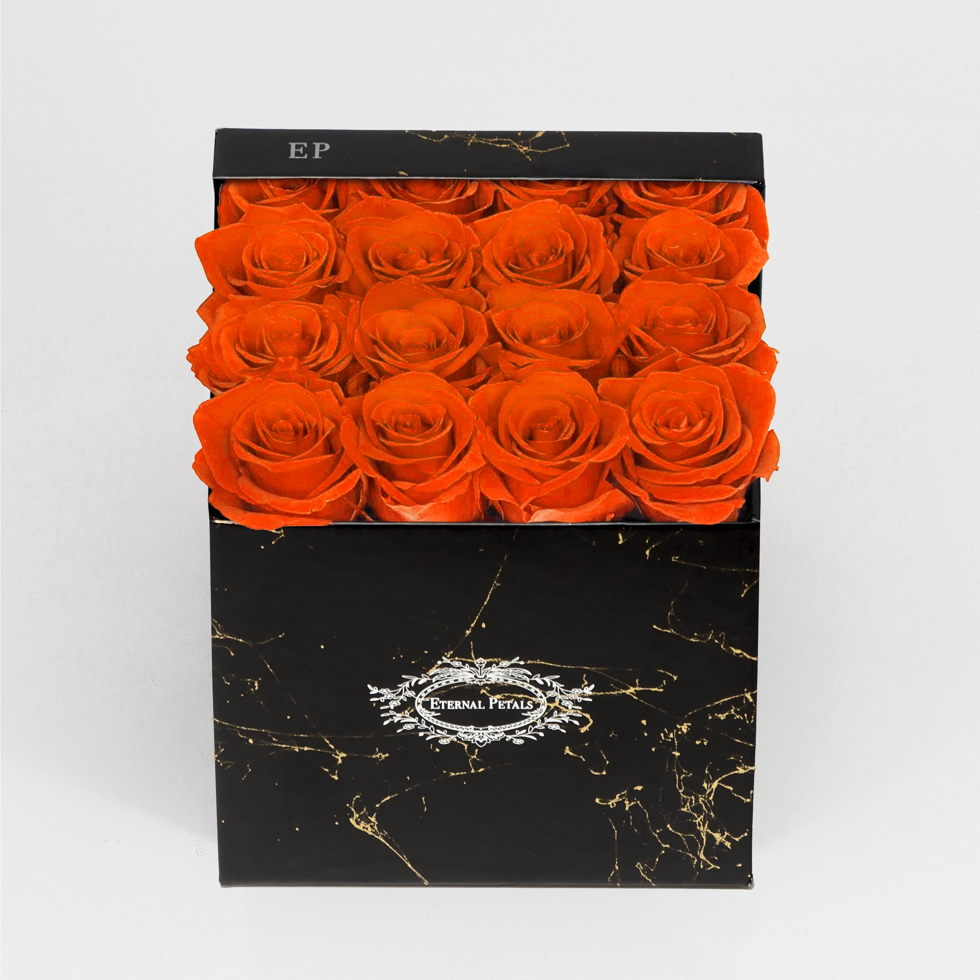 In the pictures you can see Orange colour roses inside our luxury marble box.