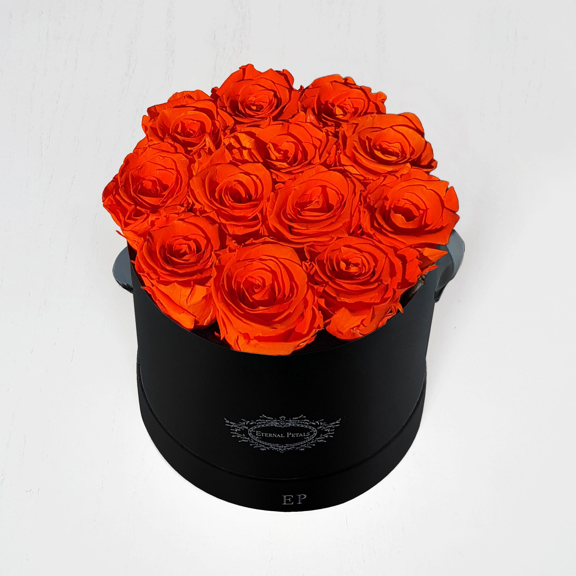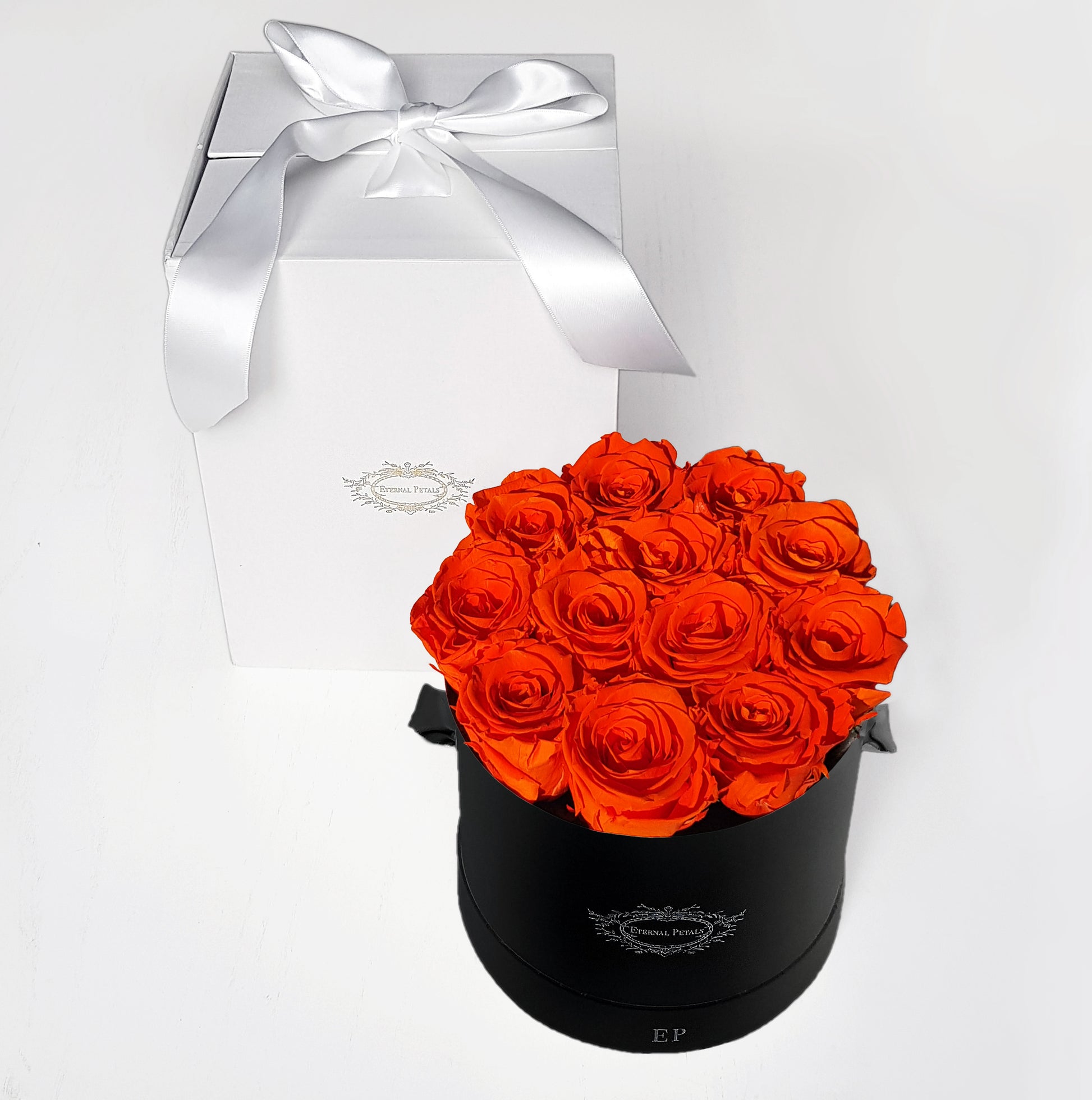Arriving in this stunning gift box, you’ll find 11-14 perfectly bloomed, real roses in authentically beautiful orange colour. The ultimate in classic romance, which you can enjoy and admire for at least one year.