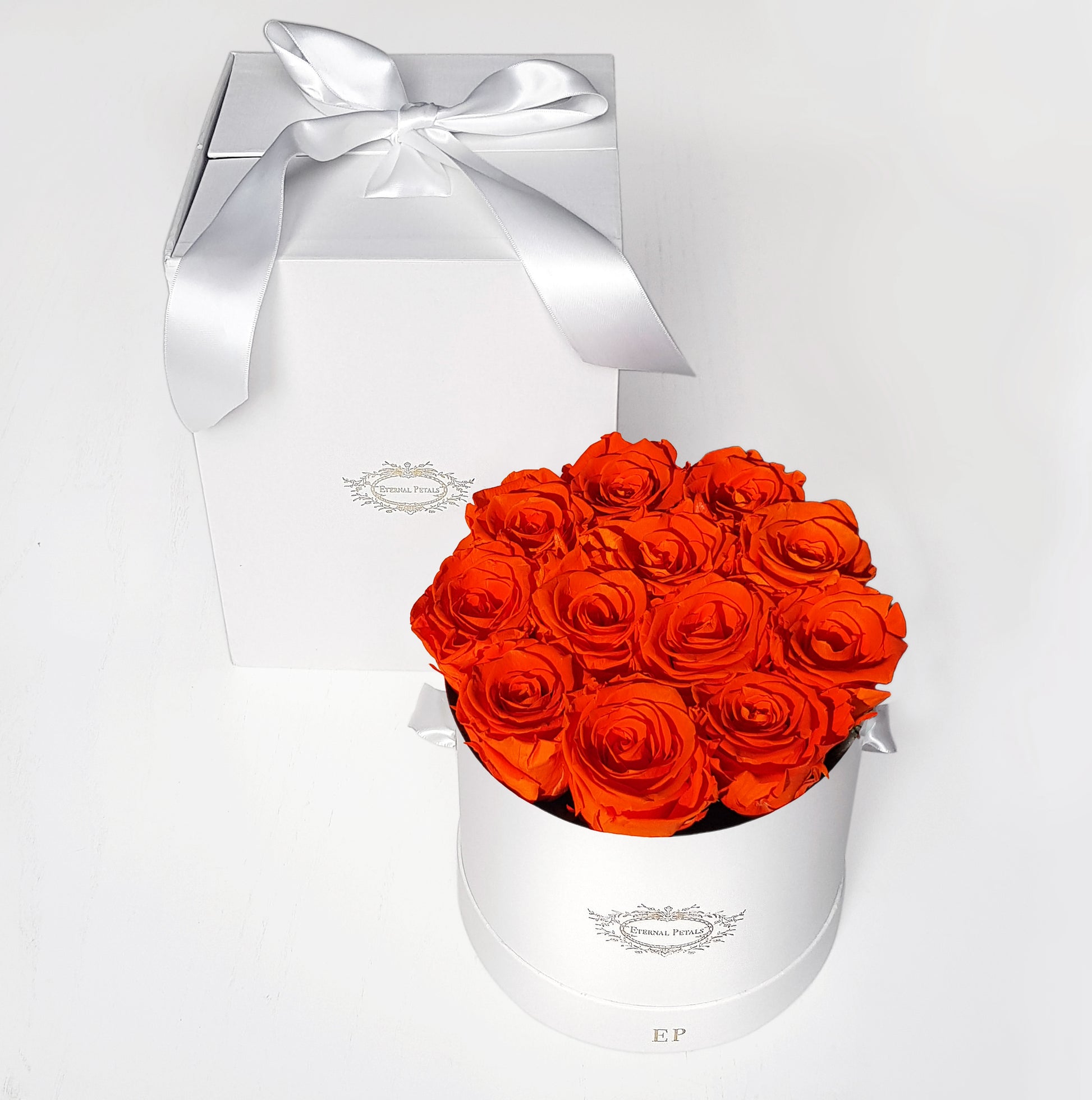 Arriving in this stunning gift box, you’ll find 11-14 perfectly bloomed, real roses in authentically beautiful orange colour. The ultimate in classic romance, which you can enjoy and admire for at least one year.