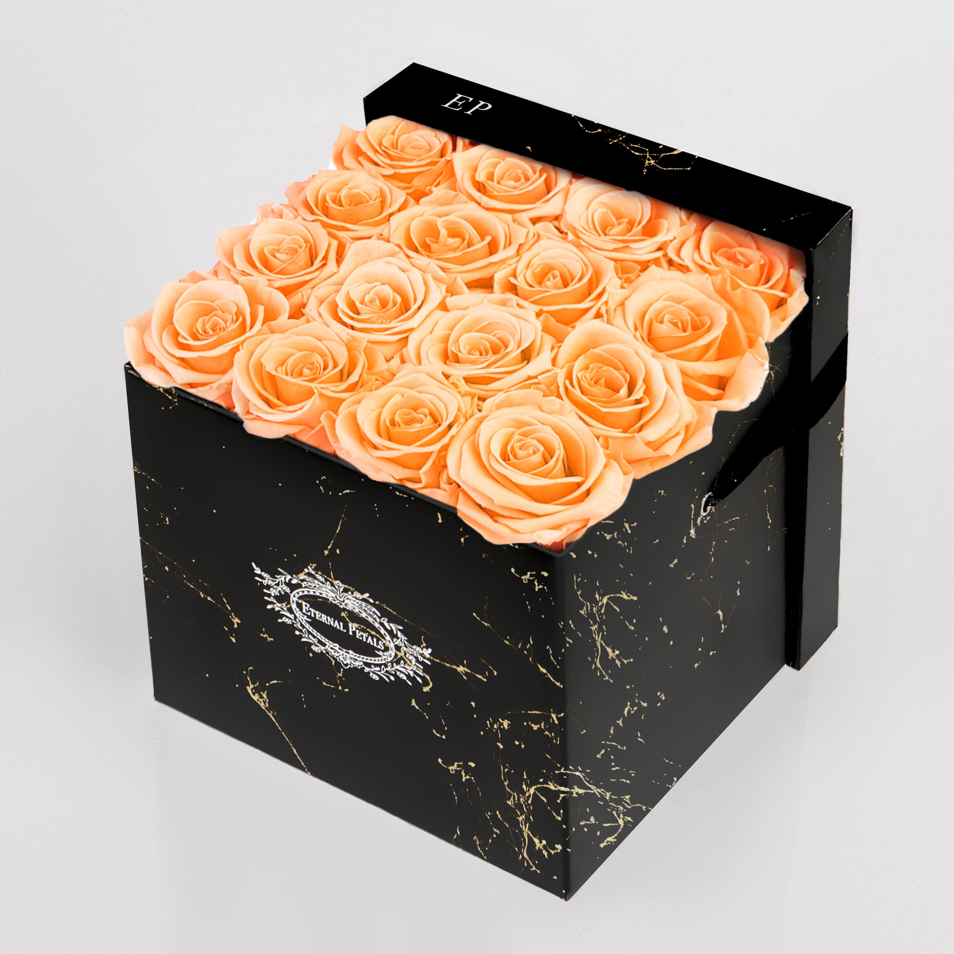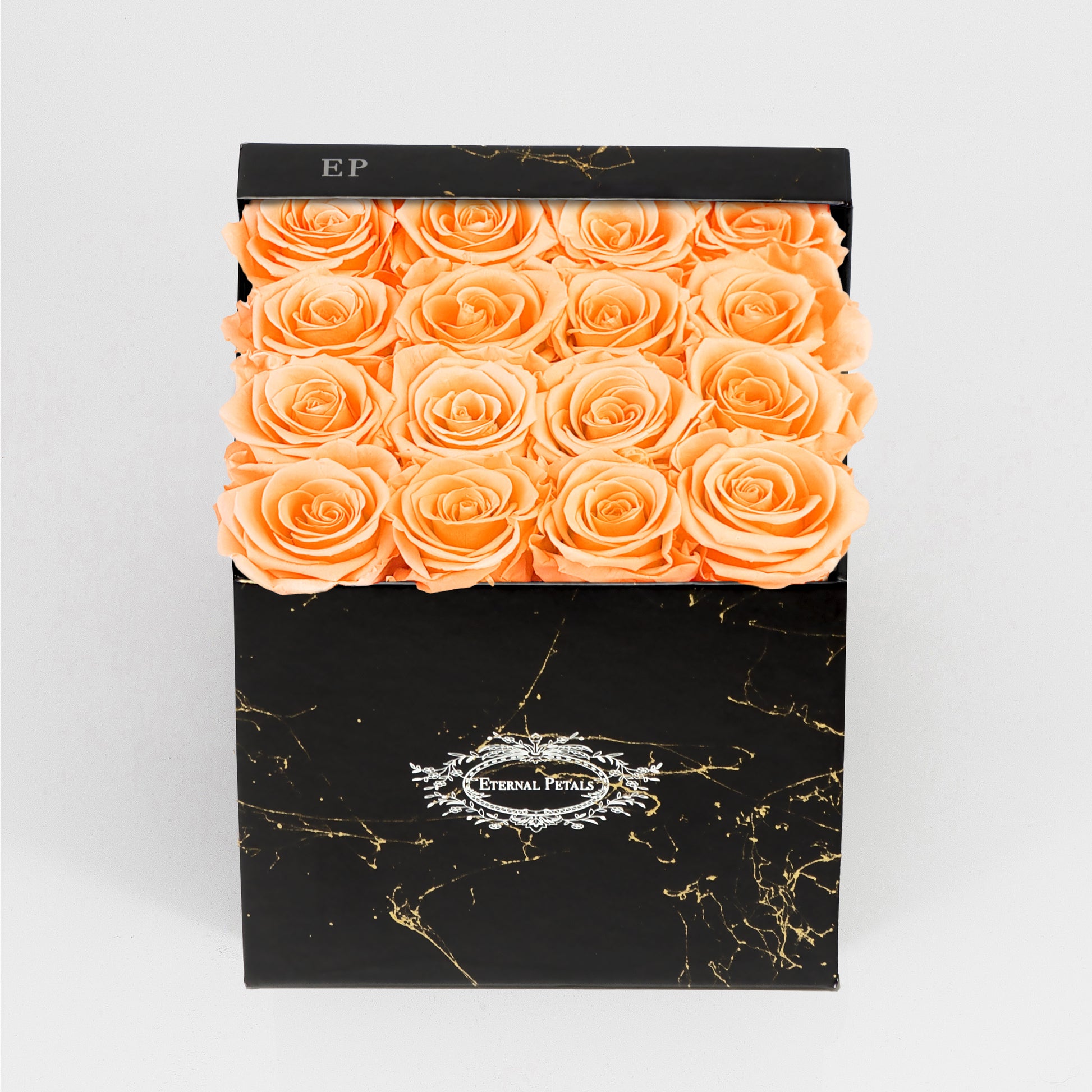 In the pictures you can see peach colour roses inside our luxury marble box.