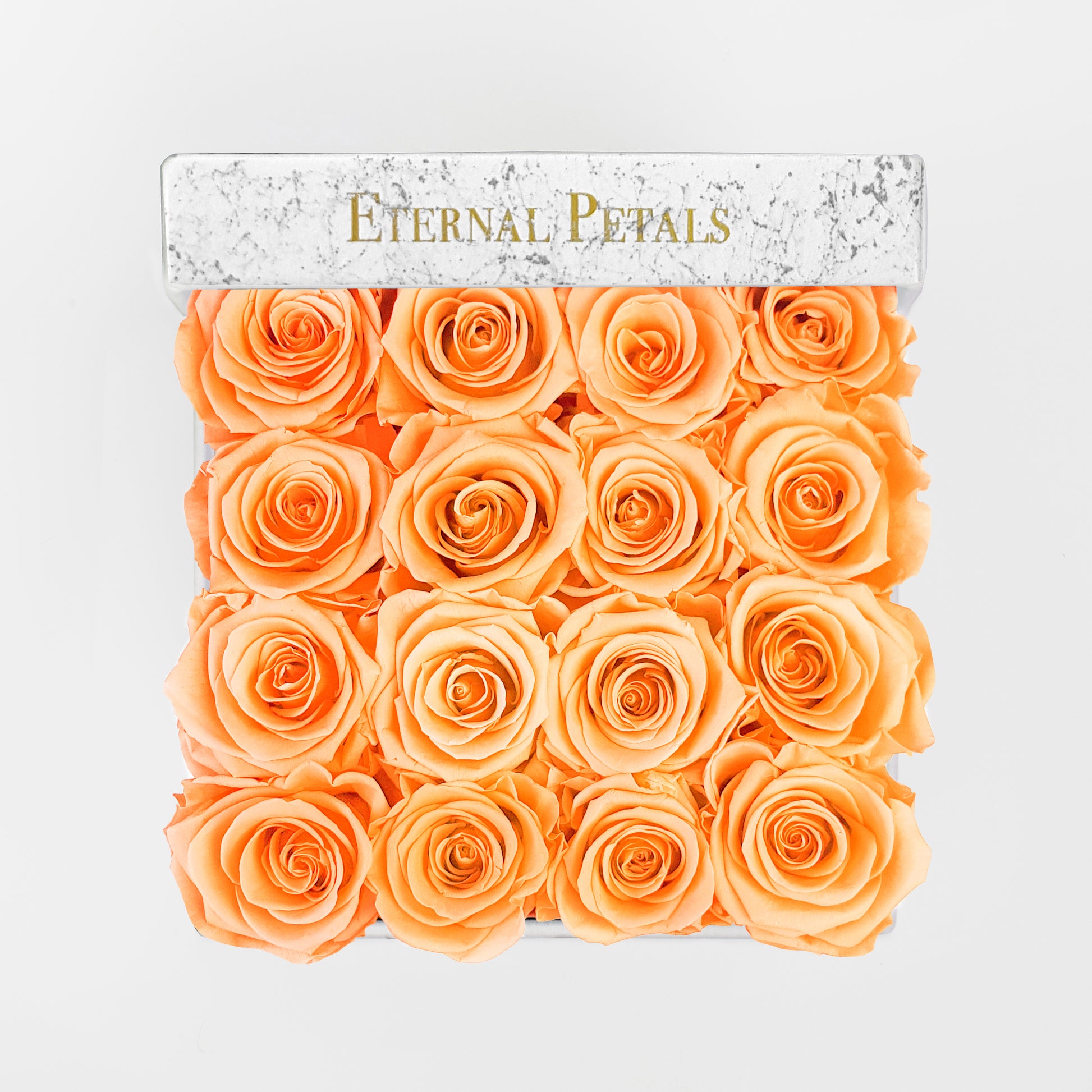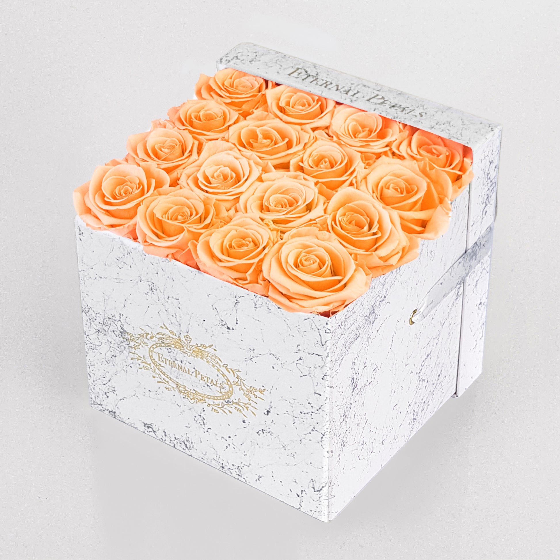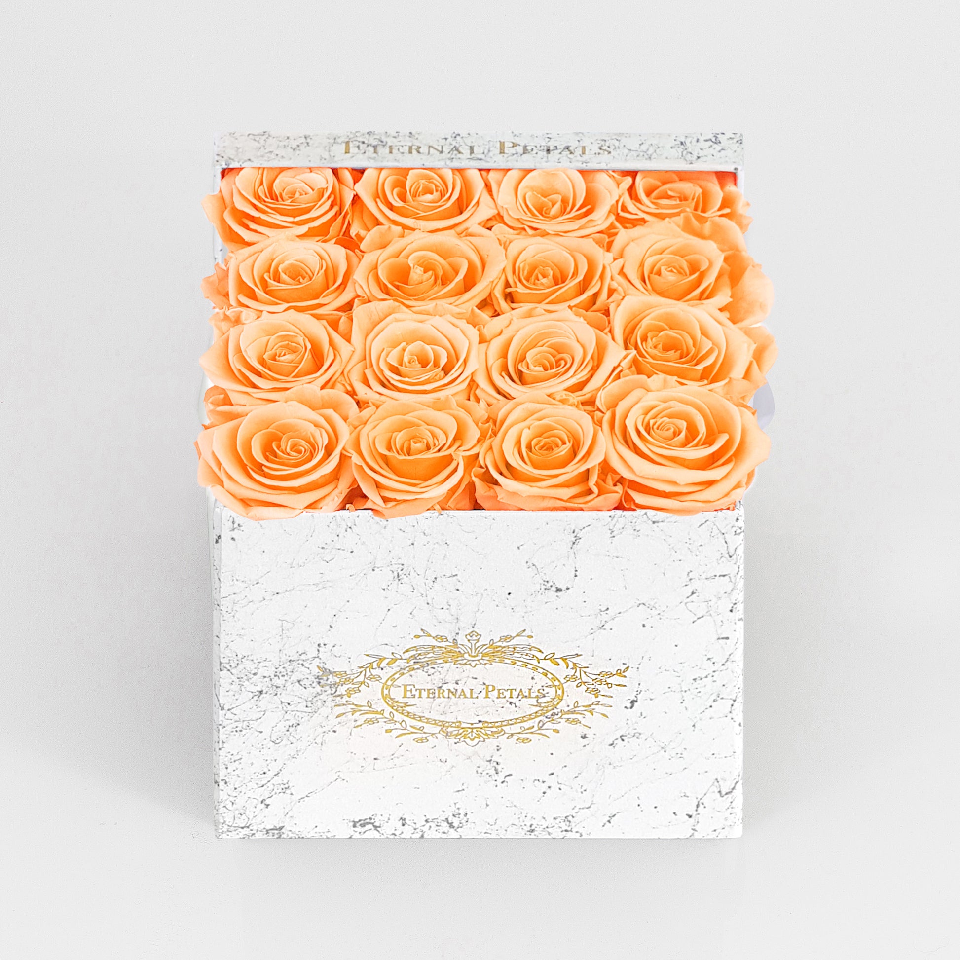 In the pictures you can see peach colour roses inside our luxury marble box.