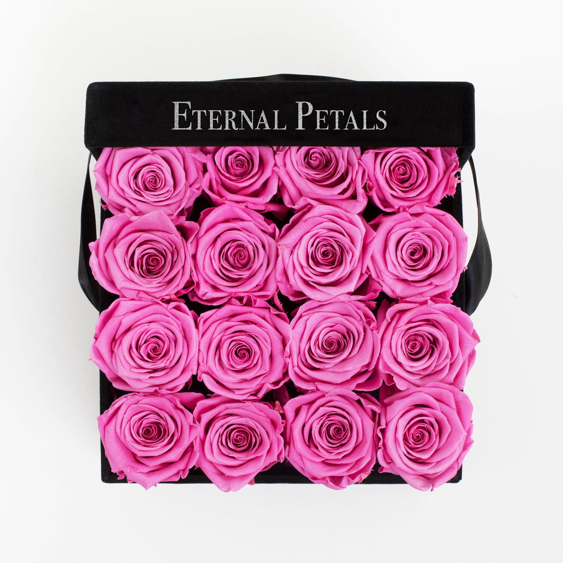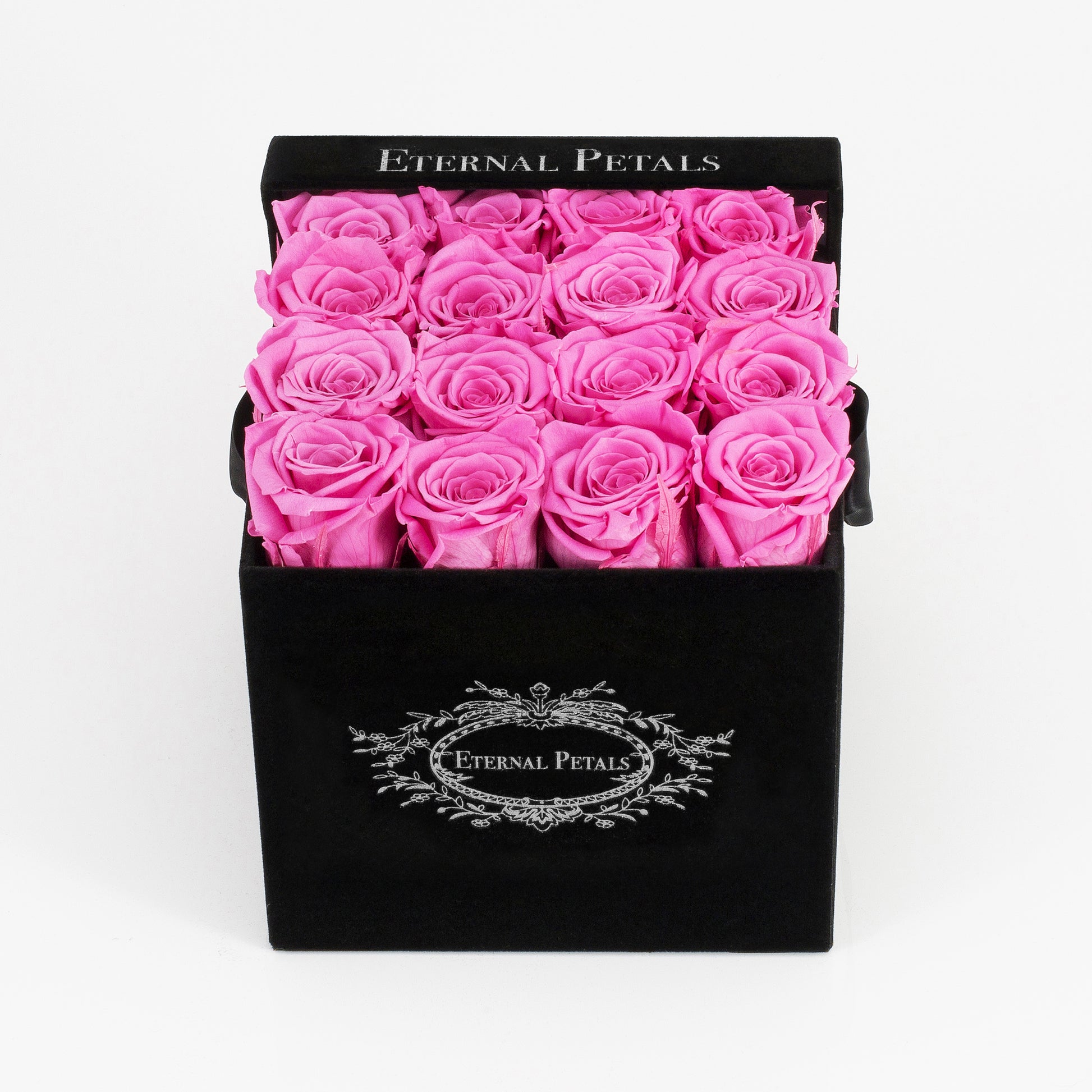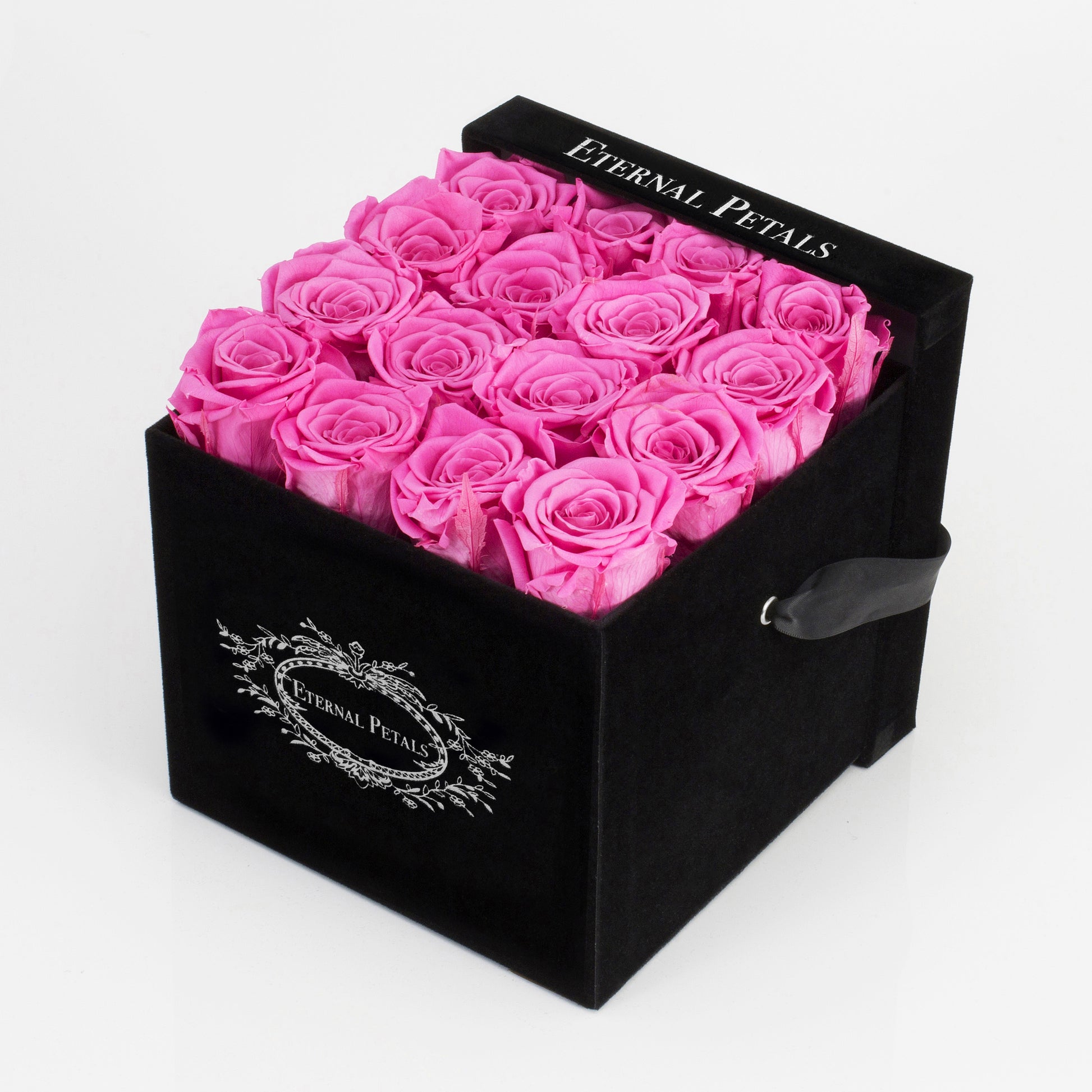 The pop of Barbie pink inside this luxurious black flower box is the perfect gift for the special and ultimately feminine lady in your life. Each rose holds the brightest pigment of beautiful pink, ensuring you have never seen a box of roses quite it like before.