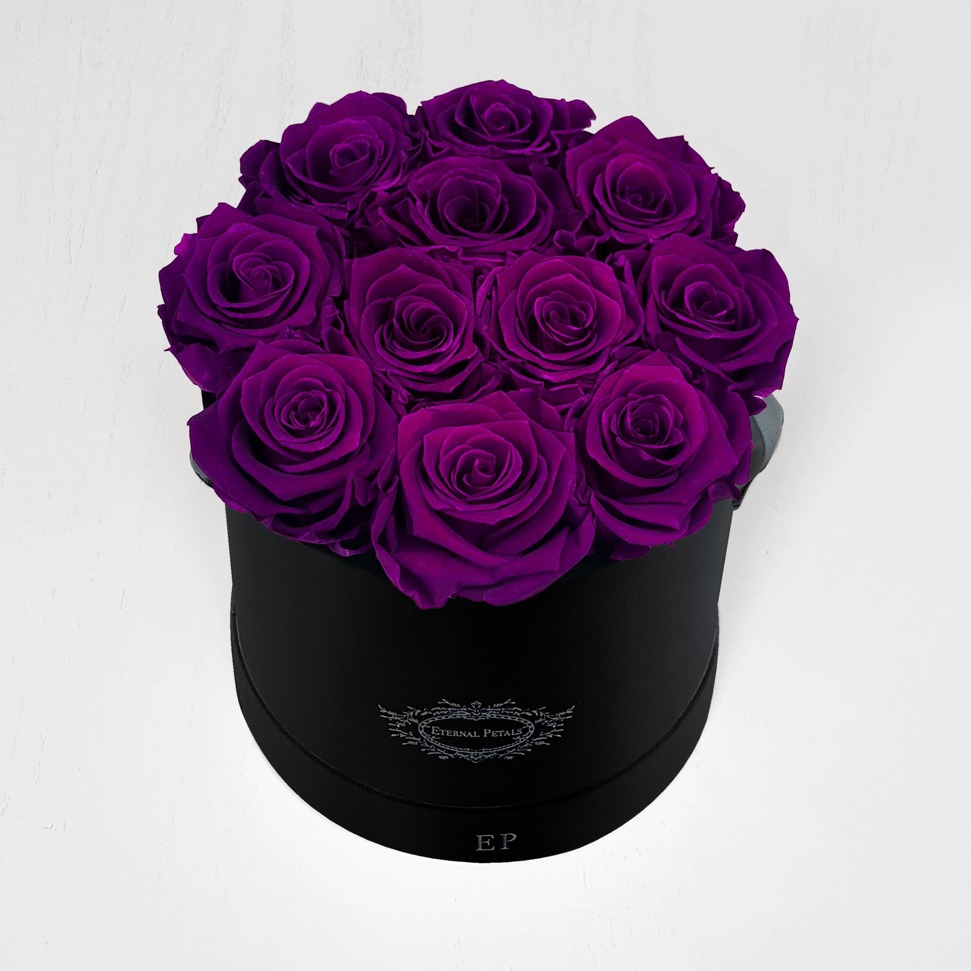 Arriving in this stunning gift box, you’ll find 11-14 perfectly bloomed, real roses in authentically beautiful plum colour. The ultimate in classic romance, which you can enjoy and admire for a whole year.