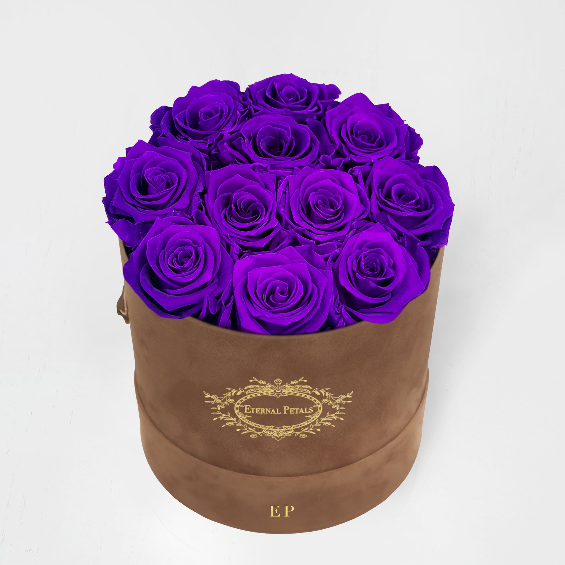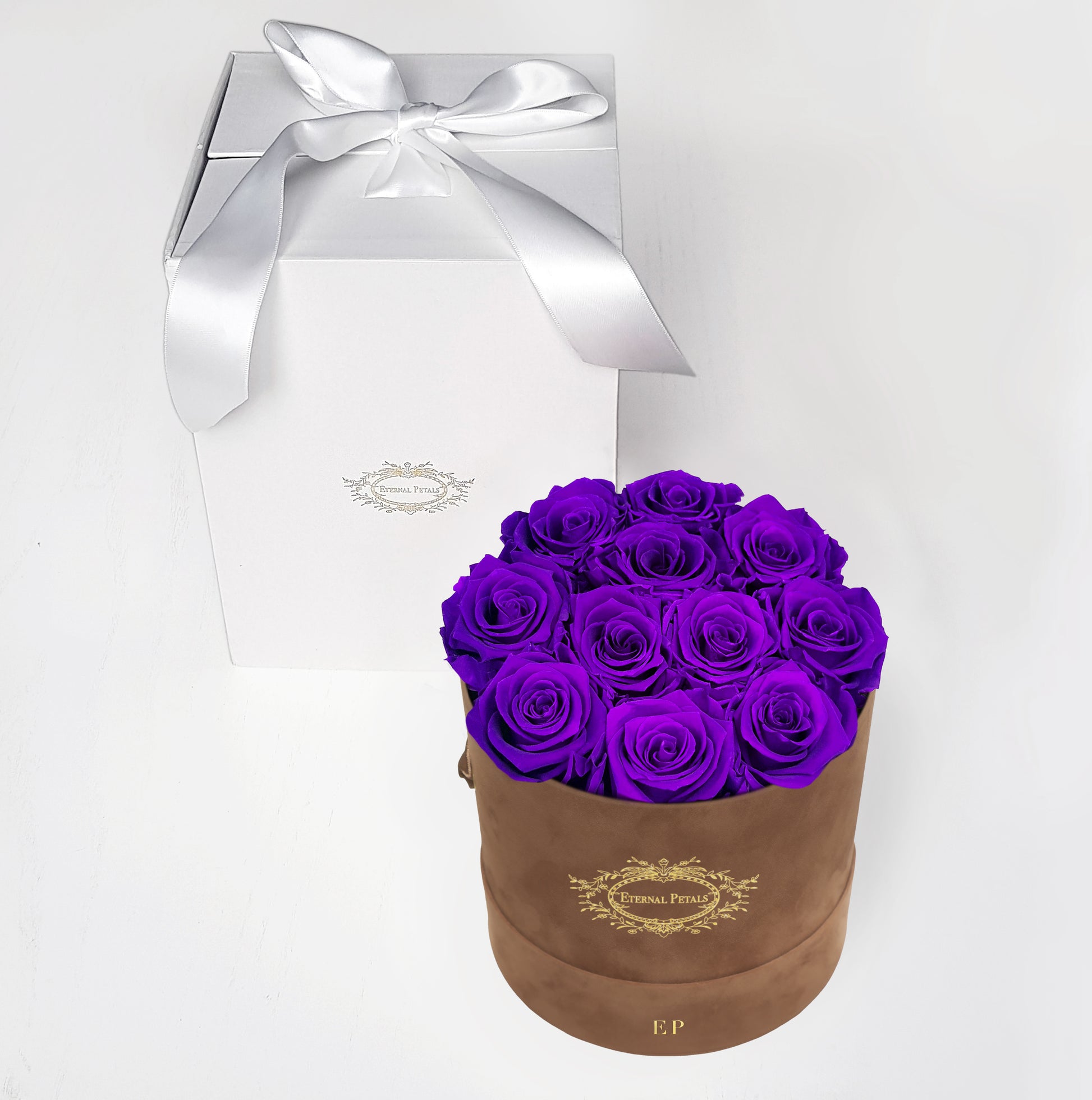 Arriving in this stunning brown gift box, you’ll find 11-14 perfectly bloomed, real roses in authentically beautiful luscious purple colour. The ultimate in classic romance, which you can enjoy and admire for a whole year.