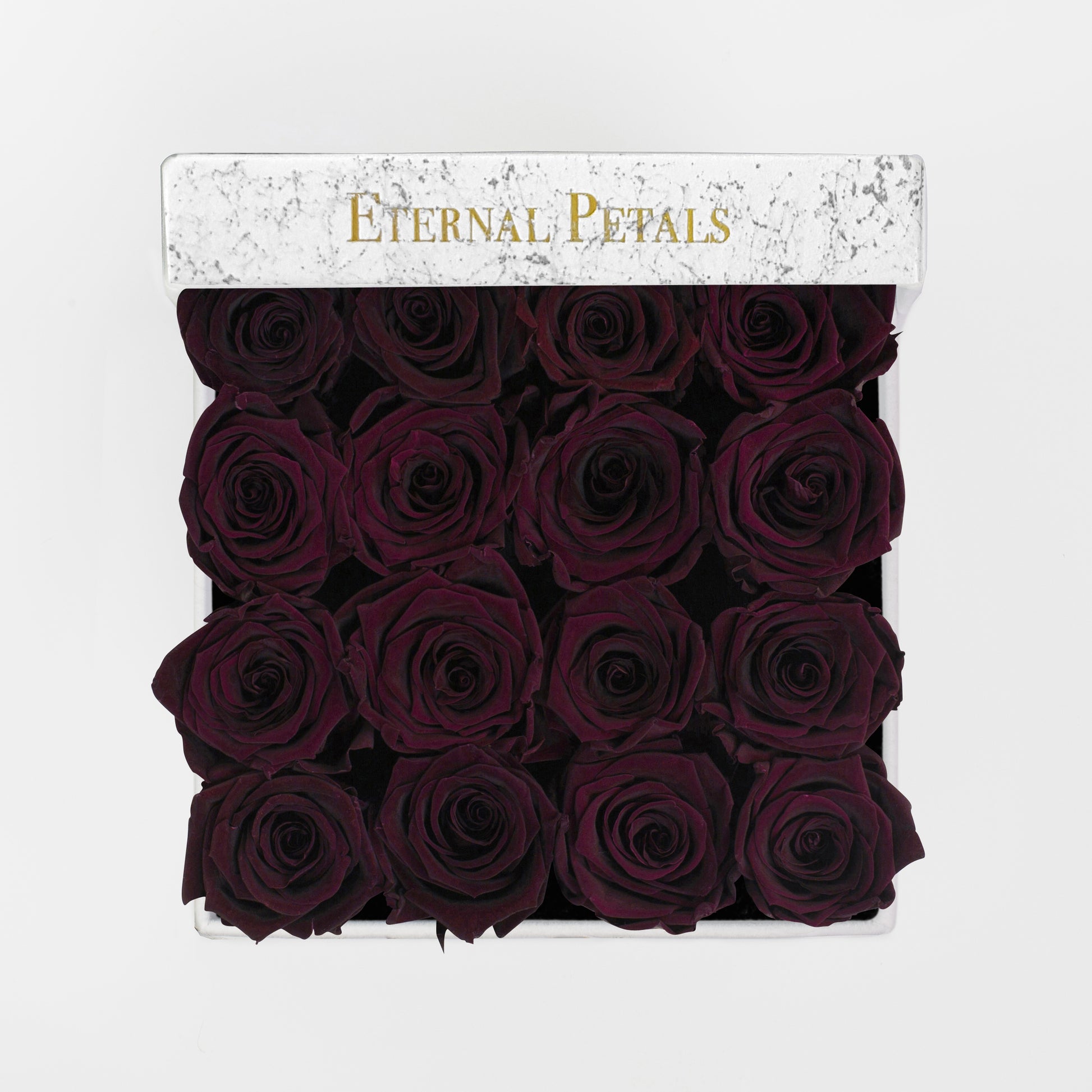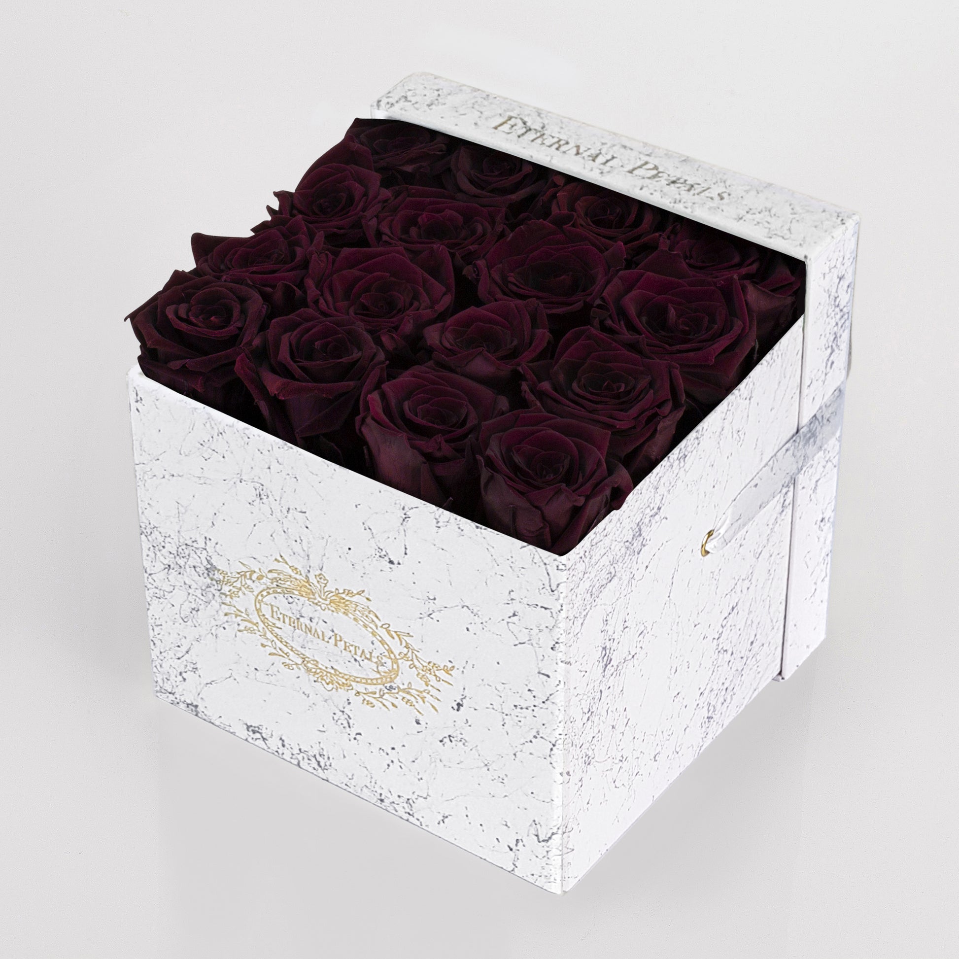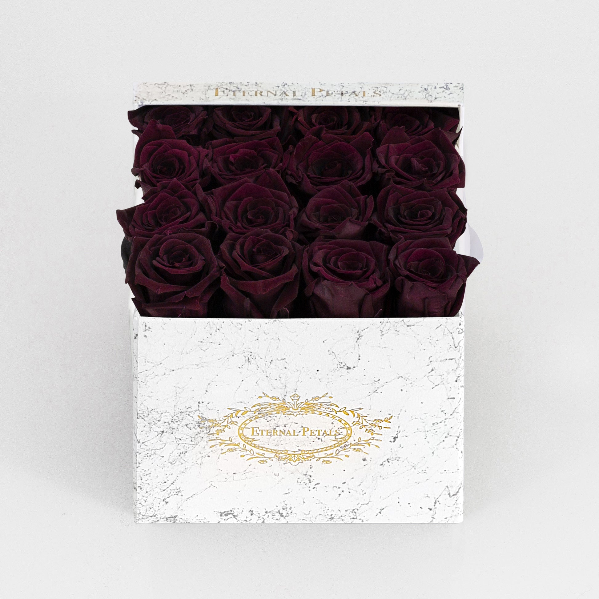 In the pictures you can see burgundy "Queen" colour roses inside our luxury marble box.