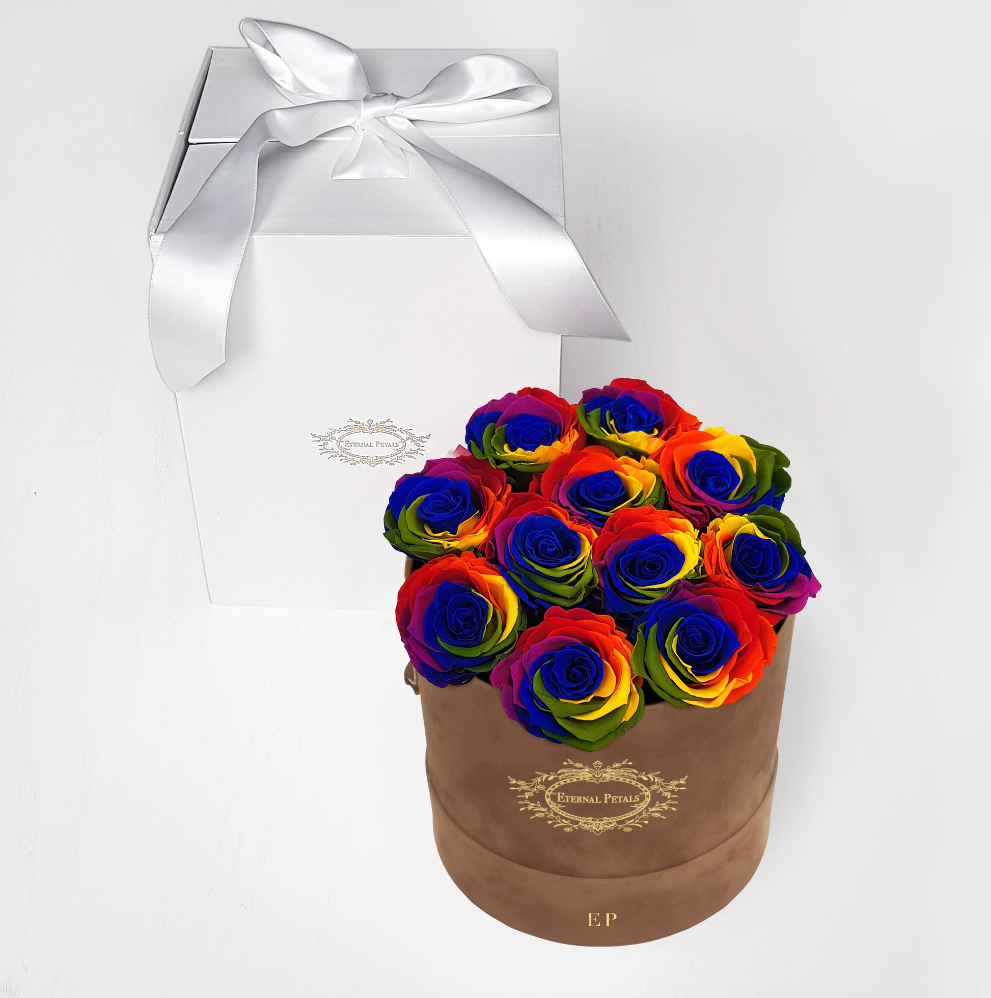 Arriving in this stunning brown gift box, you’ll find 11-14 perfectly bloomed, real roses in authentically beautiful rainbow colour. The ultimate in classic romance, which you can enjoy and admire for a whole year.