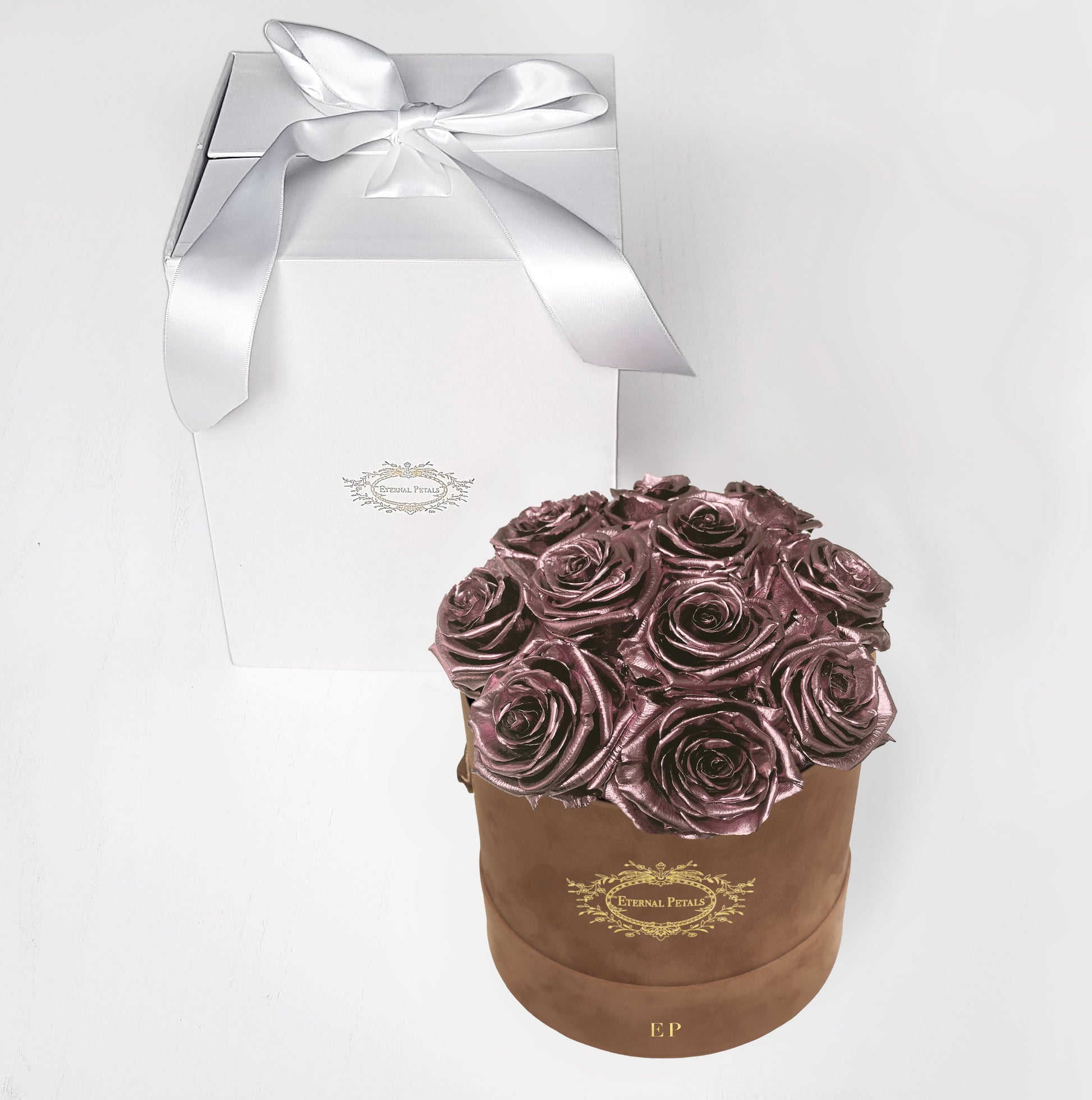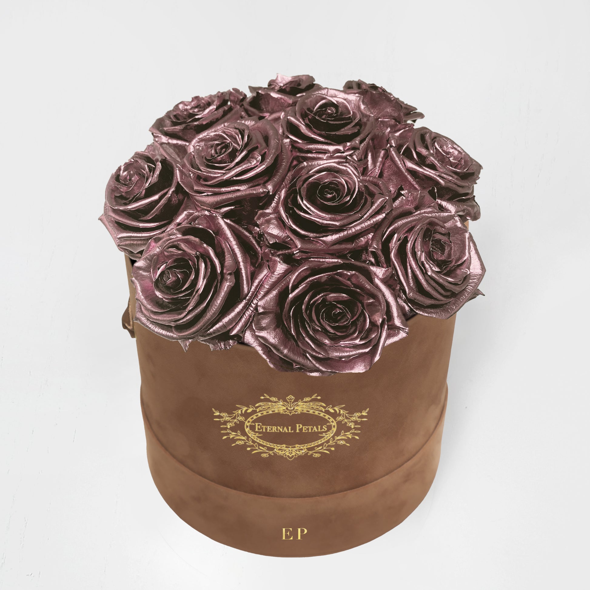 Arriving in this stunning brown gift box, you’ll find 11-14 perfectly bloomed, real roses in authentically beautiful rose gold colour. The ultimate in classic romance, which you can enjoy and admire for a whole year.