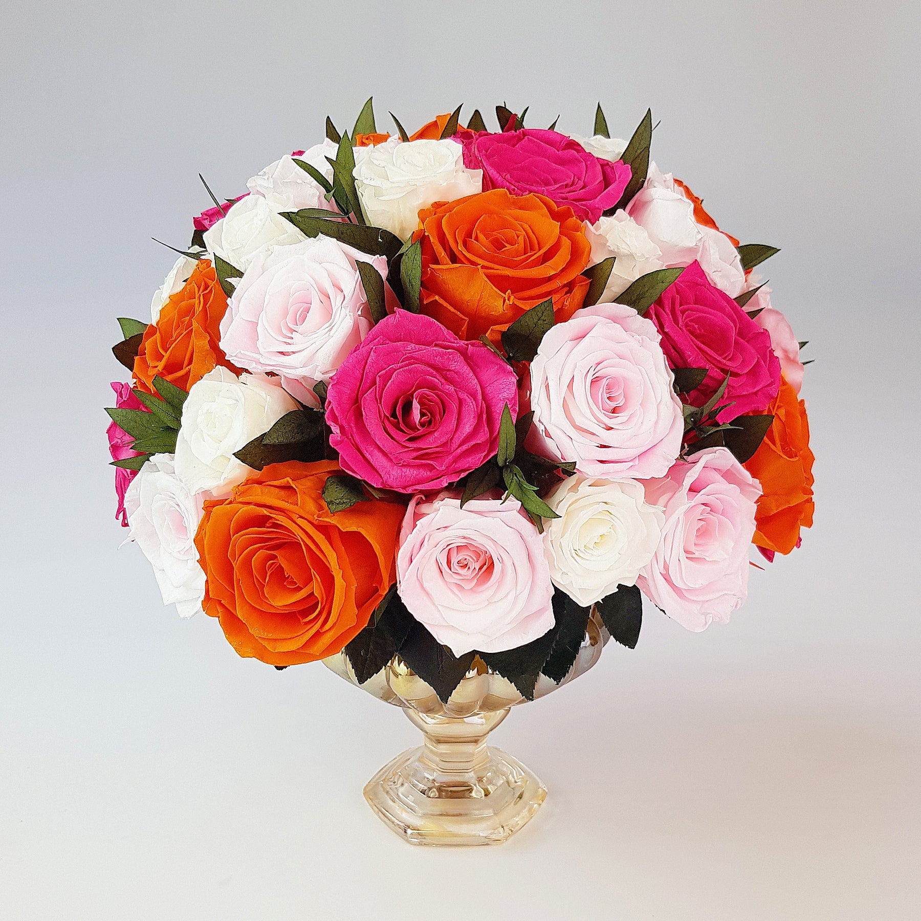 This arrangement of gorgeous real roses and foliage requires no water or maintenance at all, enabling it to last at least one year. Due to our expert preparation and treatment method, your roses will last and last, meaning you can enjoy them for longer than ever before.