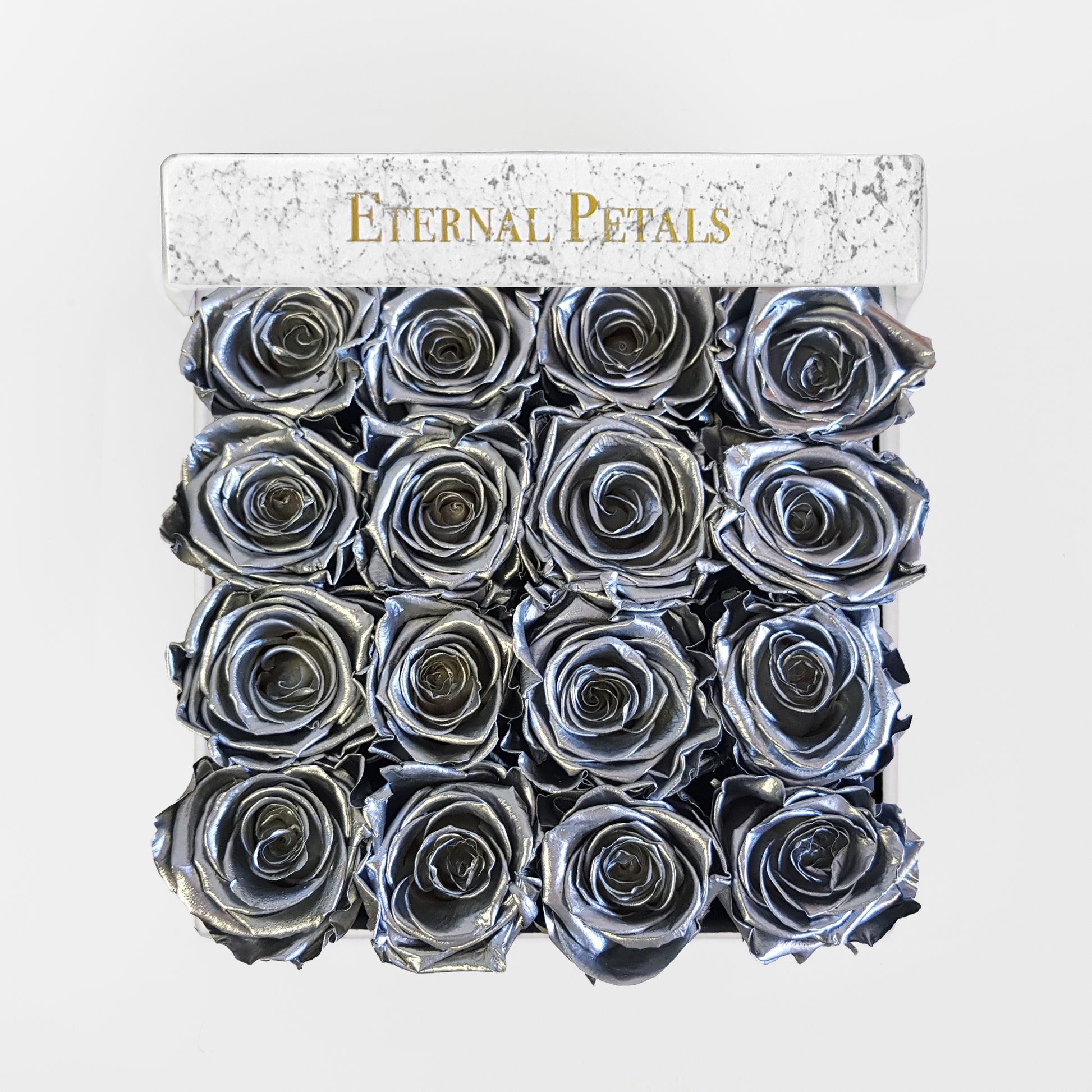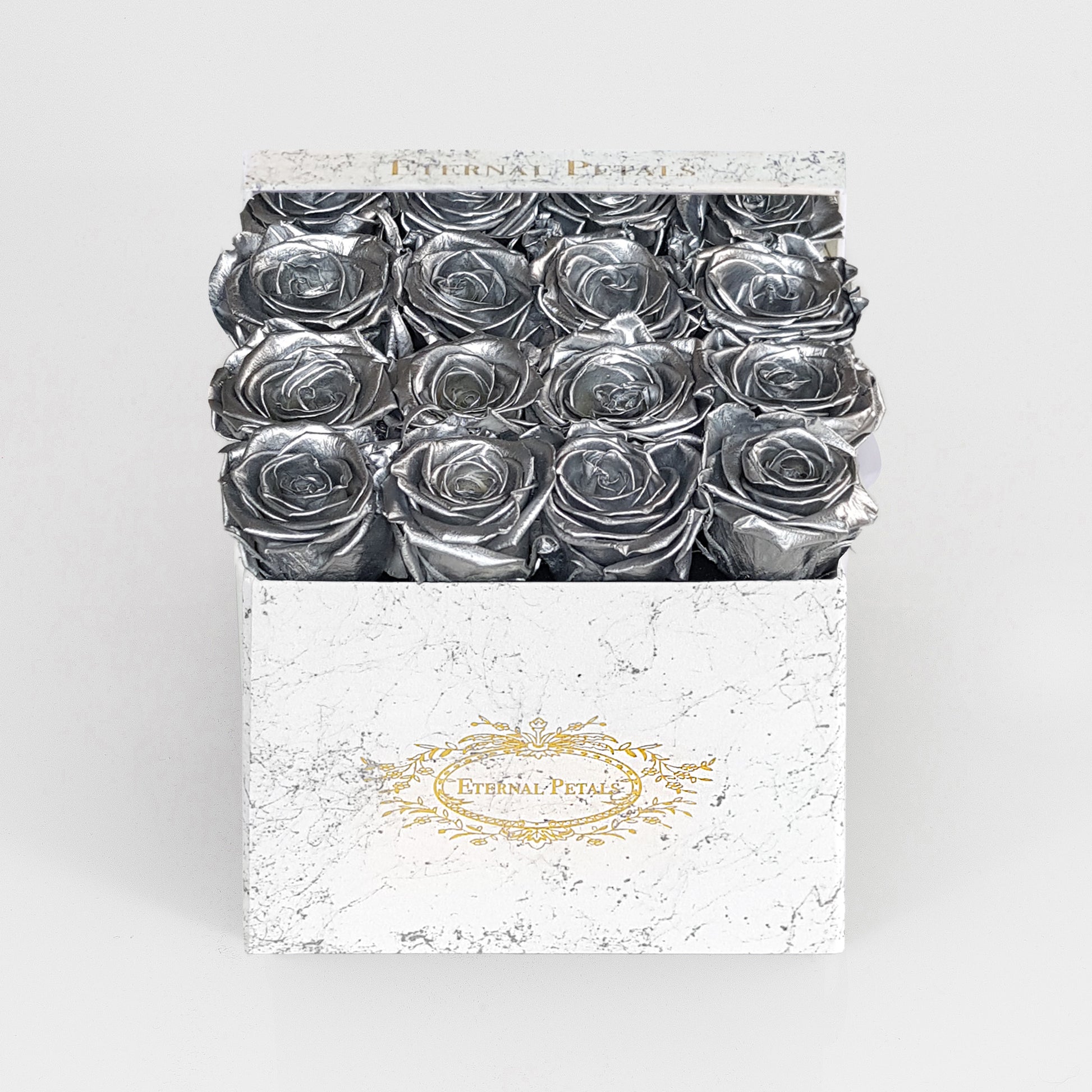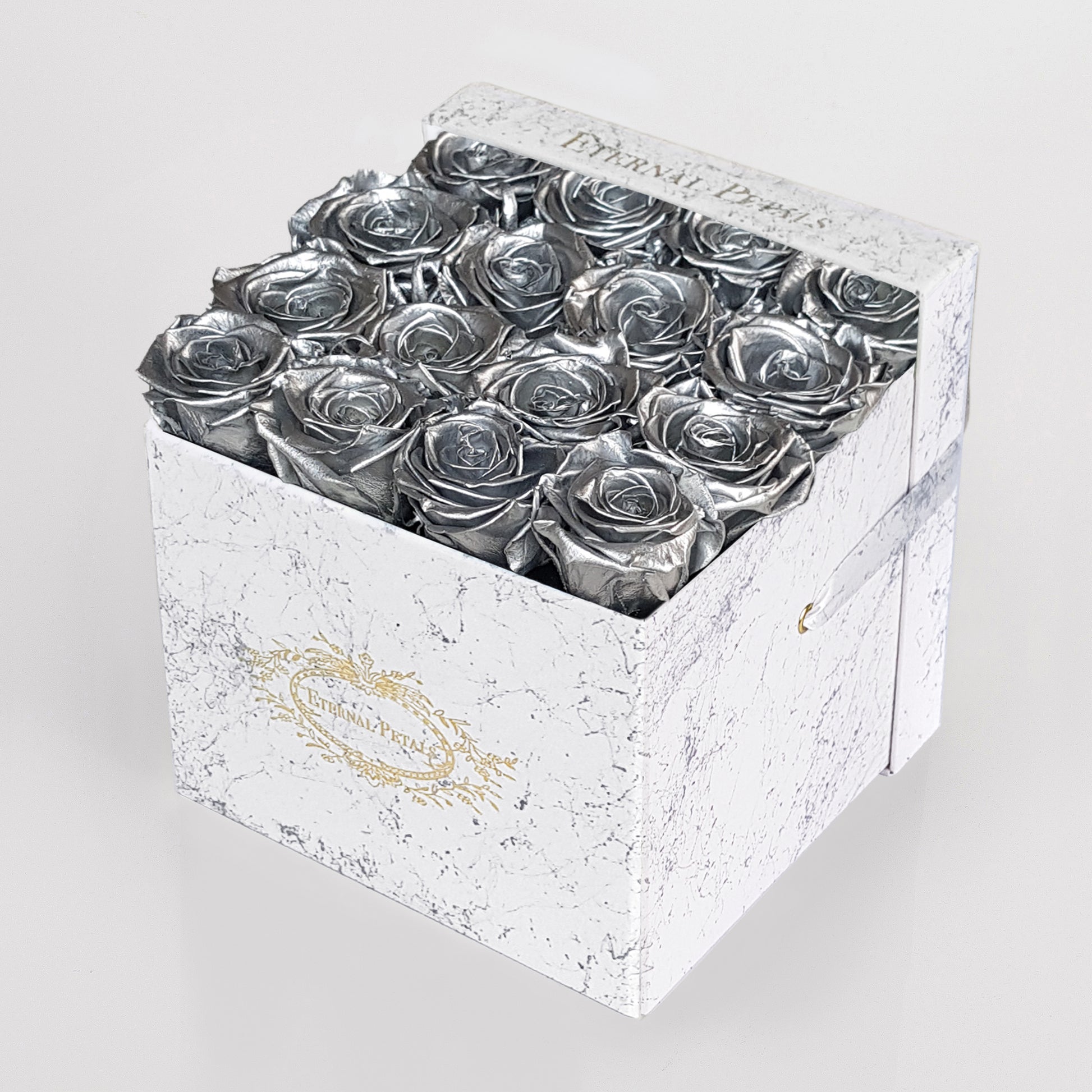 In the pictures you can see silver colour roses inside our luxury marble box.