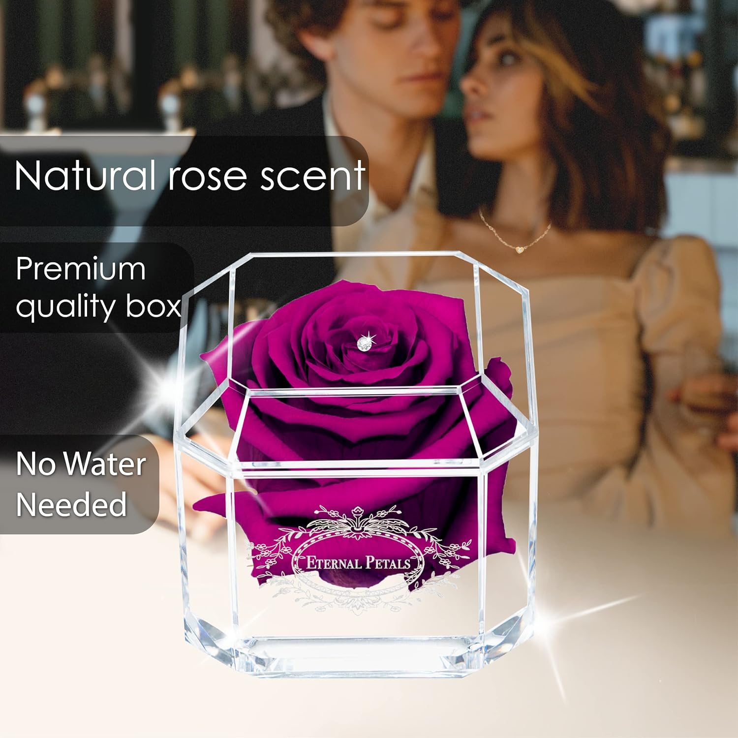 Hand-made in London using the highest quality rose that undergoes an all-natural, cutting-edge process, so that the rose blossoms all year round, with very little care needed.