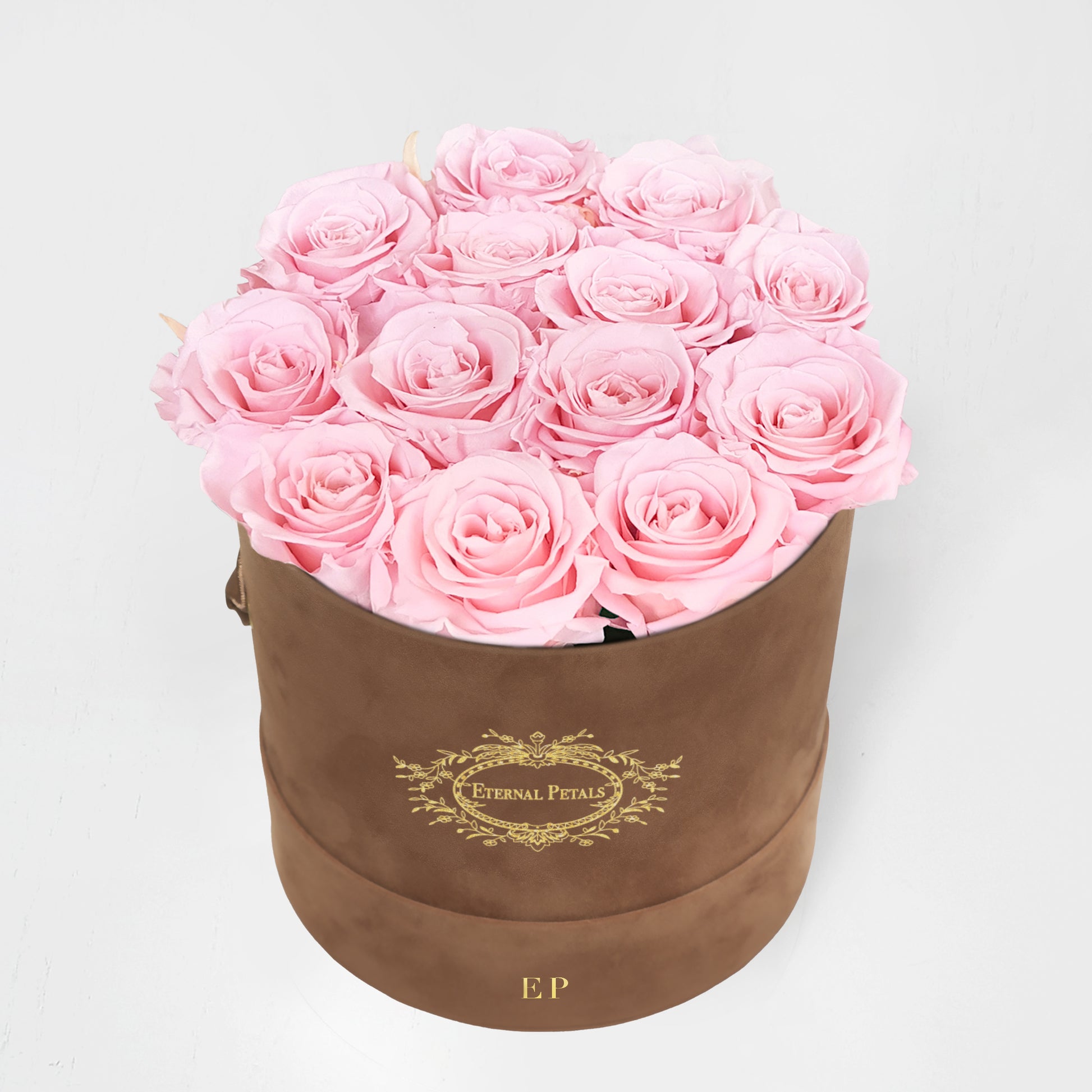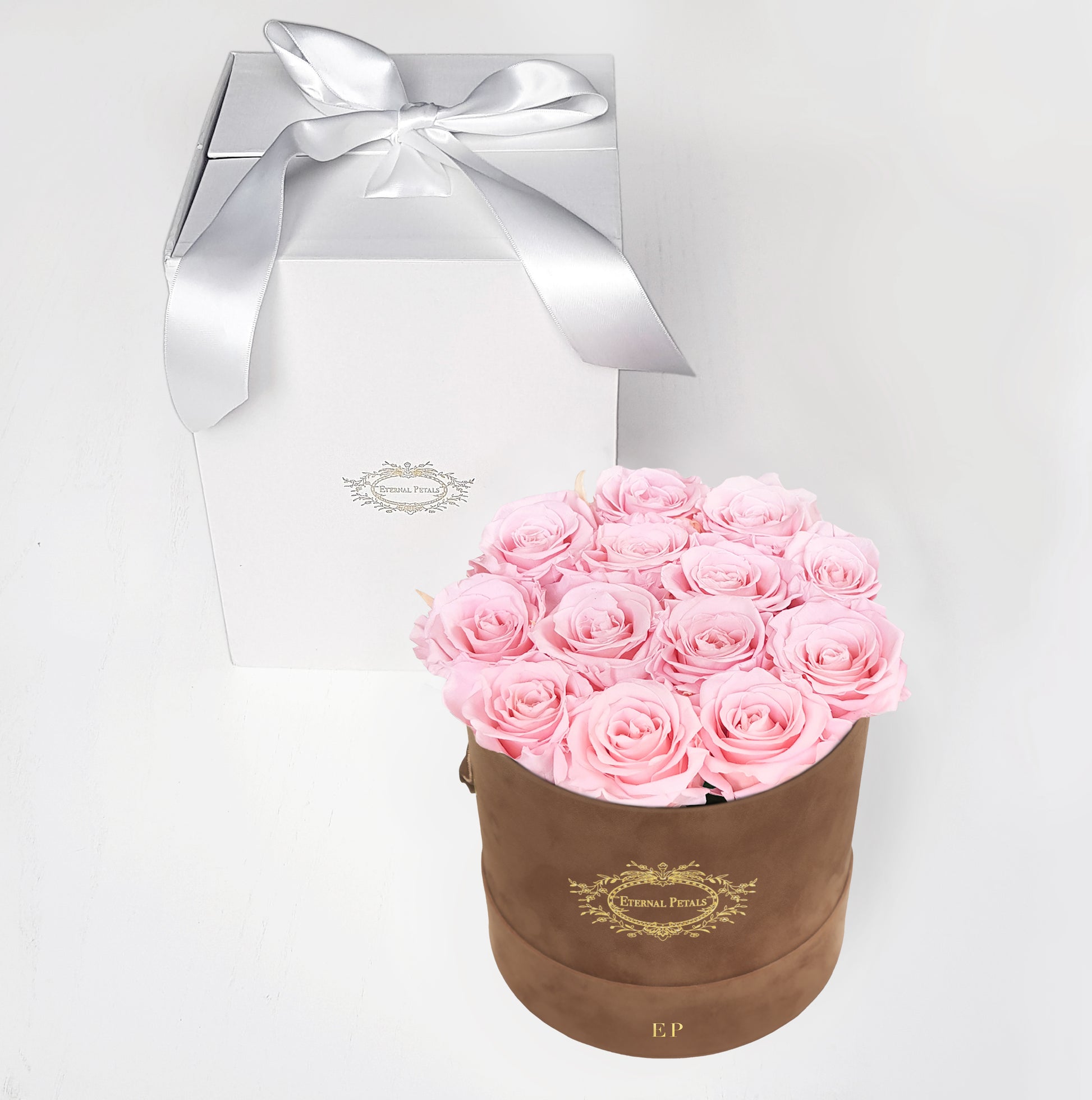 Arriving in this stunning brown gift box, you’ll find 11-14 perfectly bloomed, real roses in authentically beautiful light pink colour. The ultimate in classic romance, which you can enjoy and admire for a whole year.