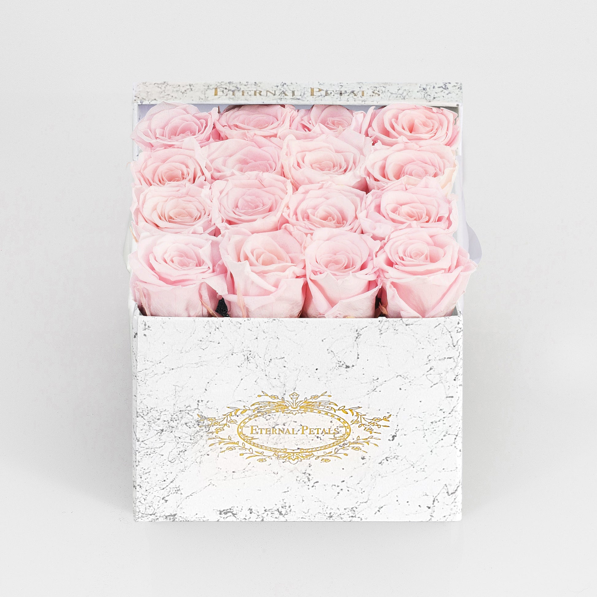 In the pictures you can see "Sweetheart" pink colour roses inside our luxury marble box.