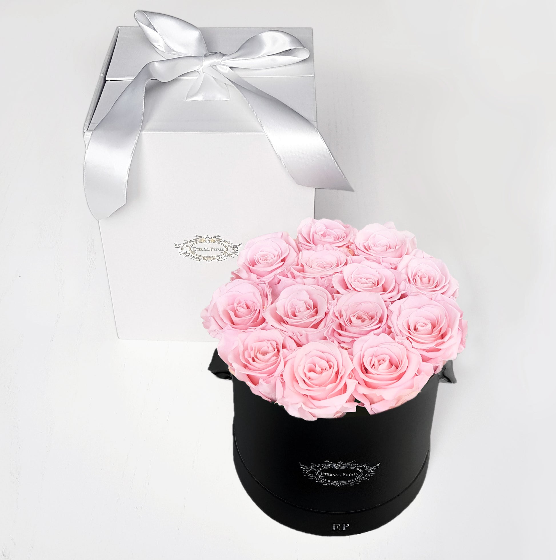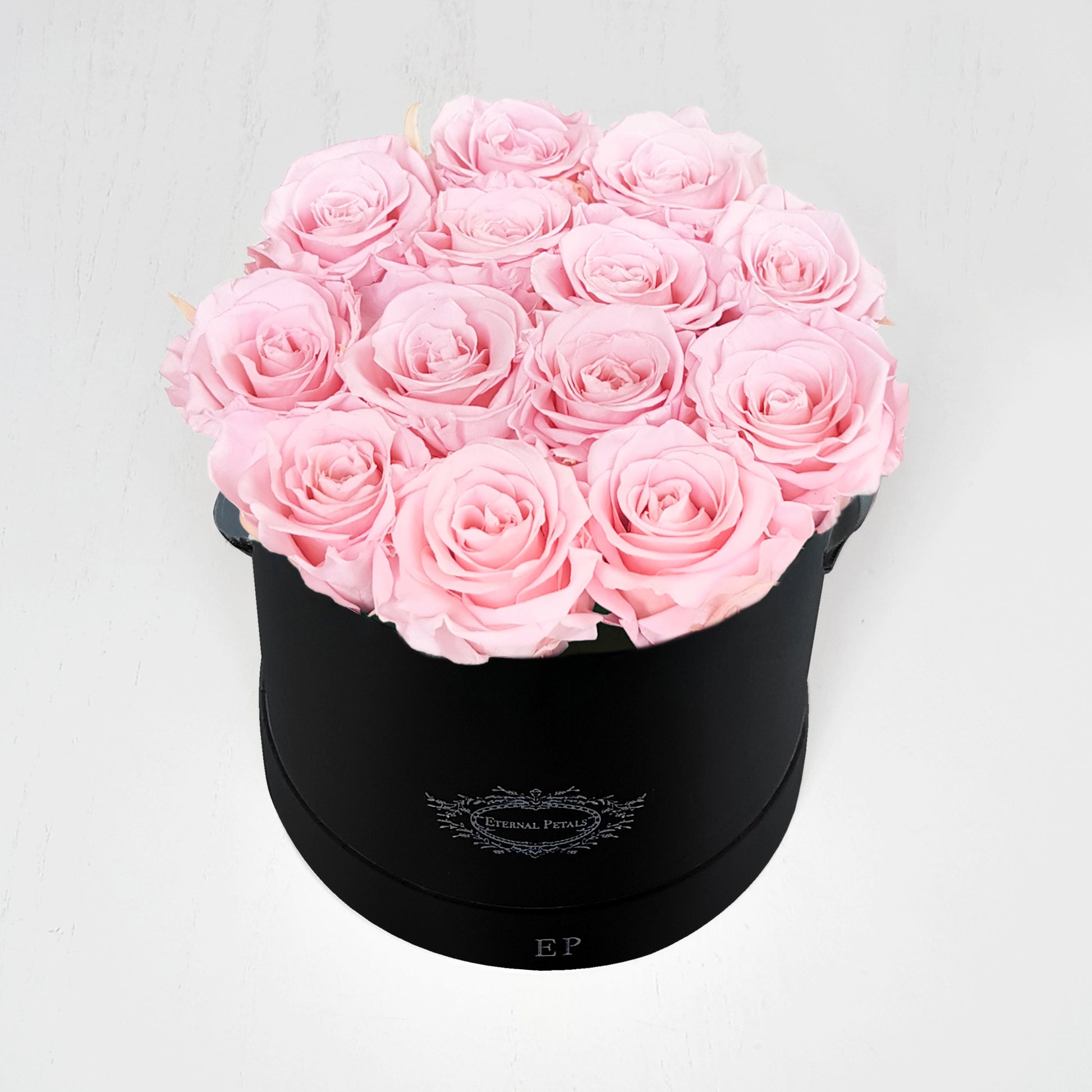 These stunning light pink roses peek romantically out of their beautiful classic round box, creating a luxurious finish. A warm and light tones are sumptuous and unique, perfect to pair in an elegant and contemporary home or for a sweet token of love.