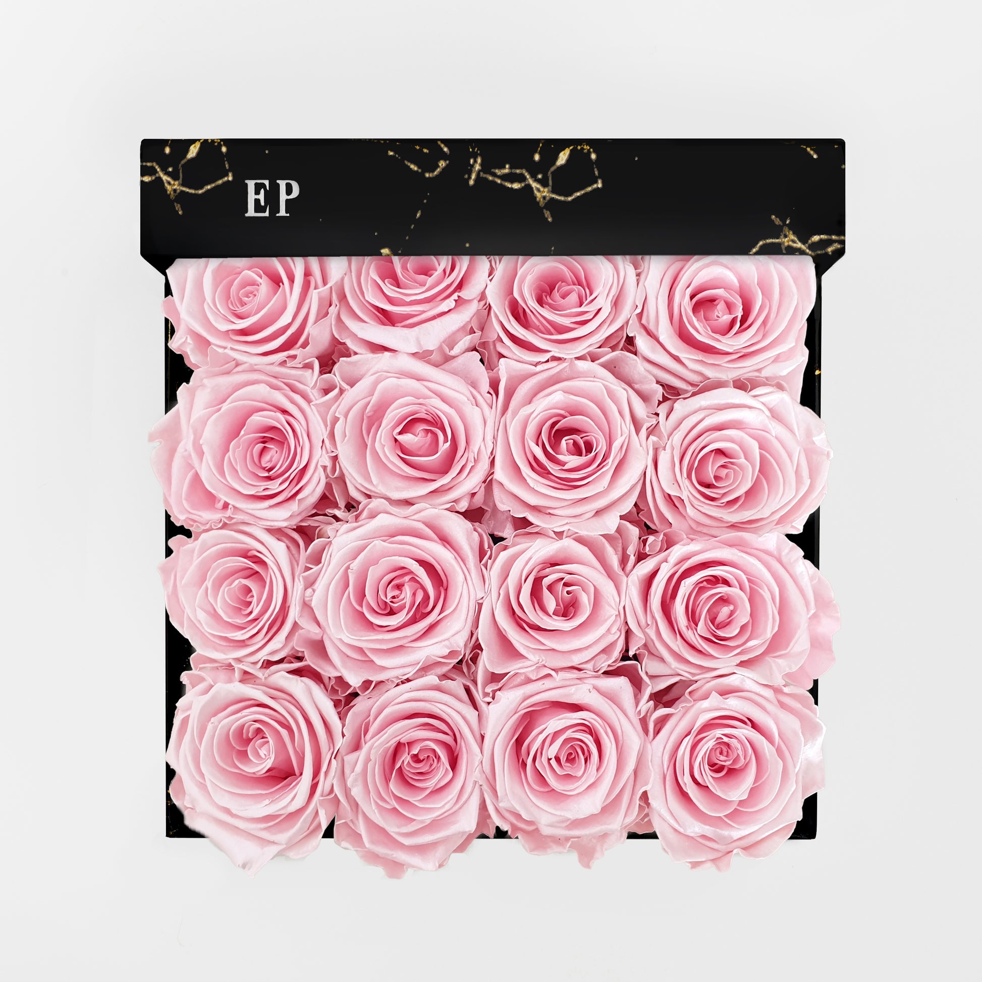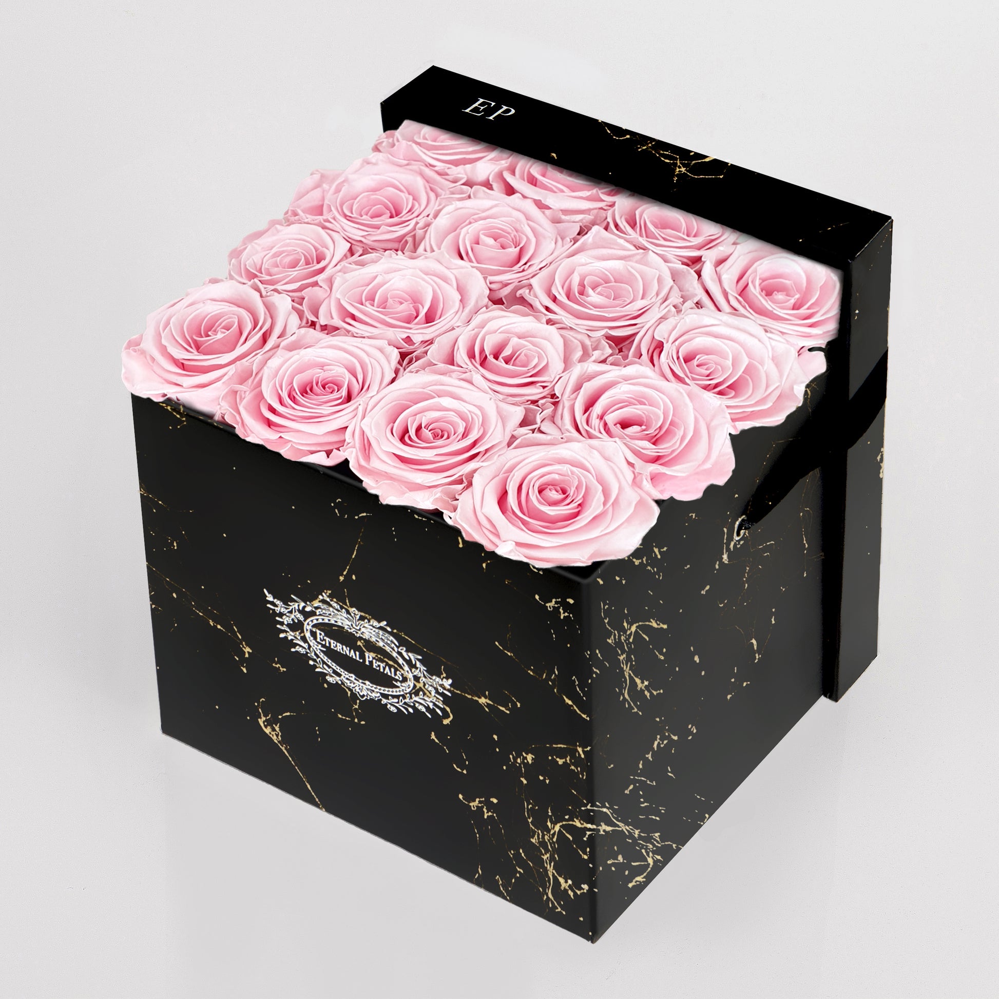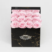 In the pictures you can see Sweetheart Satin colour roses inside our luxury marble box.