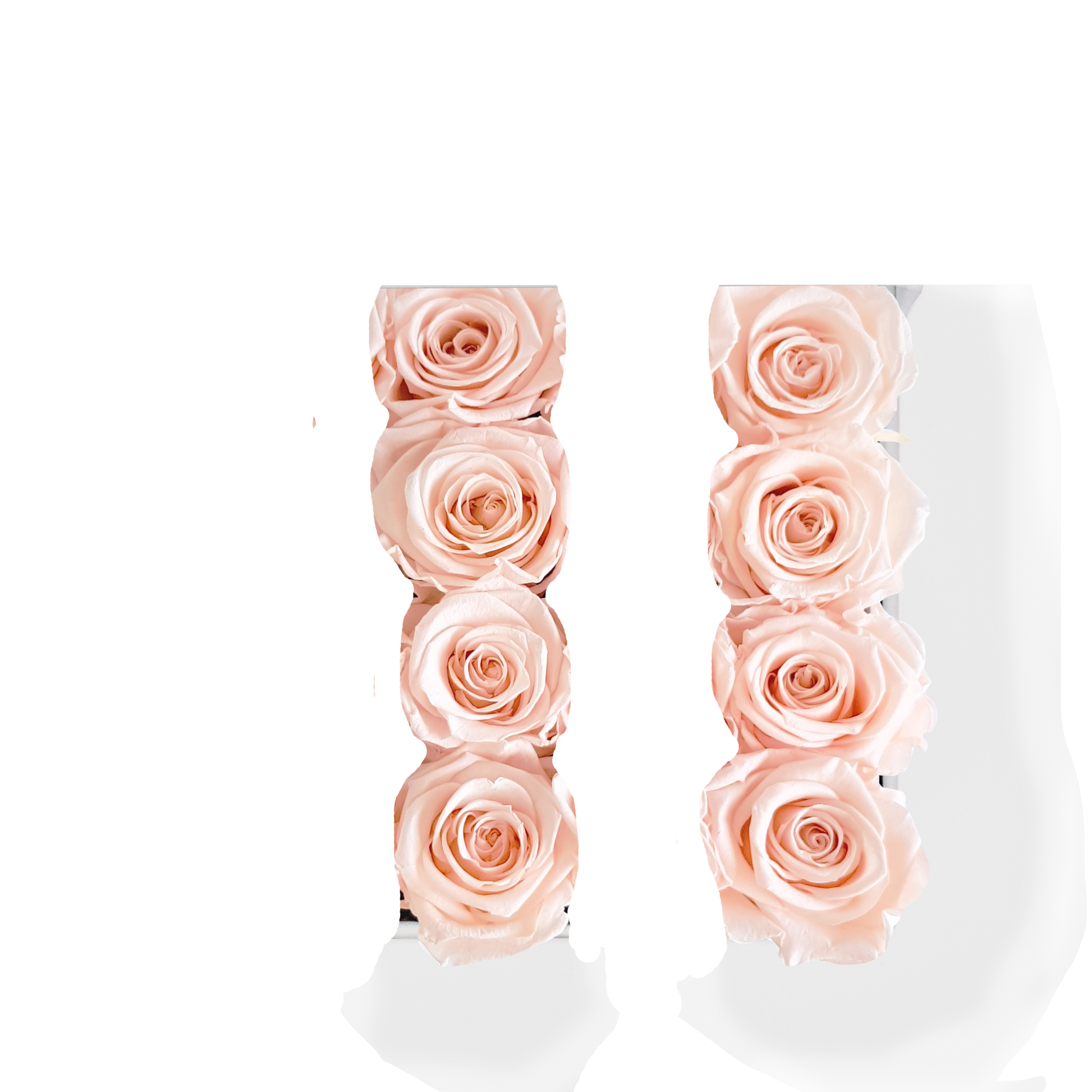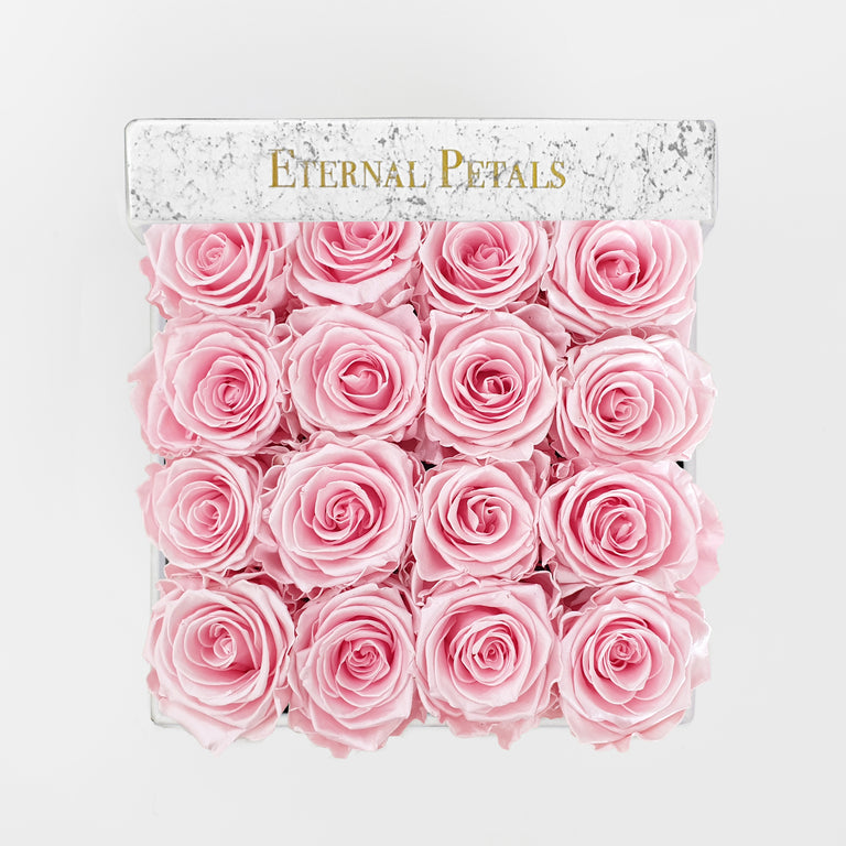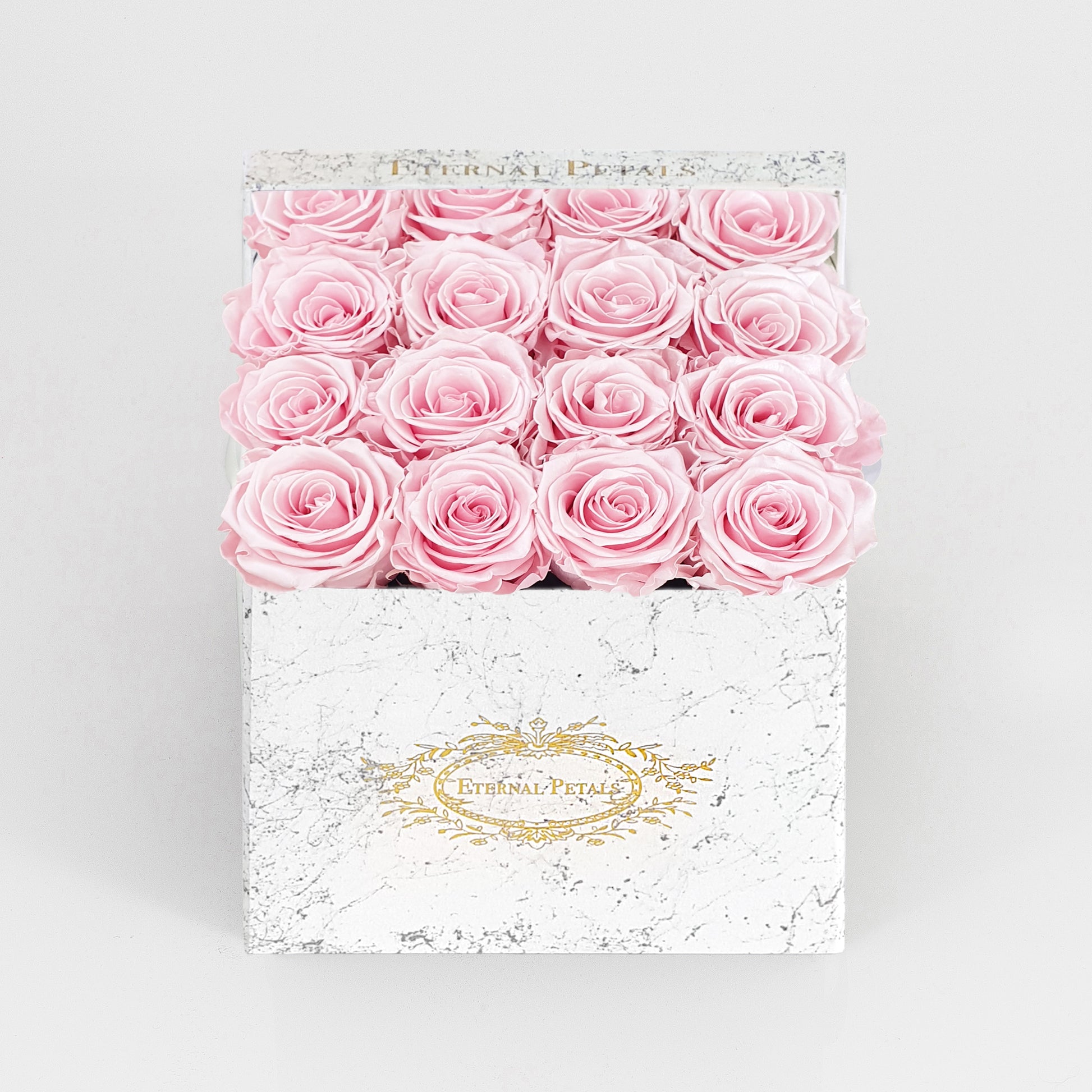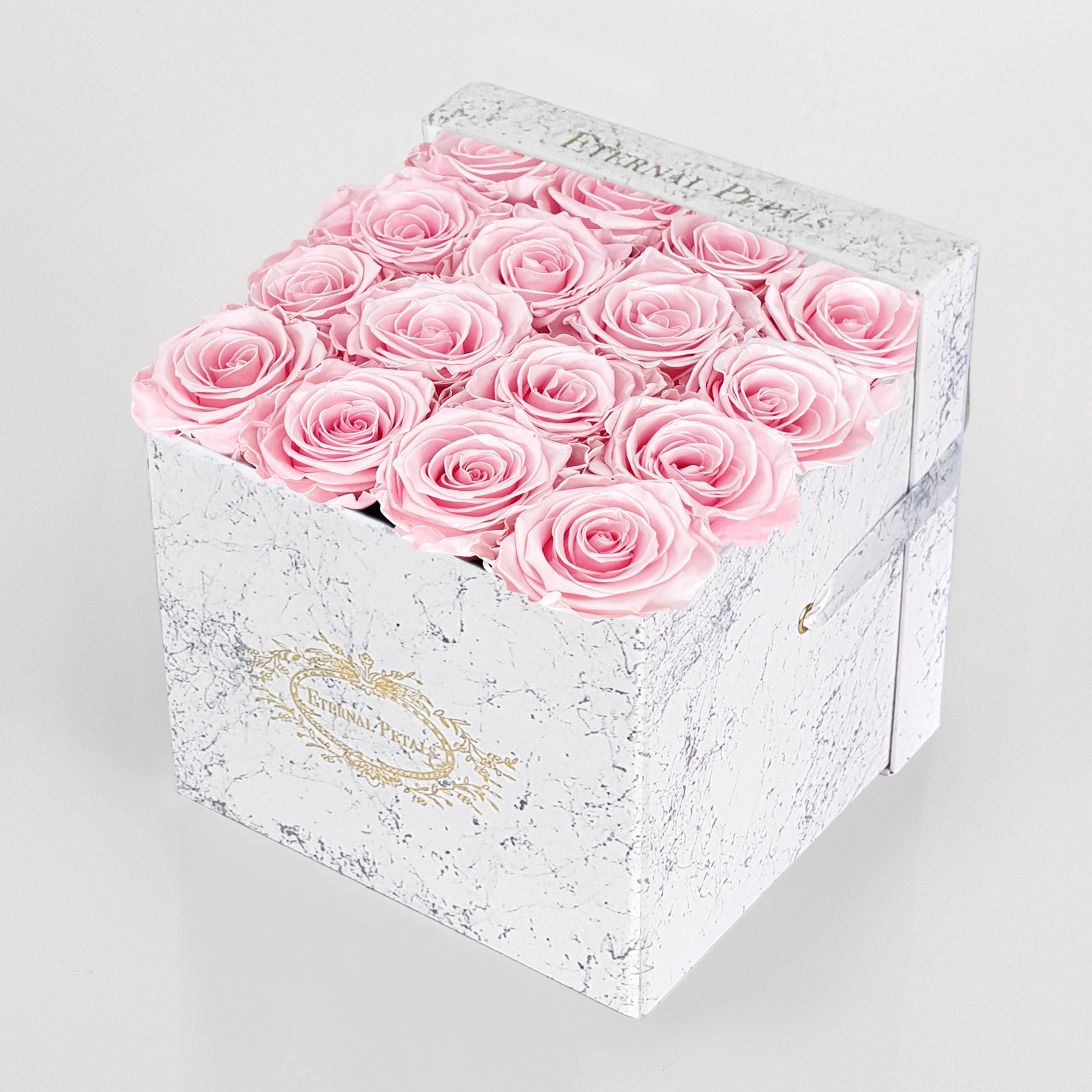 In the pictures you can see Sweetheart Satin colour roses inside our luxury marble box.
