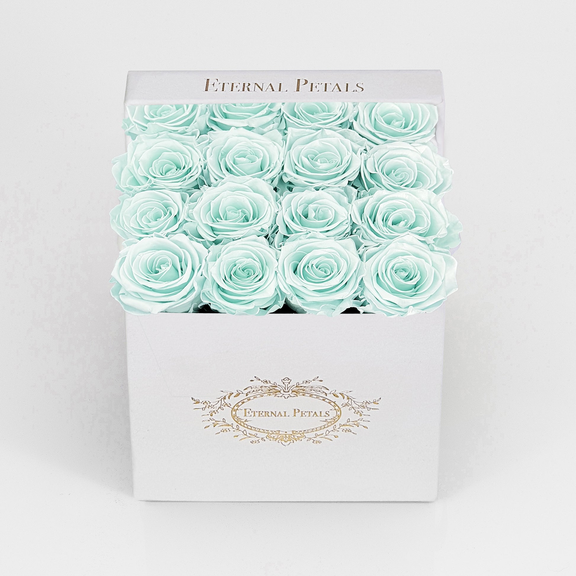 These stunning Tiffany satin roses peek romantically out of their beautiful white flower box, creating a luxurious glam finish. A shimmery and rich alternative to a Tiffany colour rose, the Tiffany Satin roses are sumptuous and unique, perfect to pair in an elegant and contemporary home or for a sweet token of love. The perfect gift!