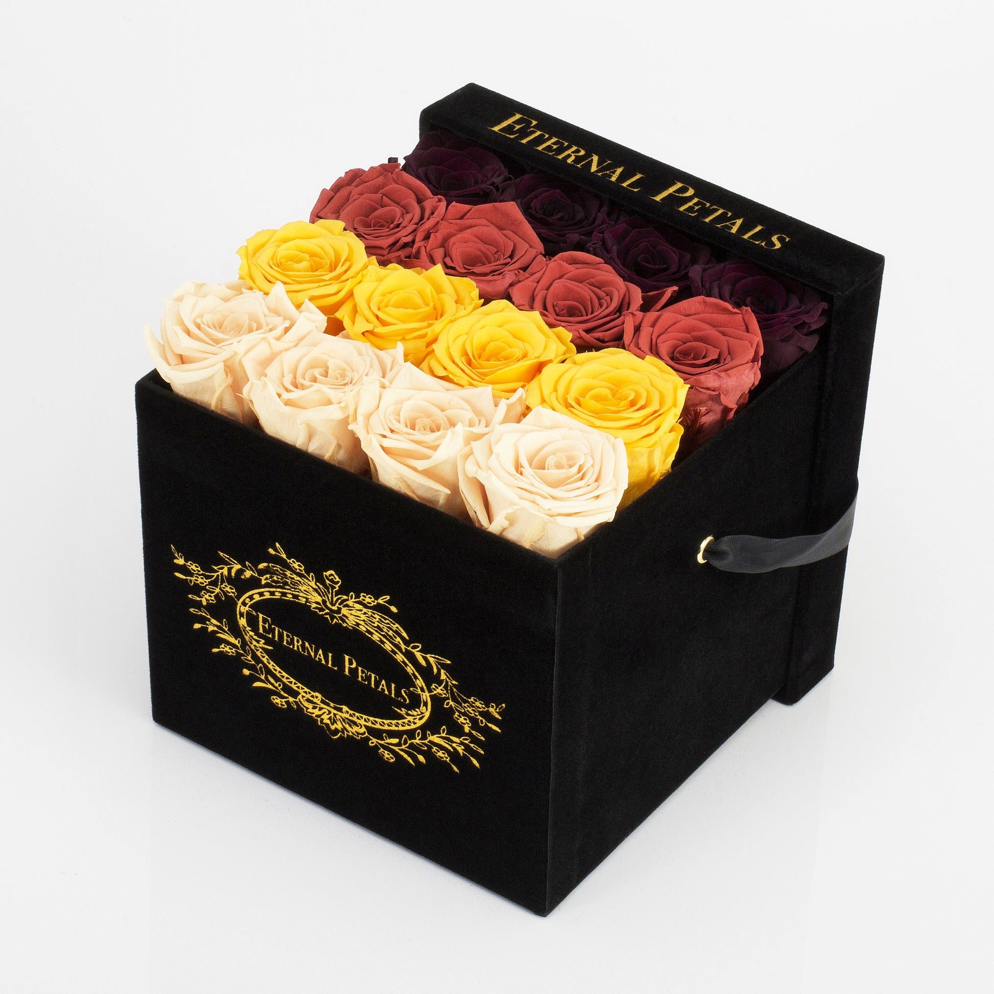 NO WATER or MAINTENANCE NEEDED! The roses are cut when they have perfectly bloomed, and when treated with a new cutting-edge method, their look, feel and smell become long lasting.